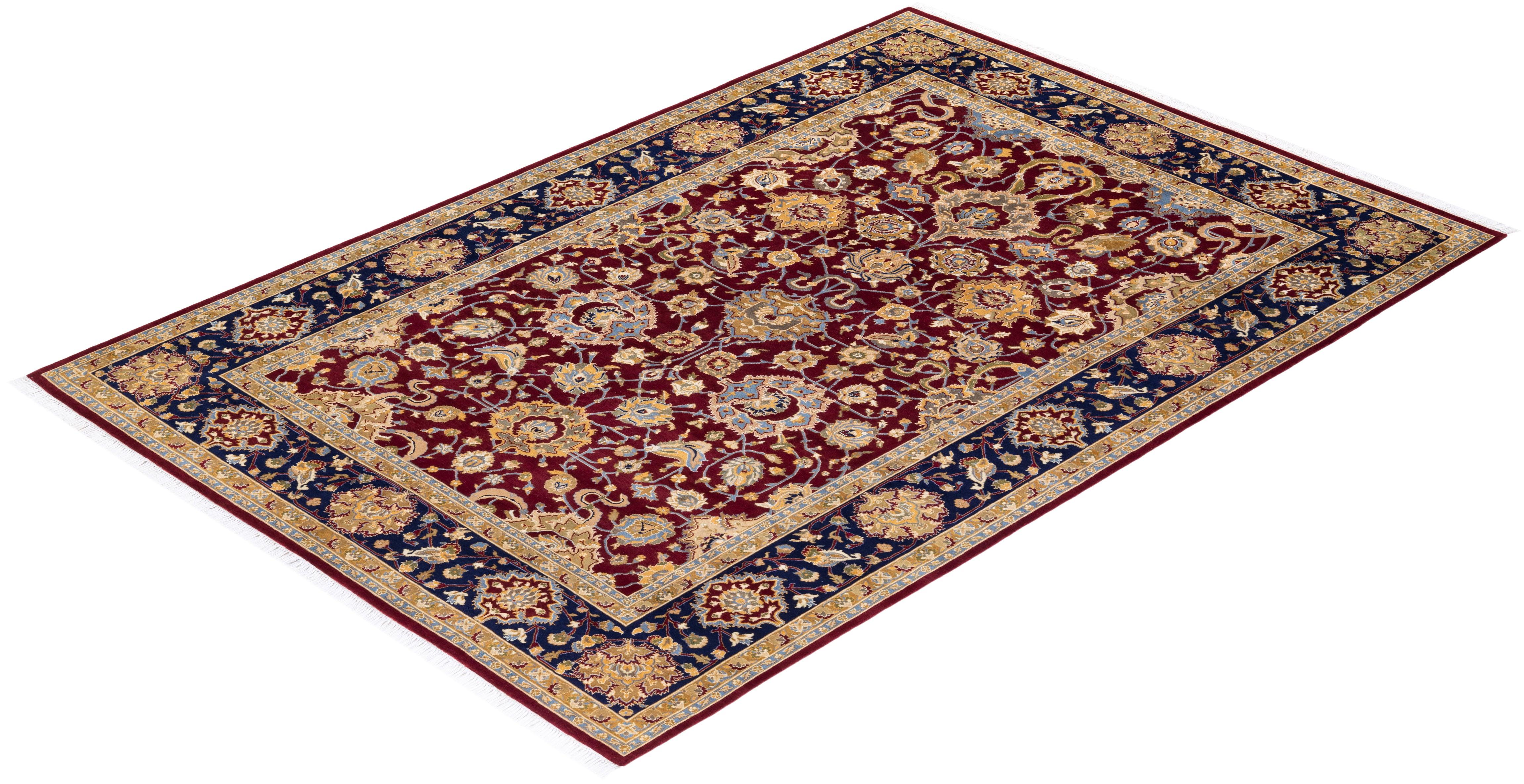 Traditional Hand Knotted Mogul Oriental Red Area Rug 6' 1" x 9' 0"