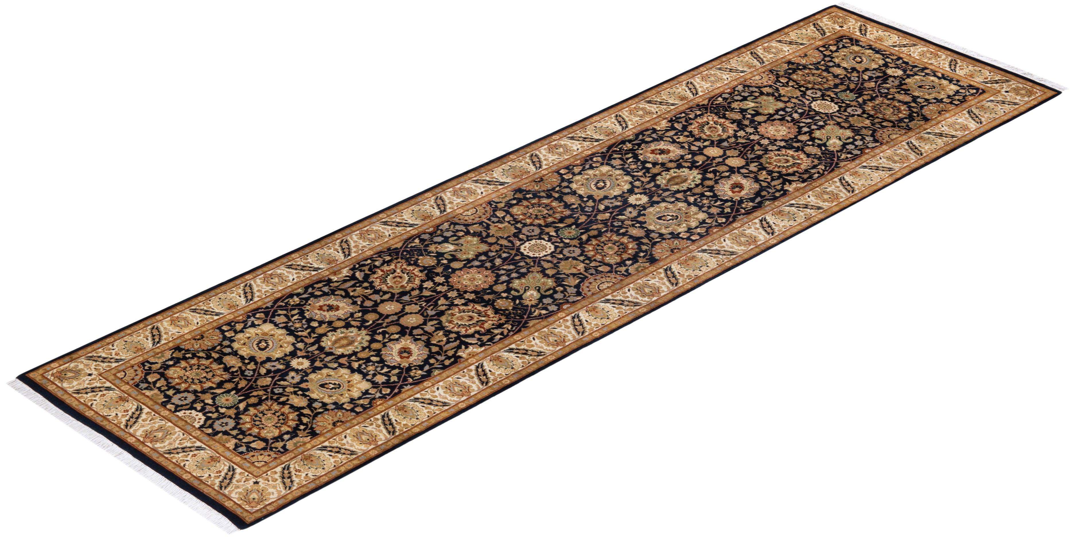 Traditional Hand Knotted Mogul Oriental Black Runner 3' 0" x 11' 1"