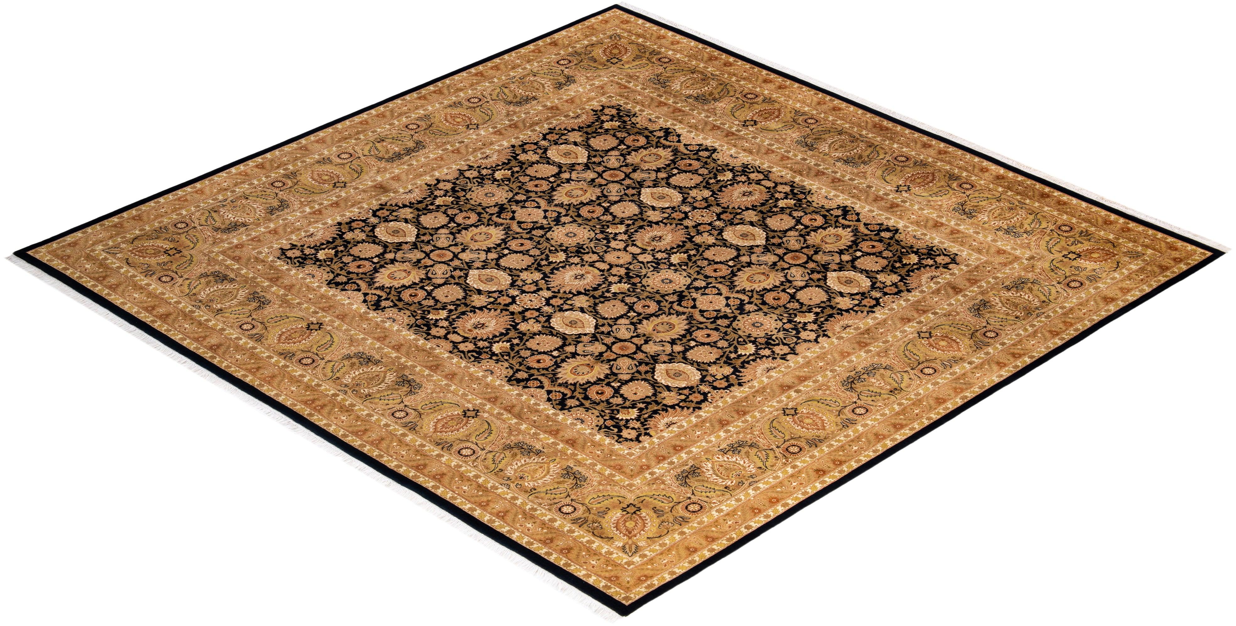 Traditional Hand Knotted Mogul Oriental Black Square Area Rug 8' 3" x 8' 3"