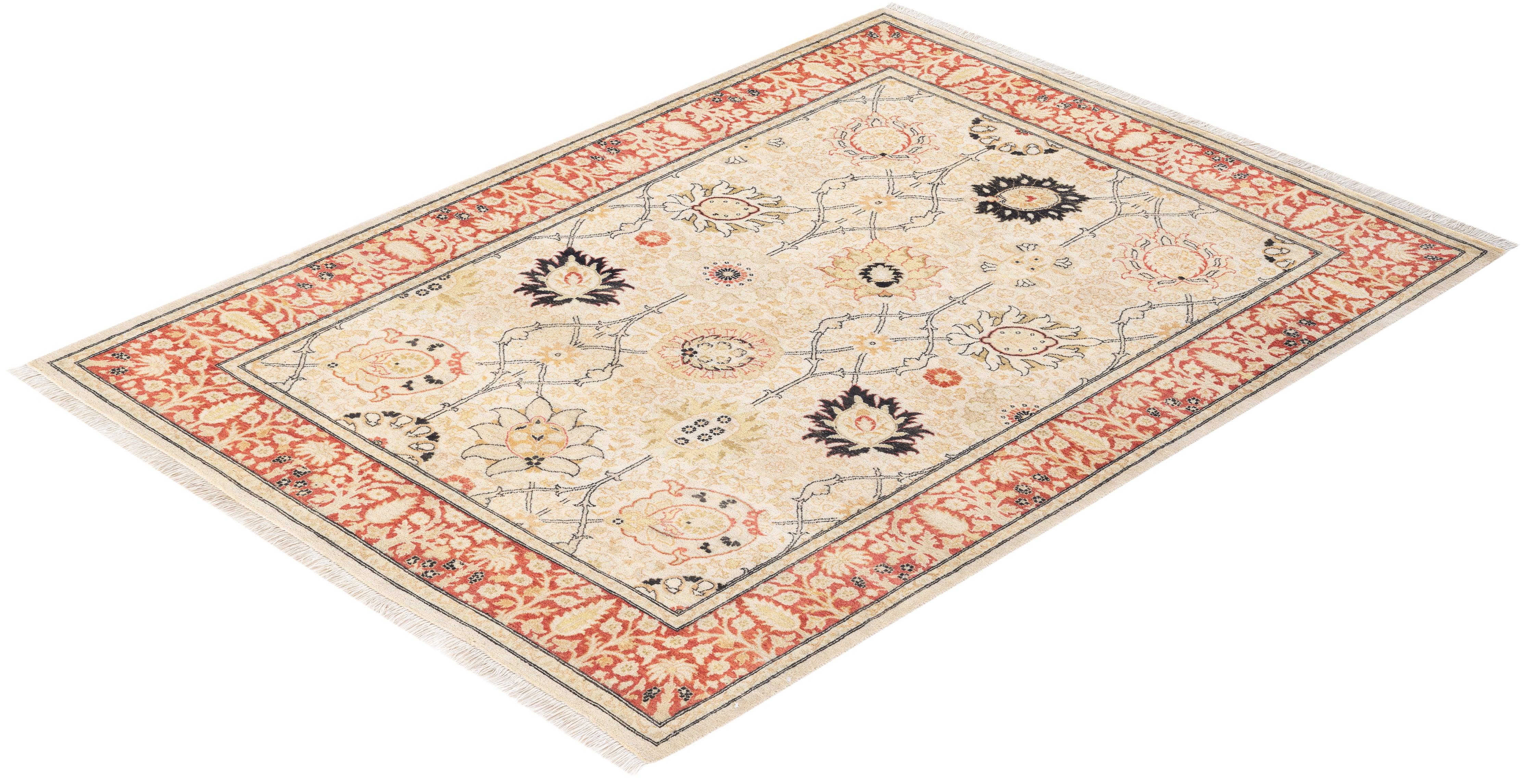 Traditional Hand Knotted Mogul Oriental Ivory Area Rug 4' 2" x 5' 8"