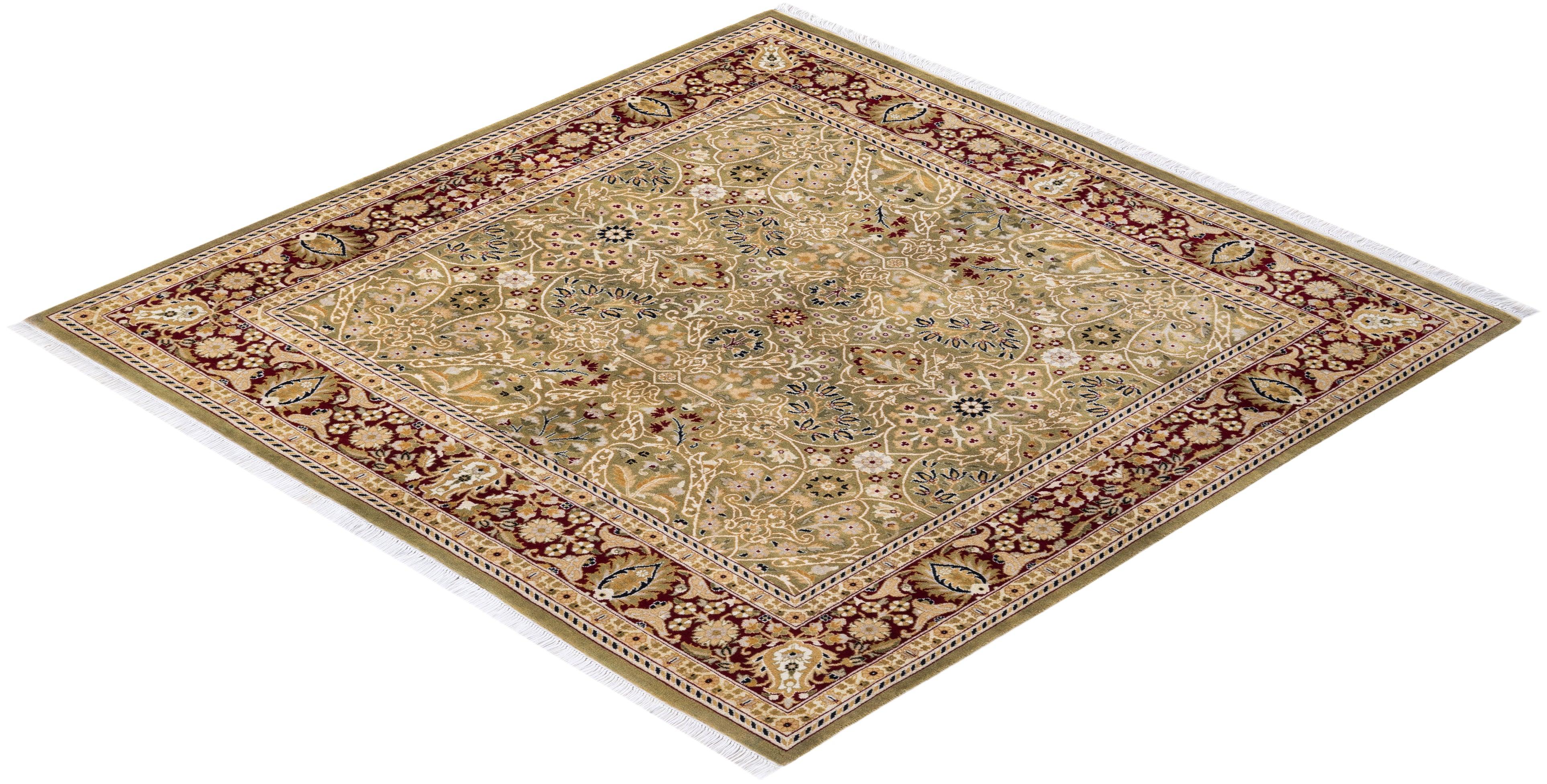 Traditional Hand Knotted Mogul Oriental Green Area Rug 5' 3" x 5' 4"