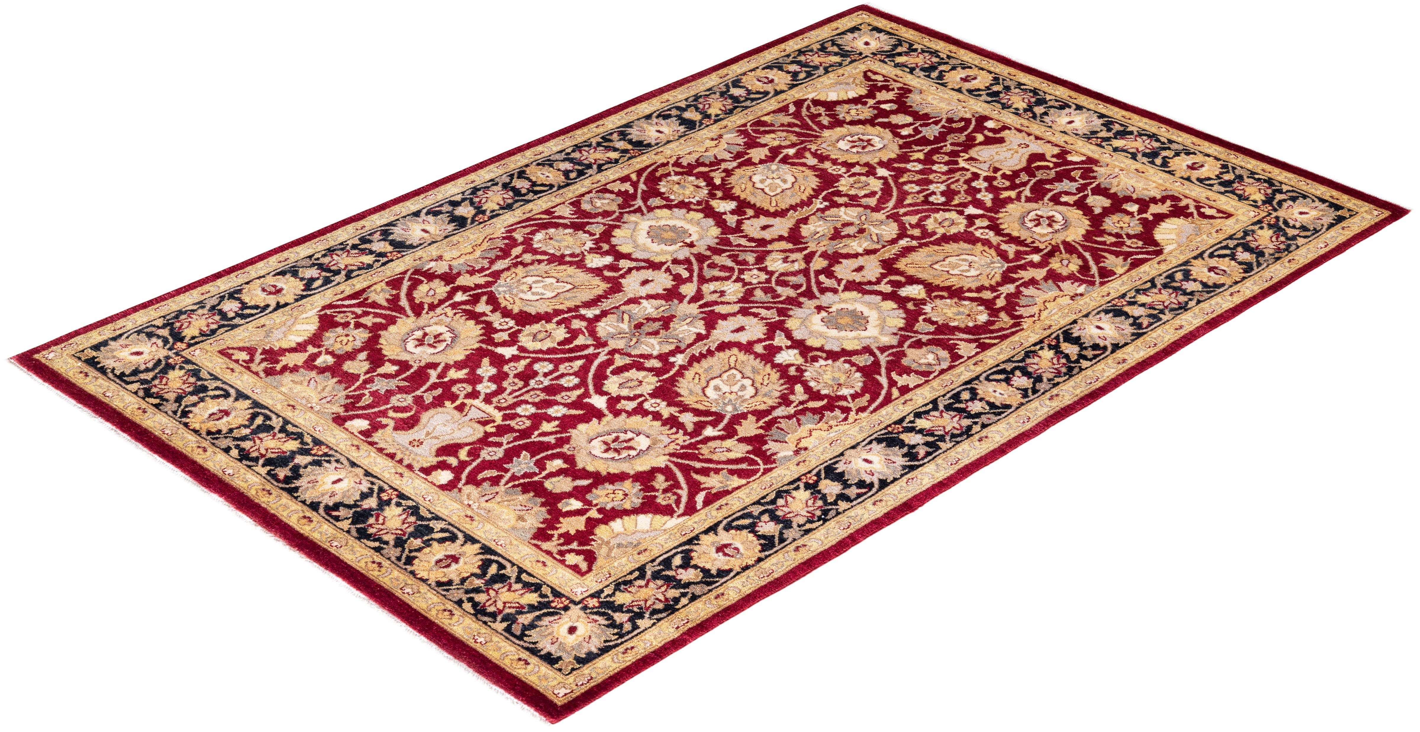 Traditional Hand Knotted Mogul Oriental Red Area Rug 4' 1" x 6' 0"