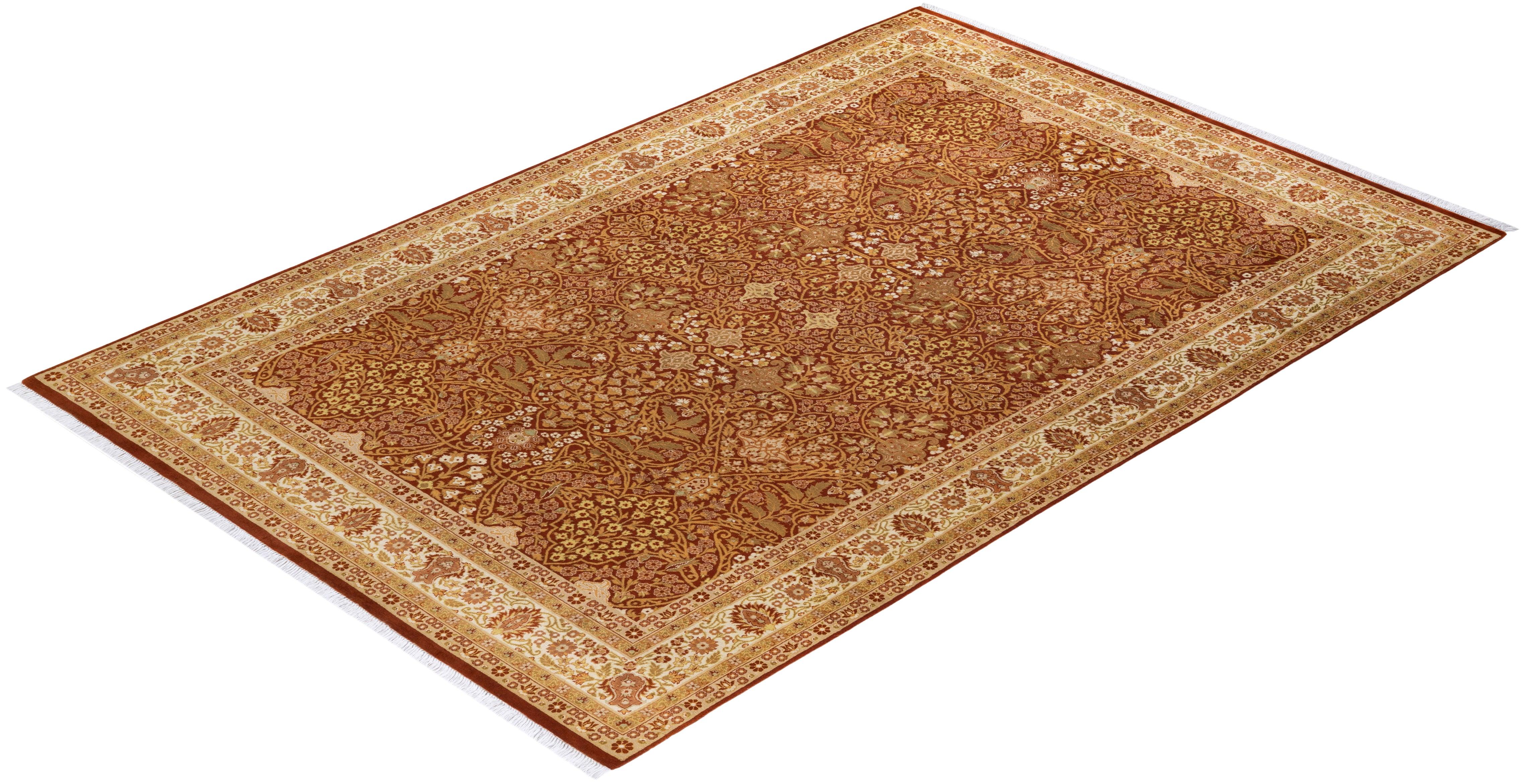Traditional Hand Knotted Mogul Oriental Orange Area Rug 6' 1" x 9' 2"