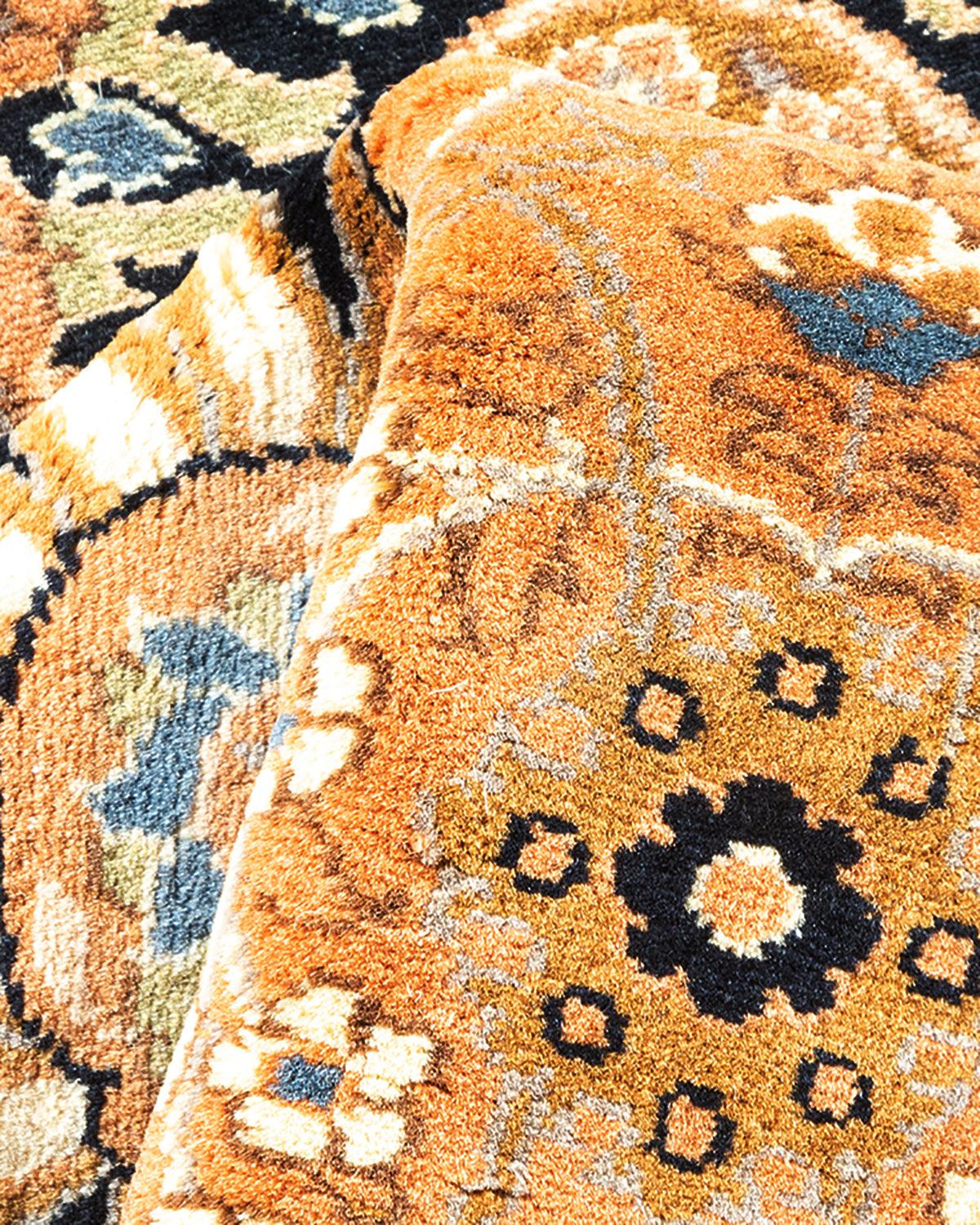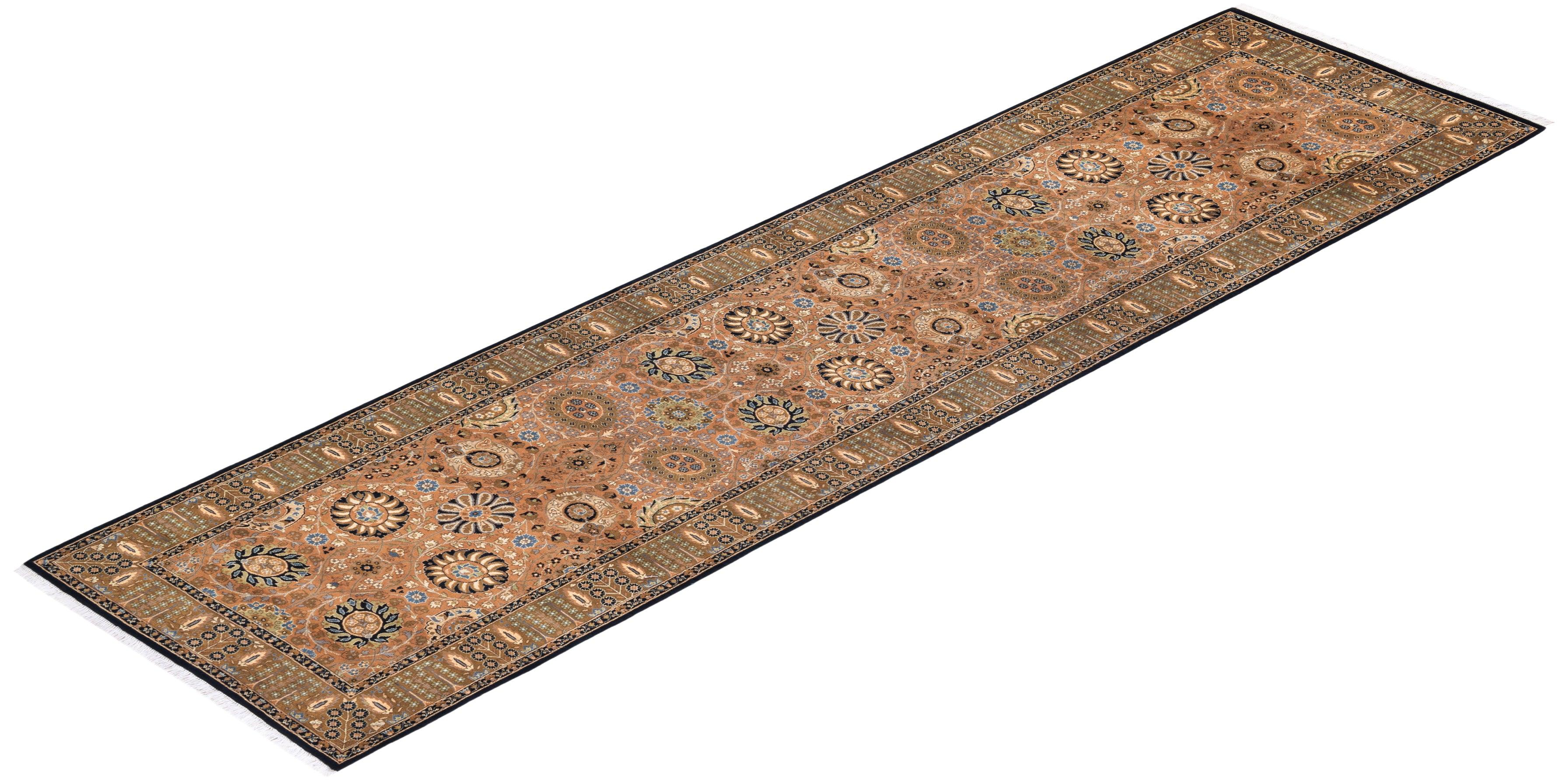 Traditional Hand Knotted Mogul Oriental Brown Runner 3' 0" x 11' 7"
