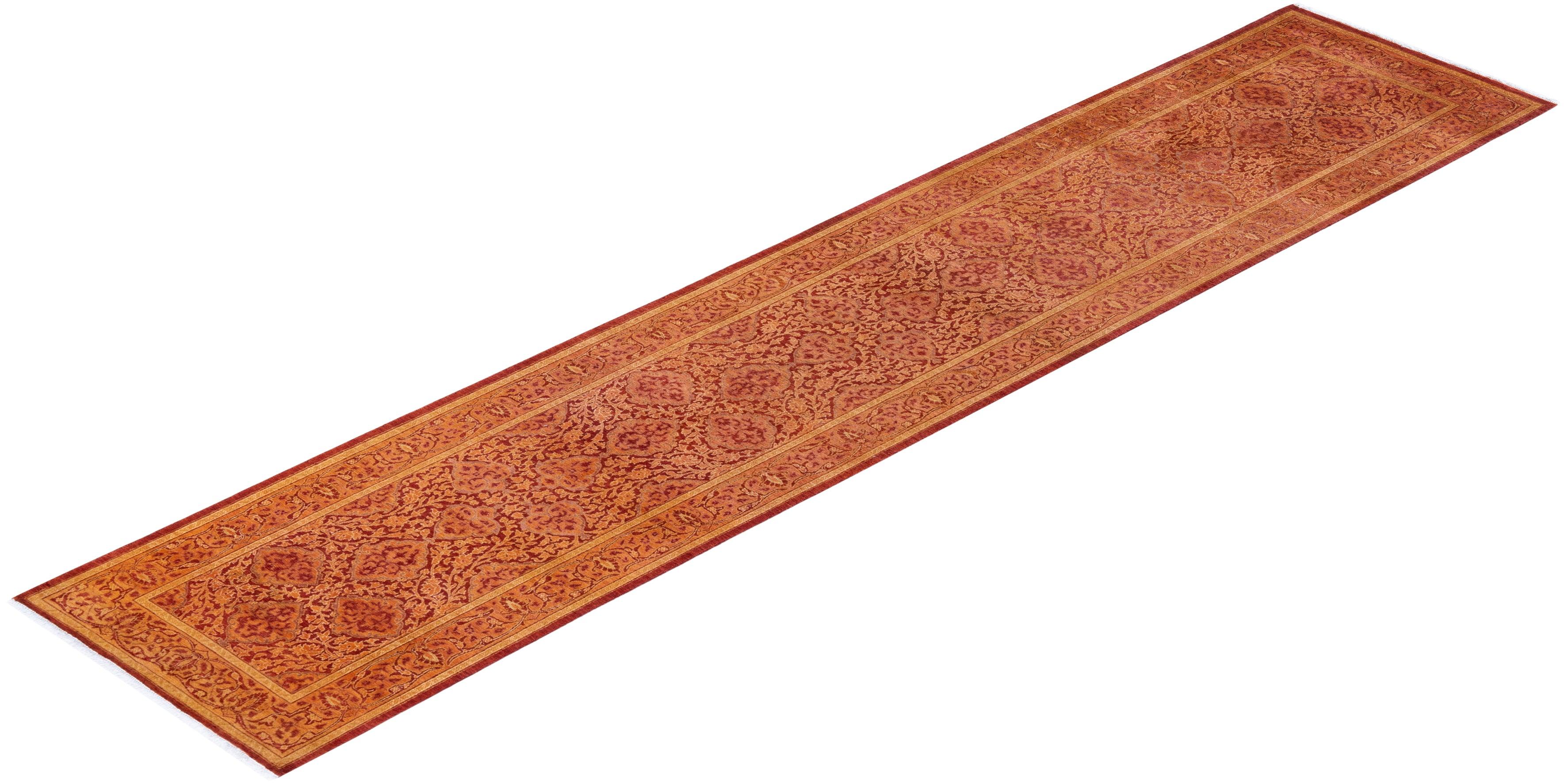 Traditional Hand Knotted Mogul Oriental Orange Runner 2' 5" x 11' 9"