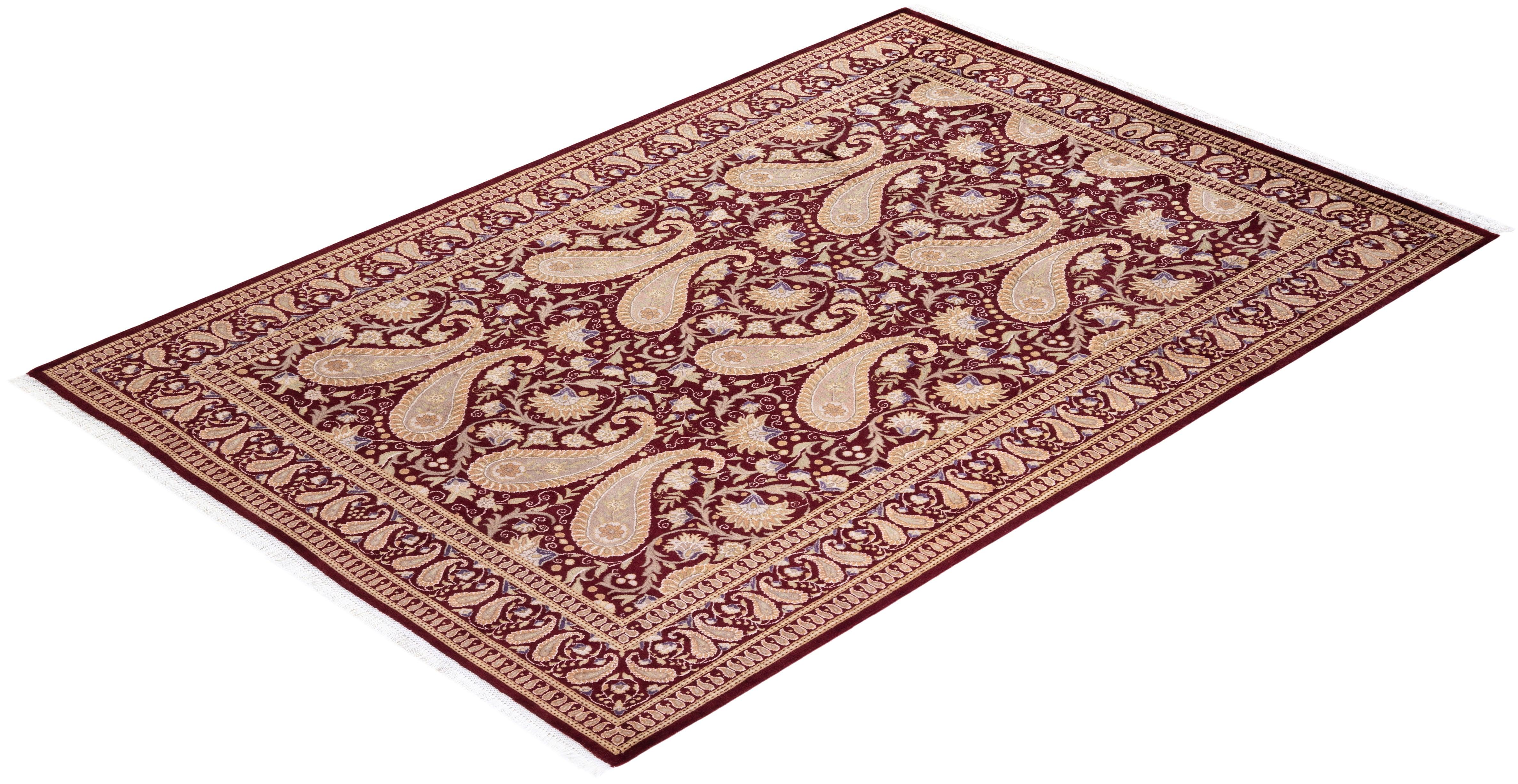 Traditional Hand Knotted Mogul Oriental Red Area Rug 6' 2" x 9' 1"