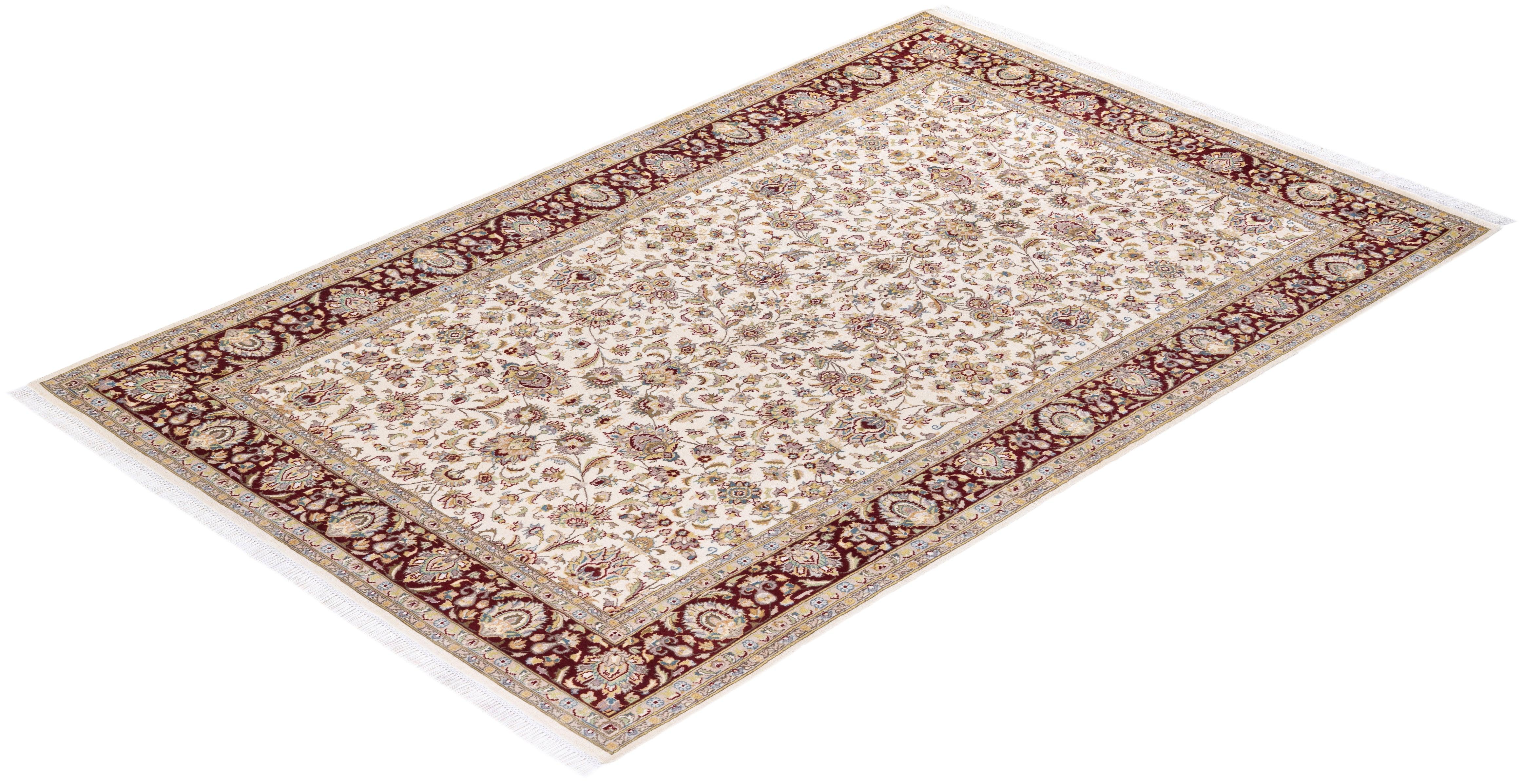 Traditional Hand Knotted Mogul Oriental Ivory Area Rug 6' 1" x 9' 5"