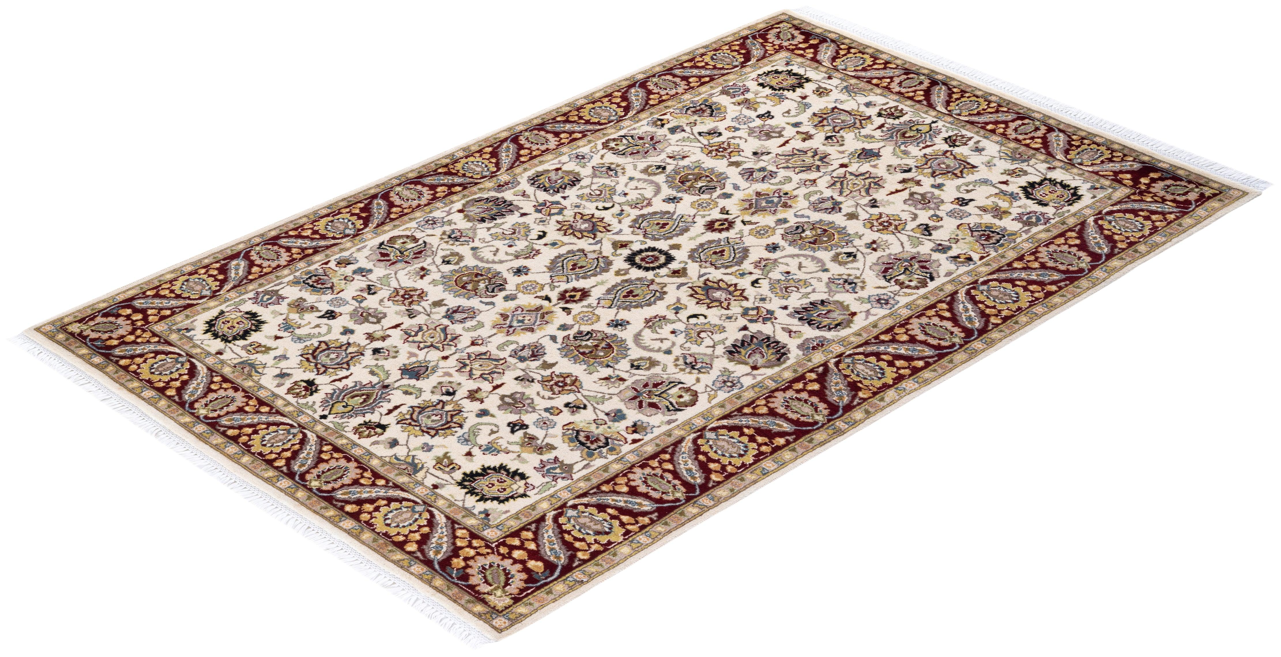 Traditional Hand Knotted Mogul Oriental Ivory Area Rug 4' 1" x 6' 6"