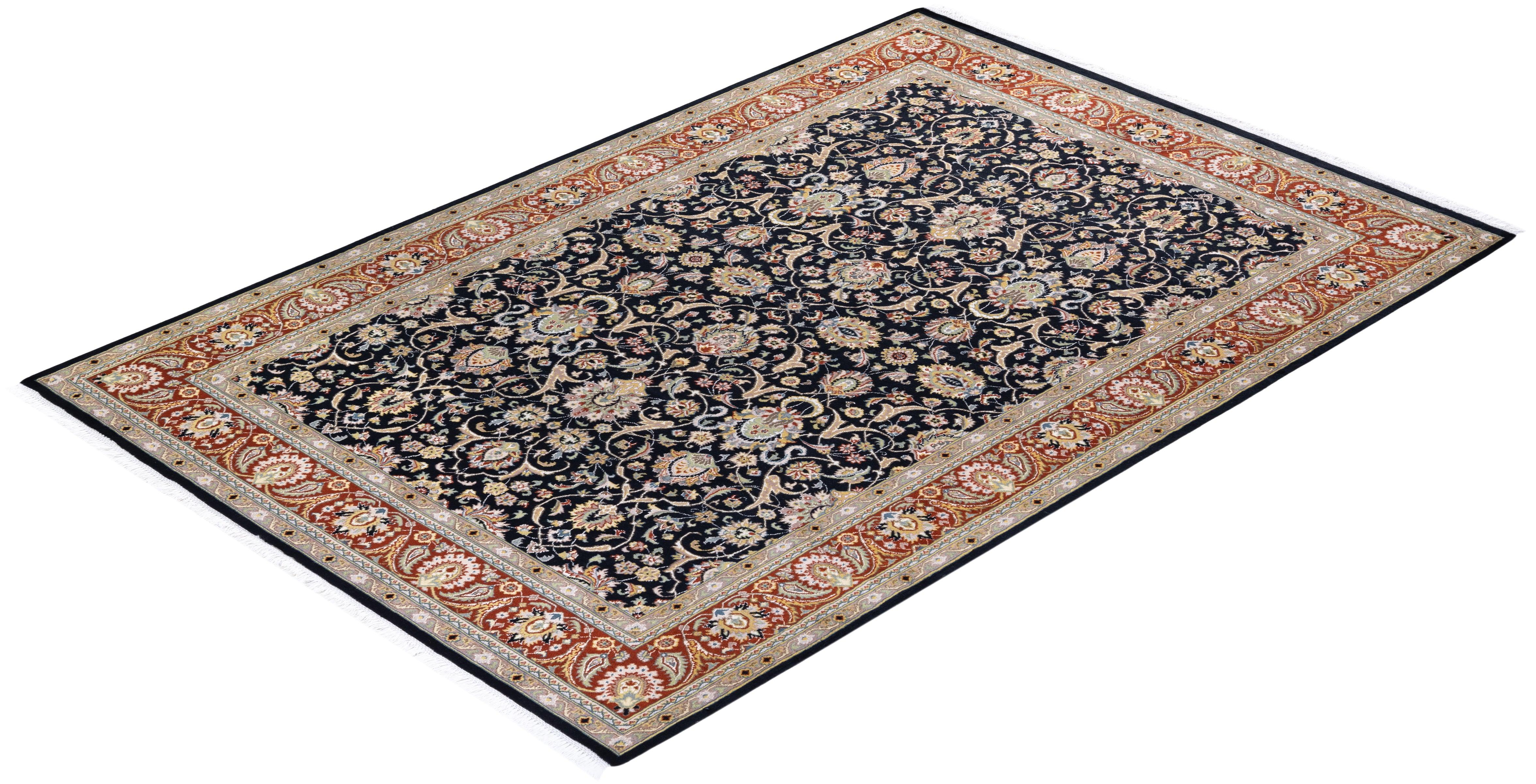 Traditional Hand Knotted Mogul Oriental Black Area Rug 6' 3" x 9' 3"