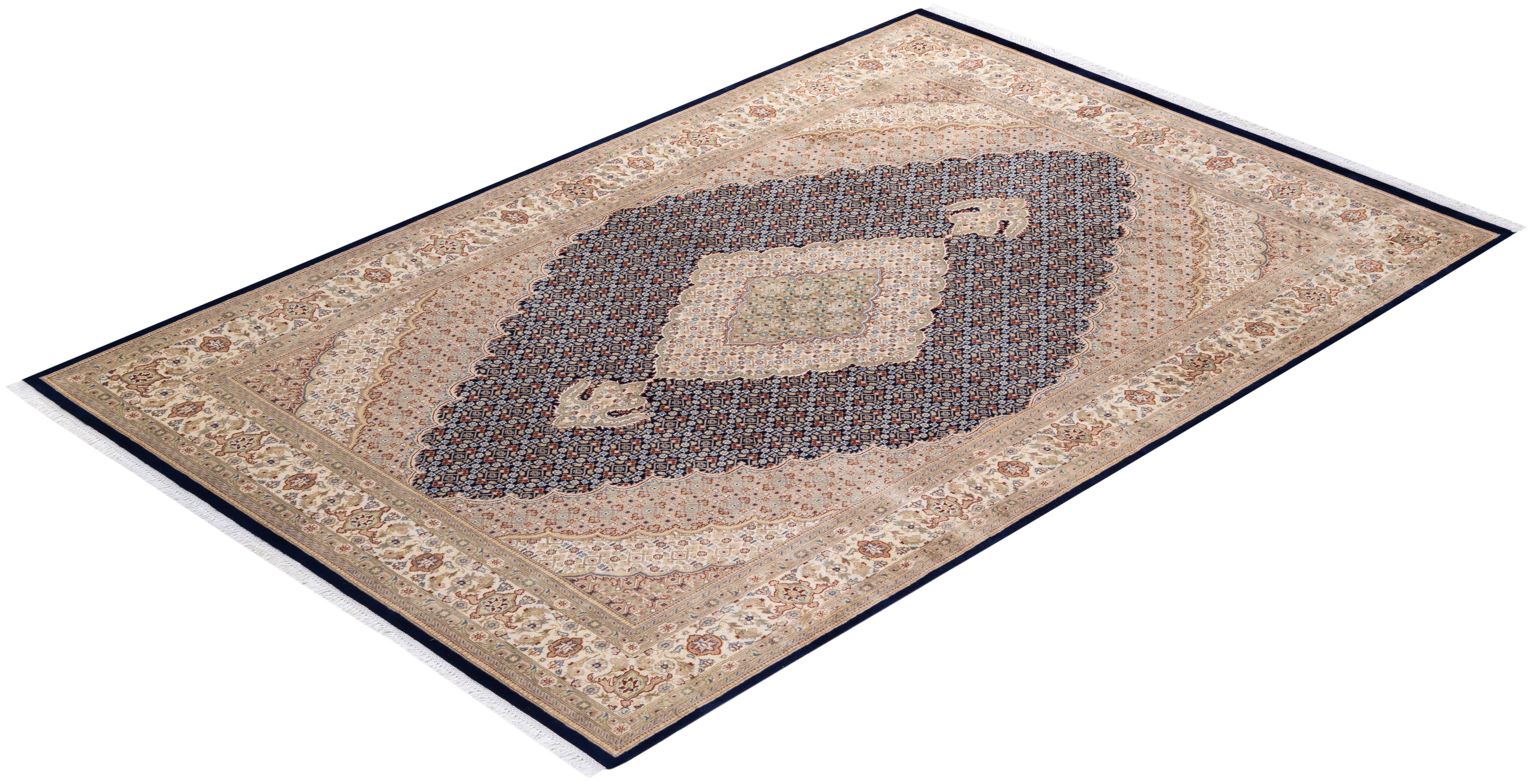 Traditional Hand Knotted Mogul Oriental Blue Area Rug 6' 7" x 9' 10"