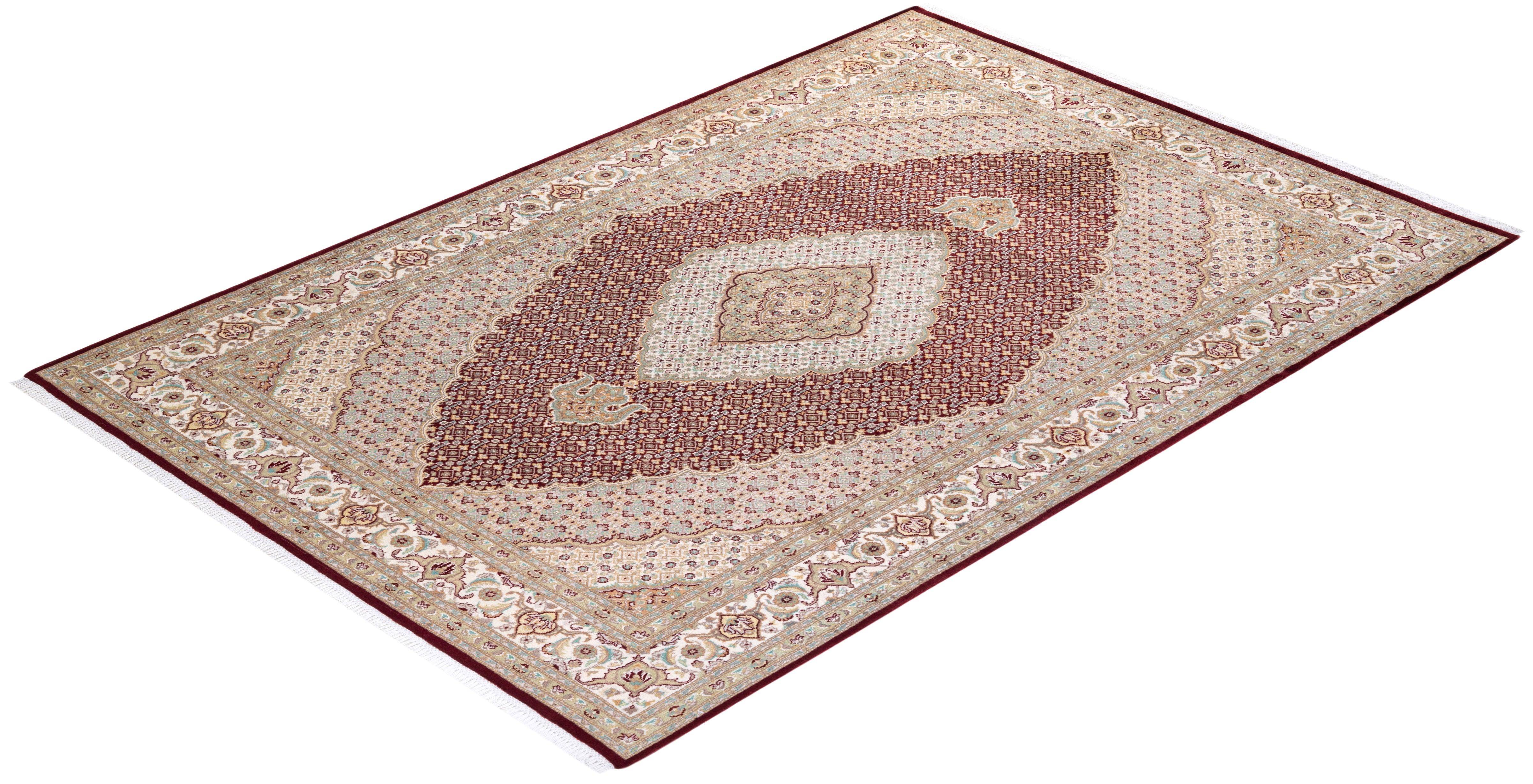 Traditional Hand Knotted Mogul Oriental Red Area Rug 6' 8" x 9' 9"