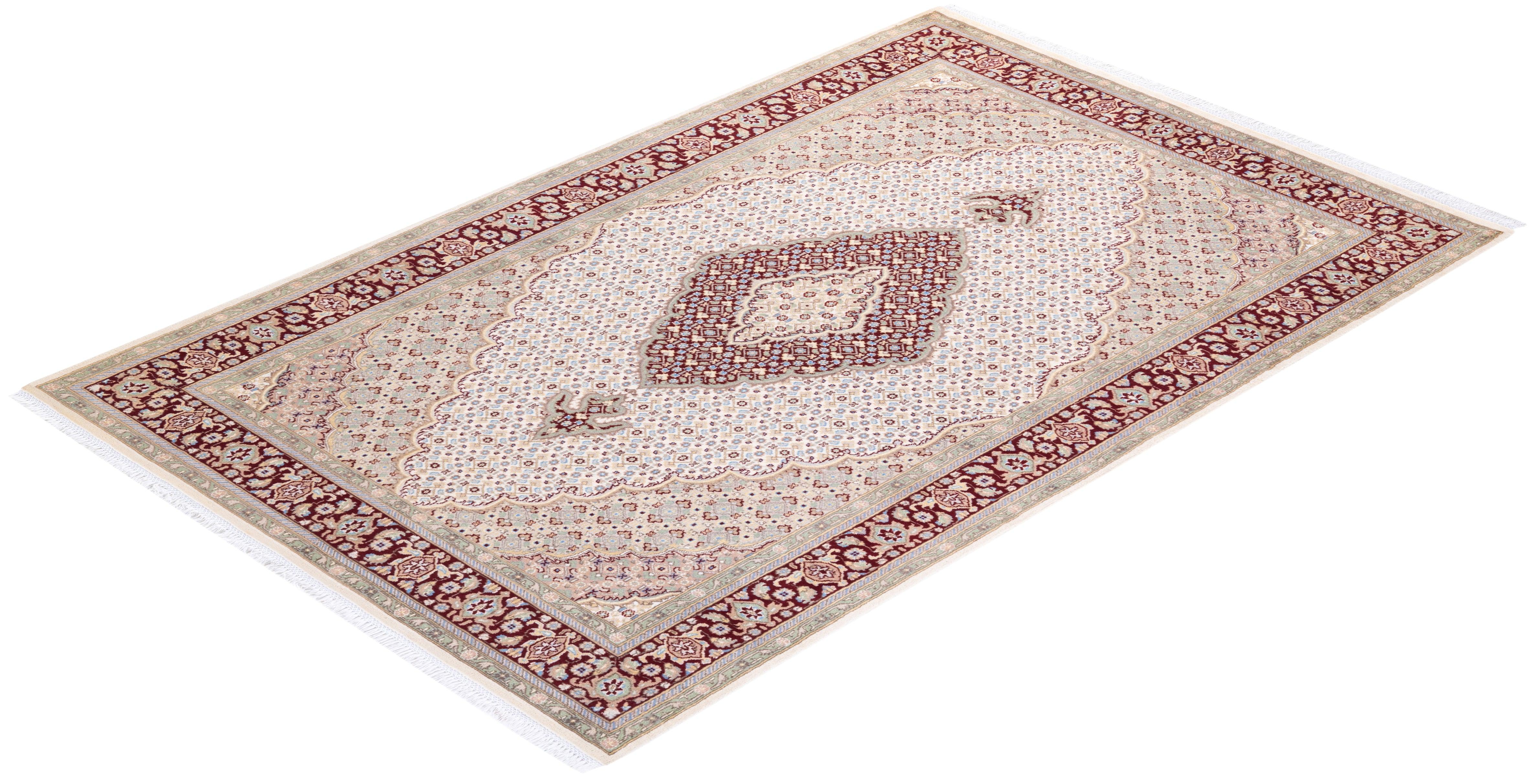Traditional Hand Knotted Mogul Oriental Ivory Area Rug 6' 2" x 9' 5"