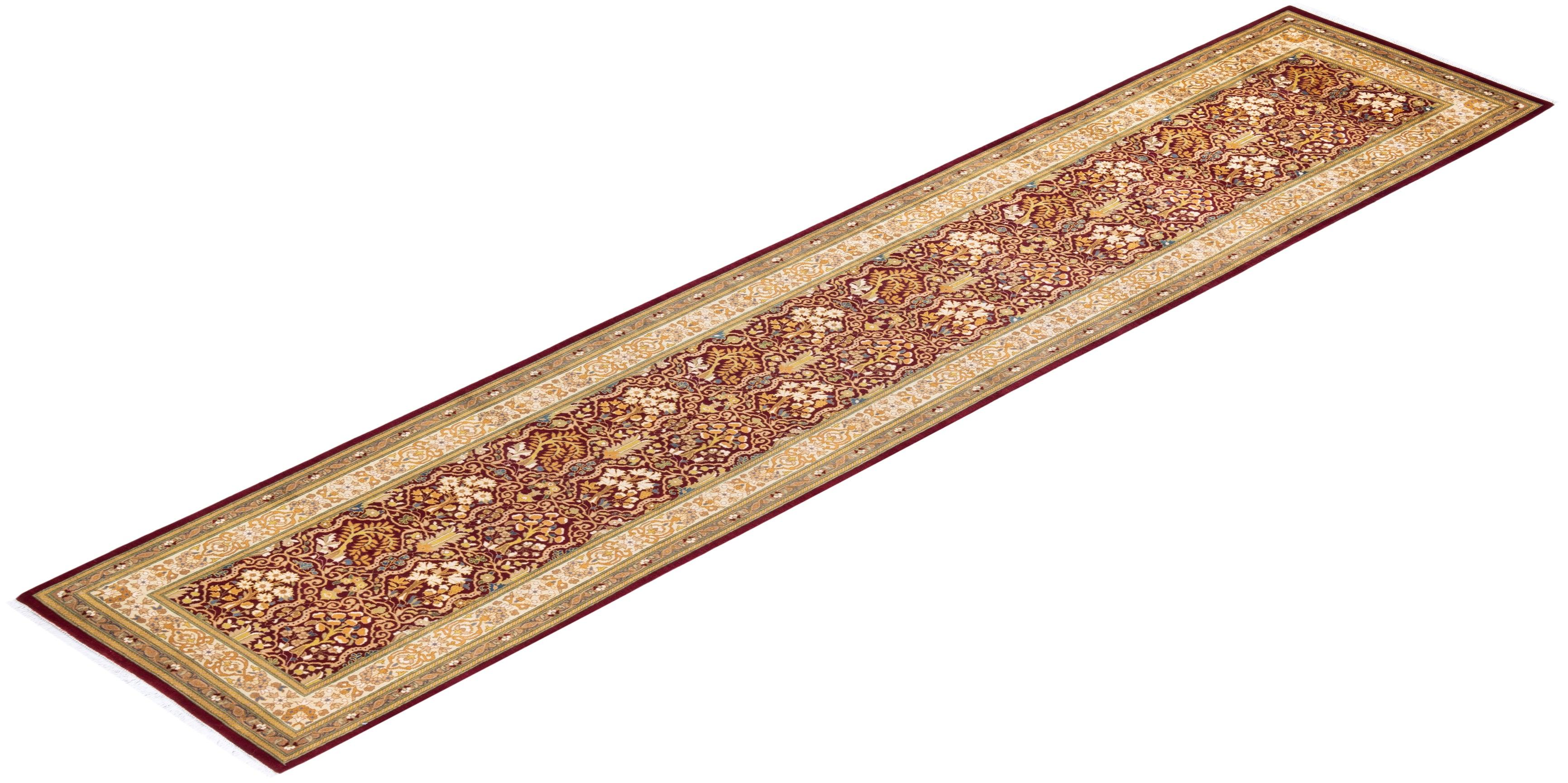Traditional Hand Knotted Mogul Oriental Red Runner 2' 7" x 12' 7"