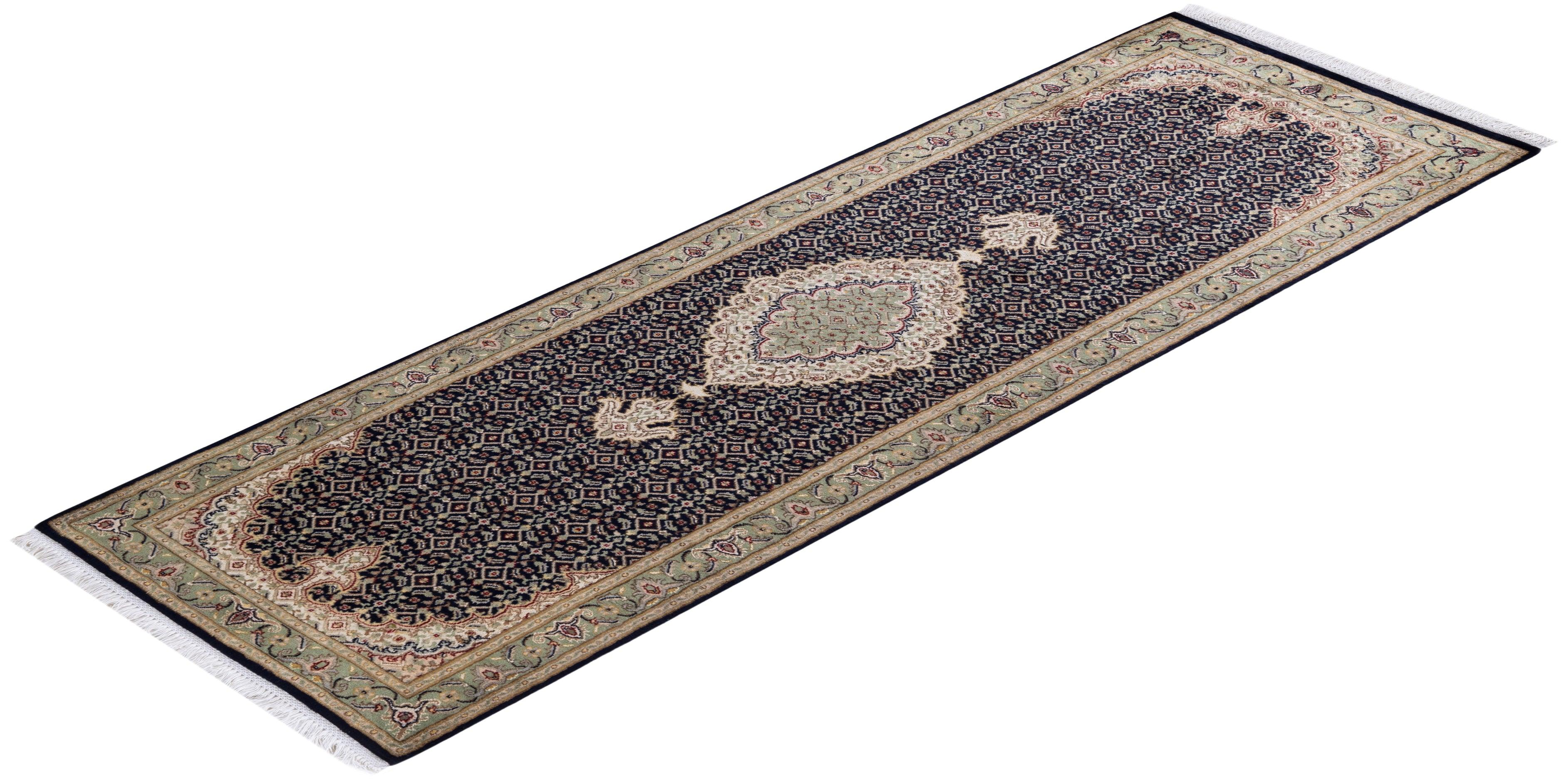 Traditional Hand Knotted Mogul Oriental Blue Runner 2' 7" x 8' 2"