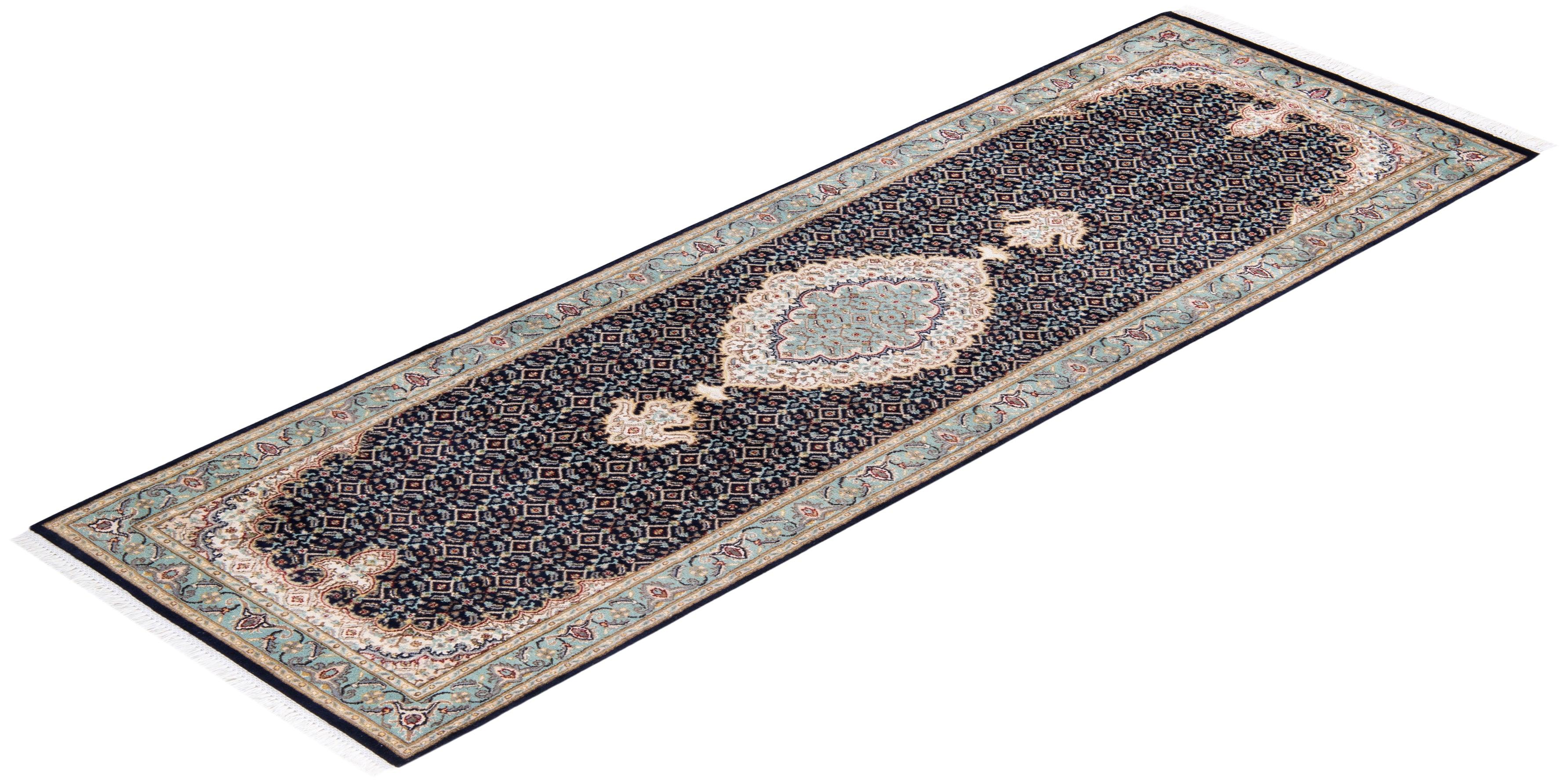 Traditional Hand Knotted Mogul Oriental Black Runner 2' 6" x 8' 1"
