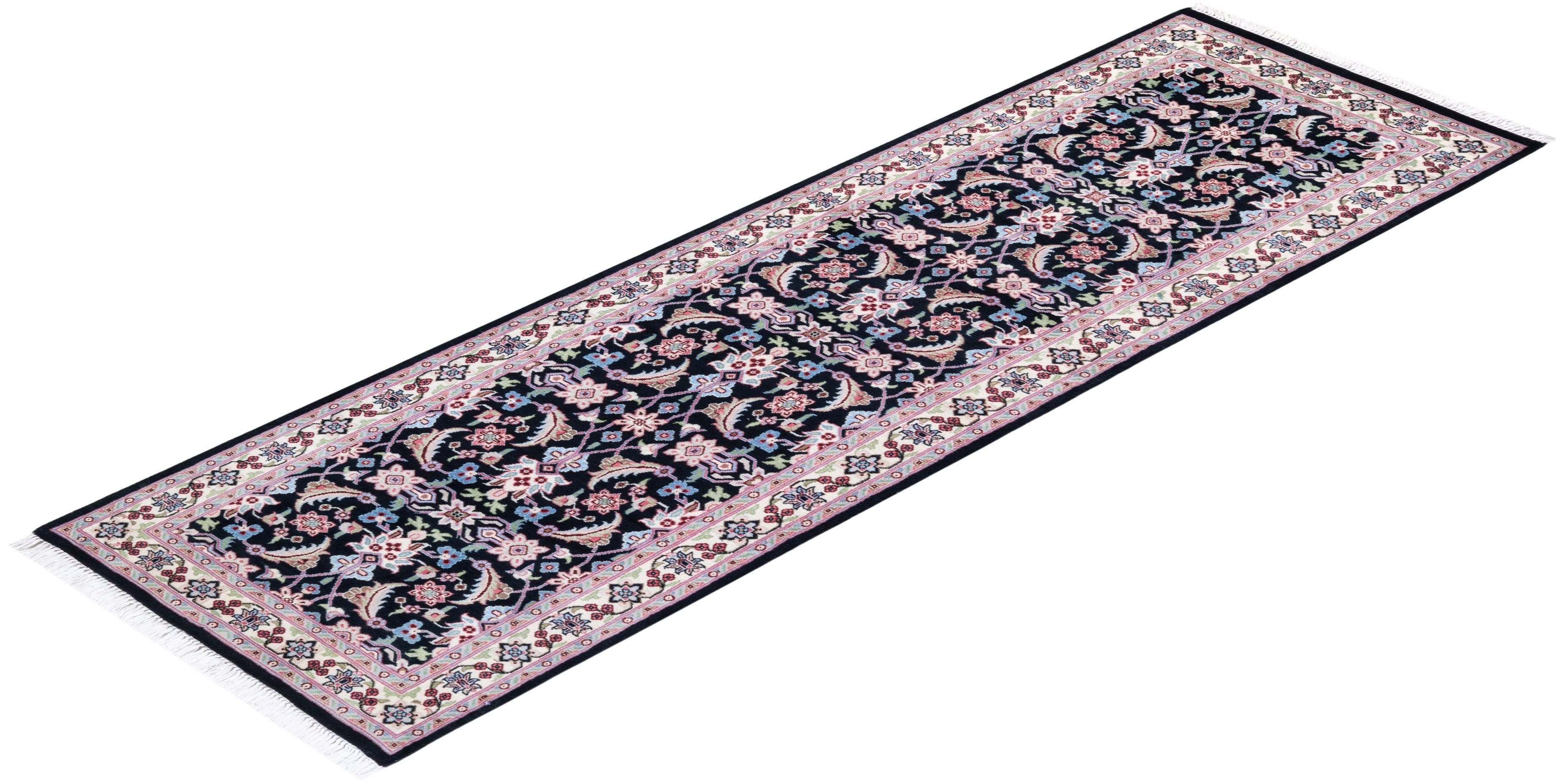 Traditional Hand Knotted Mogul Oriental Black Runner 2' 6" x 8' 2"