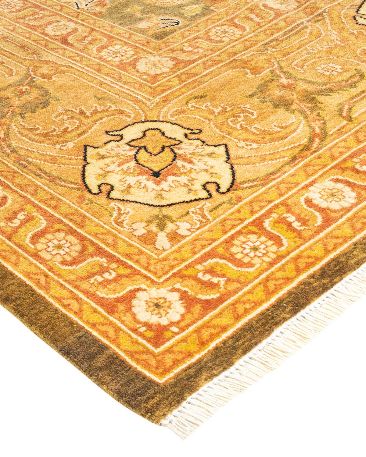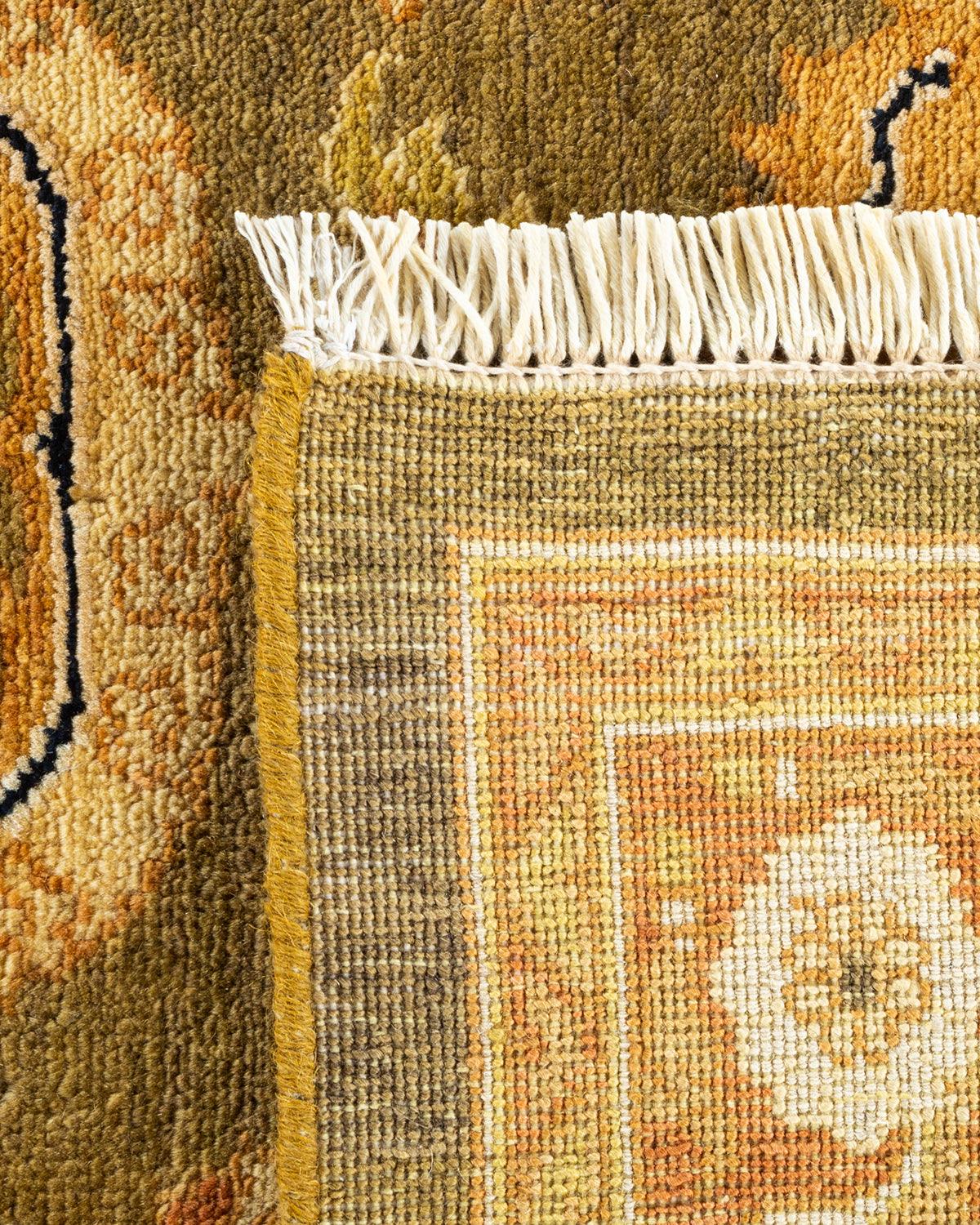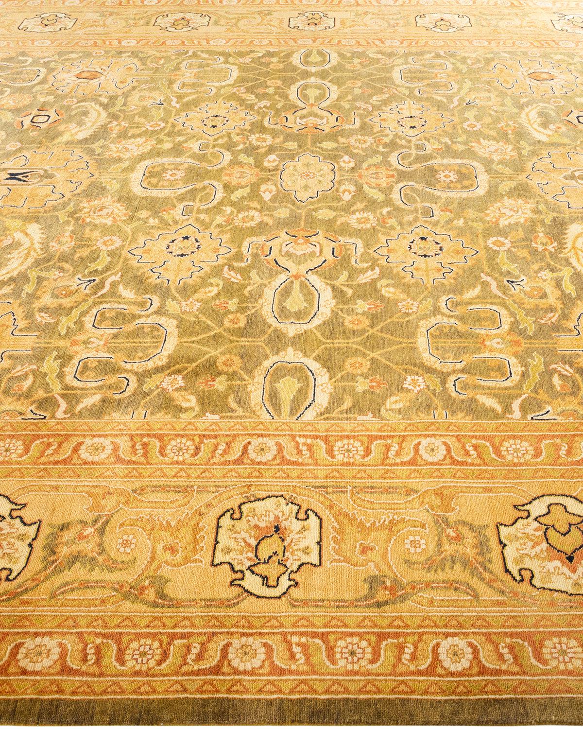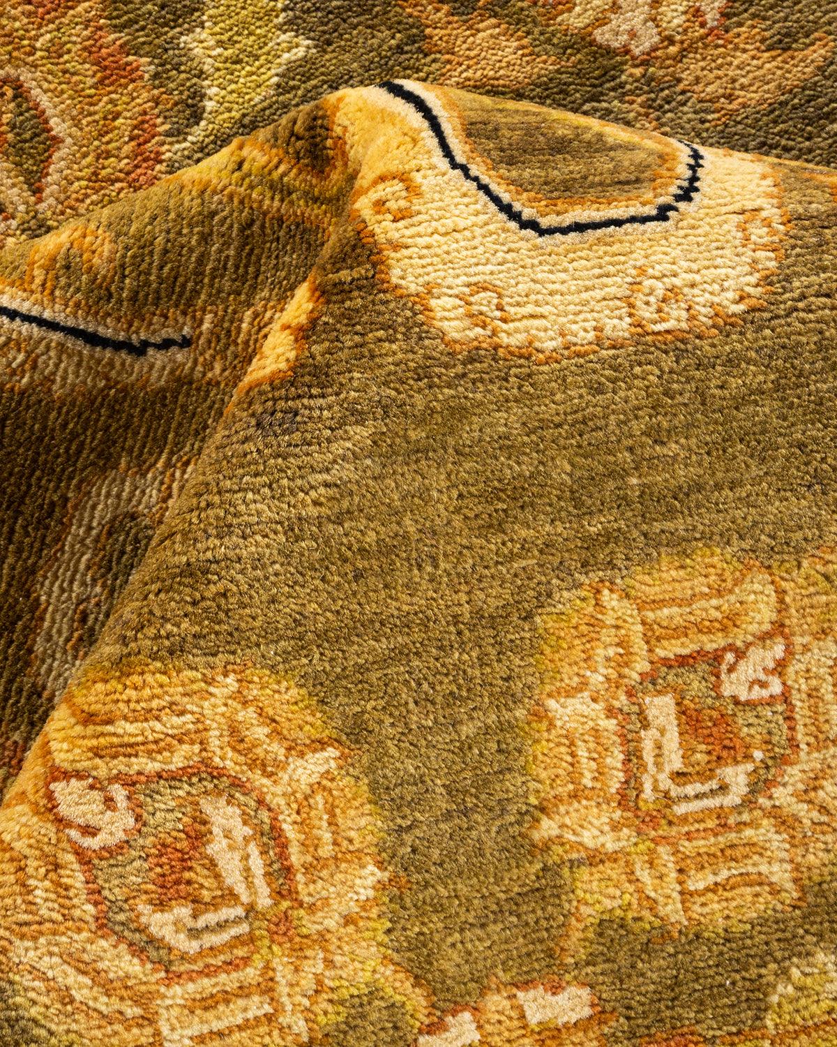 Contemporary Hand Knotted Eclectic Floral Green Area Rug 9' 1" x 12' 2"