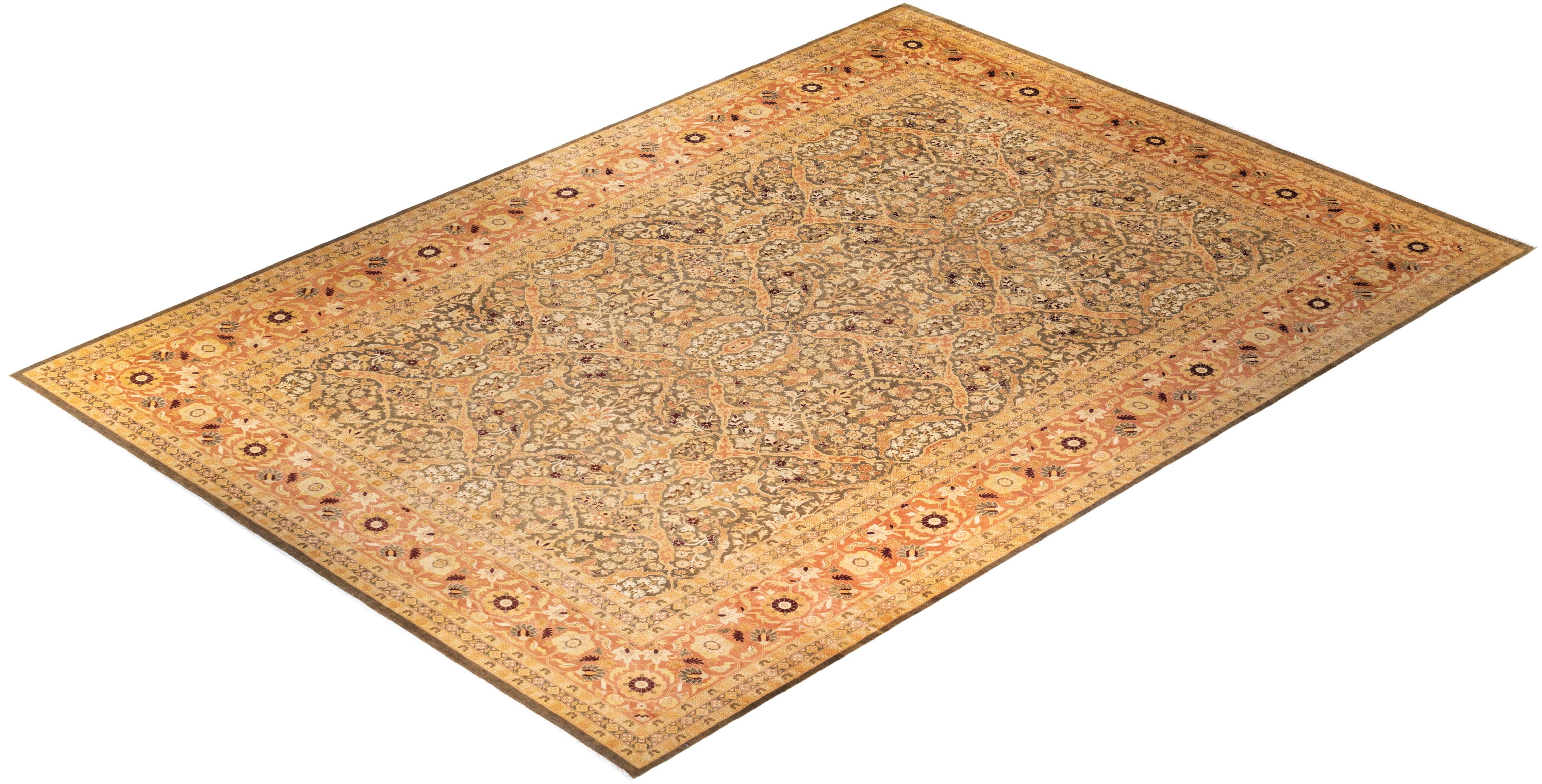 Contemporary Hand Knotted Eclectic Floral Green Area Rug 12' 1" x 17' 7"