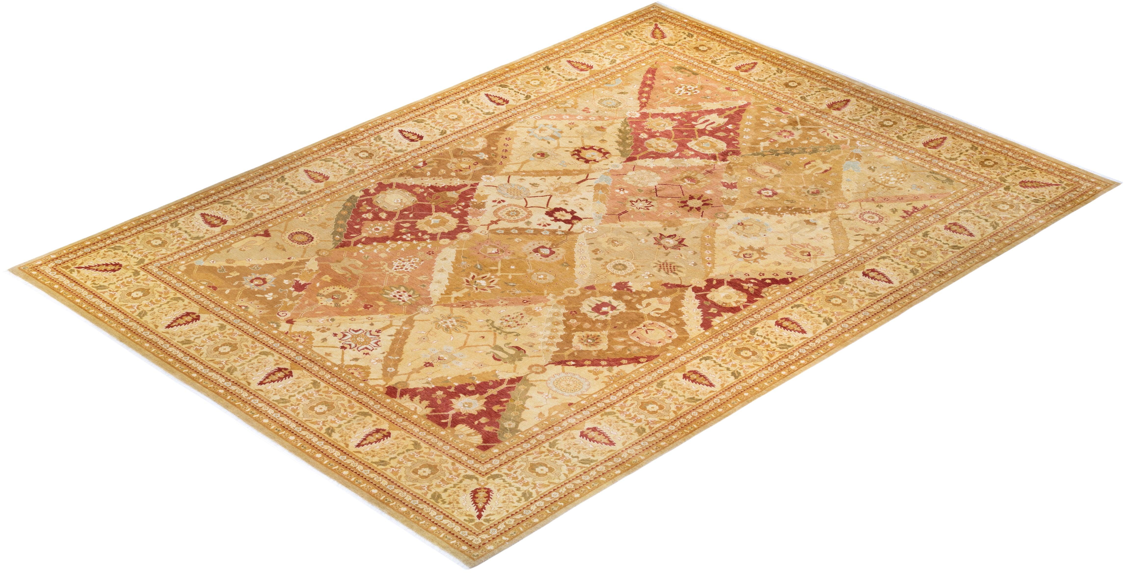 Contemporary Hand Knotted Eclectic Floral Ivory Area Rug 10' 2" x 14' 1"