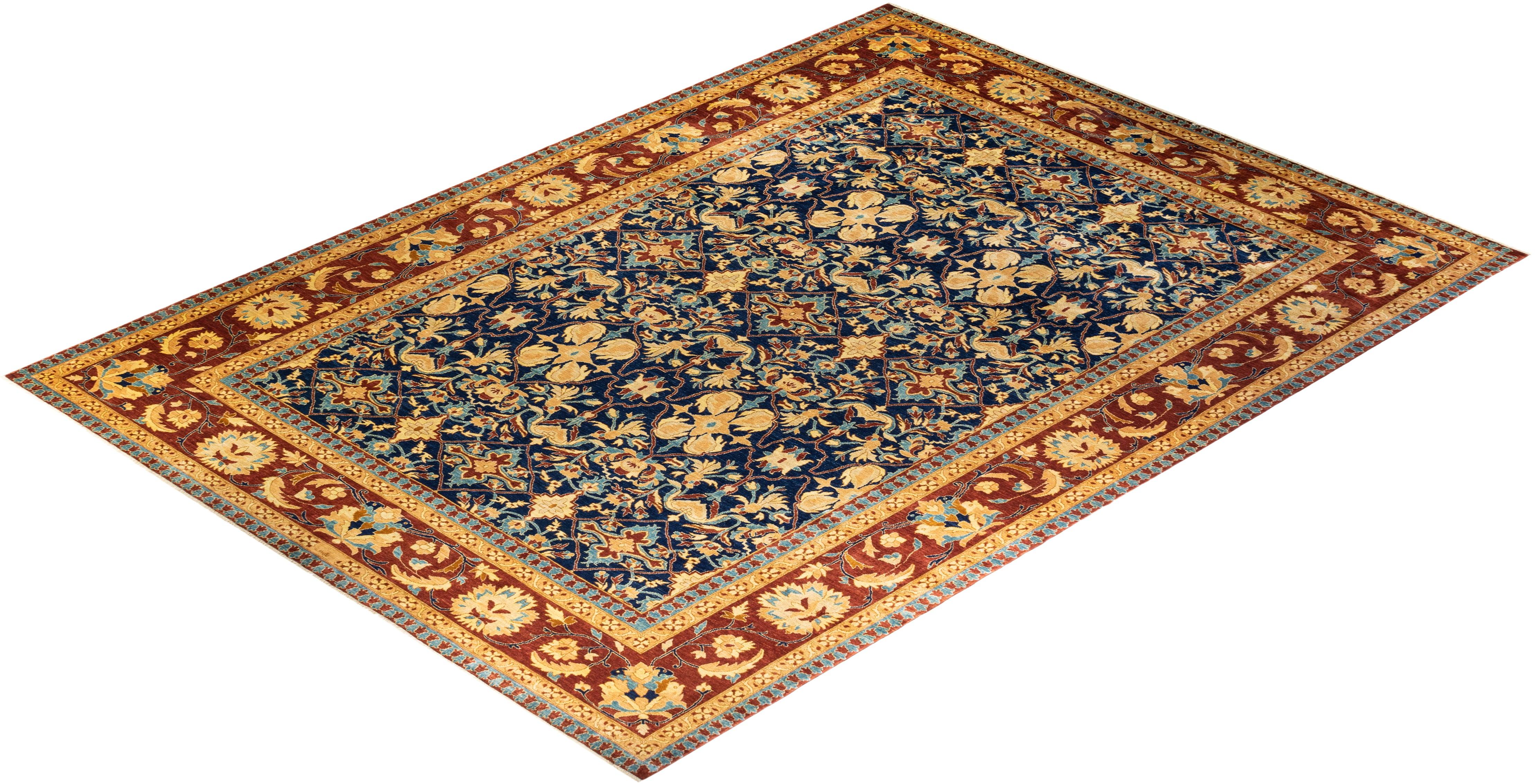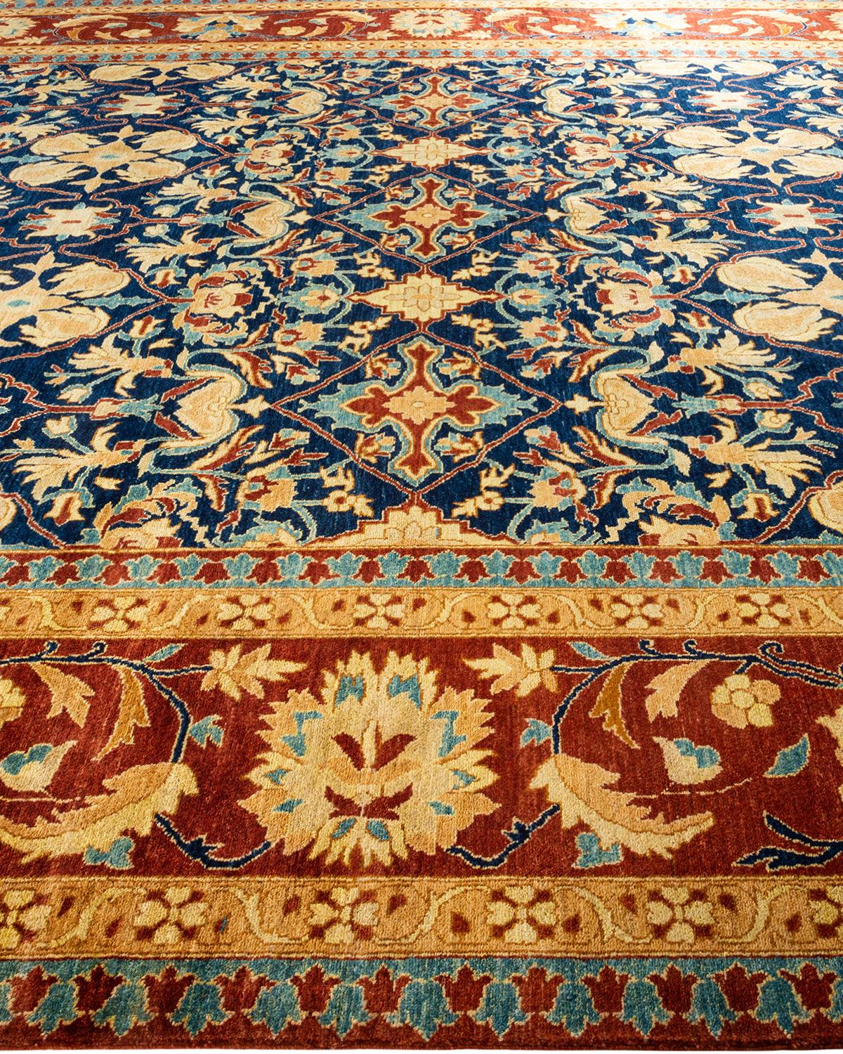 Contemporary Hand Knotted Eclectic Oriental Blue Area Rug 12' 3" x 17' 4"