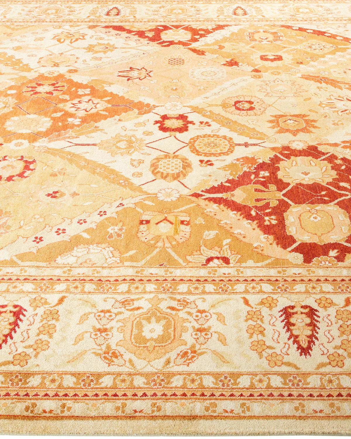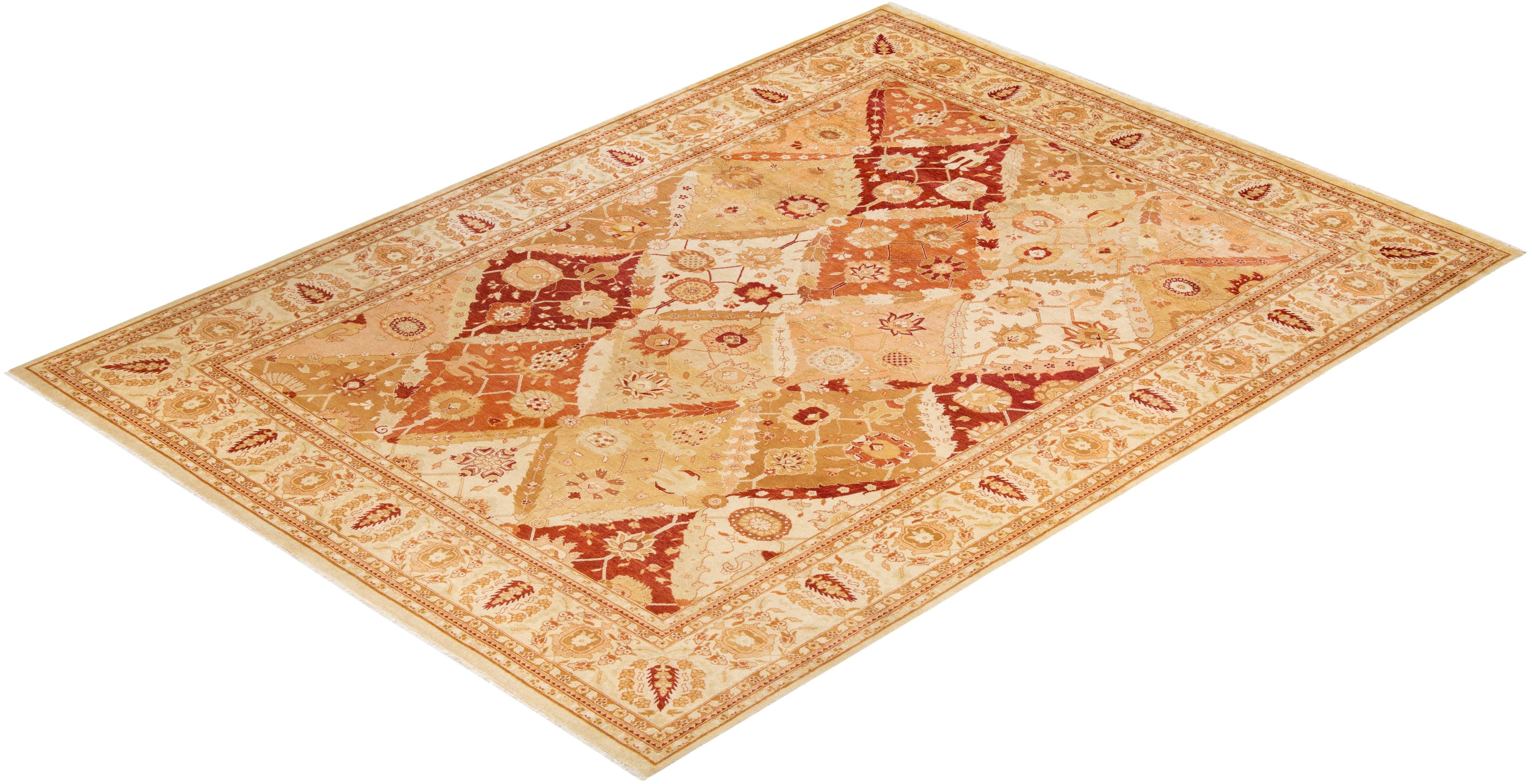 Contemporary Hand Knotted Eclectic Ivory Area Rug 9' 2" x 12' 6"