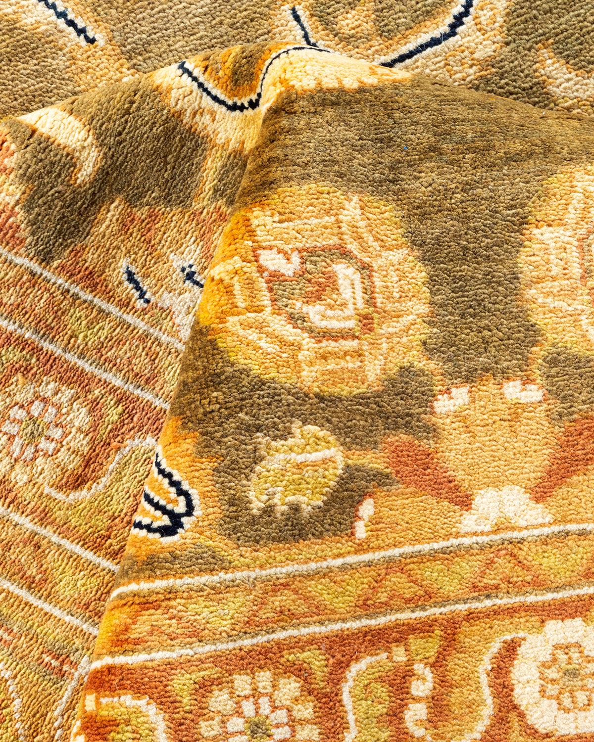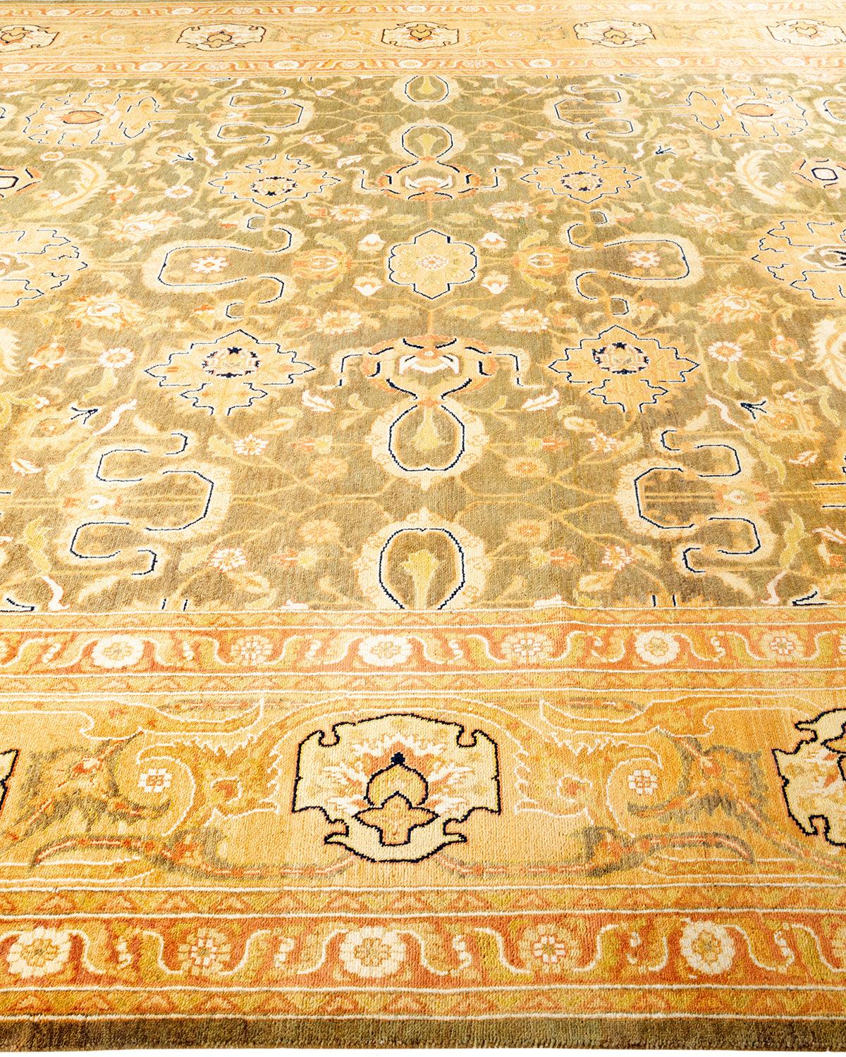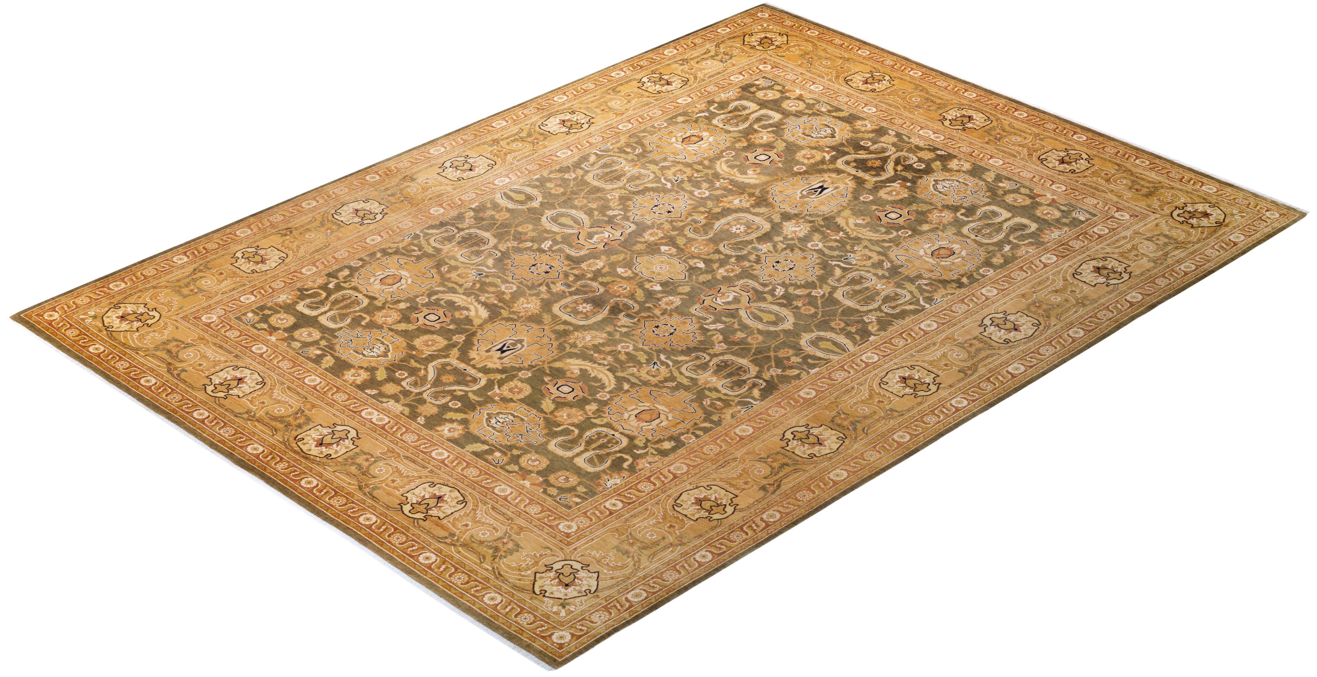 Contemporary Hand Knotted Eclectic Oriental Green Area Rug 9' 0" x 12' 6"