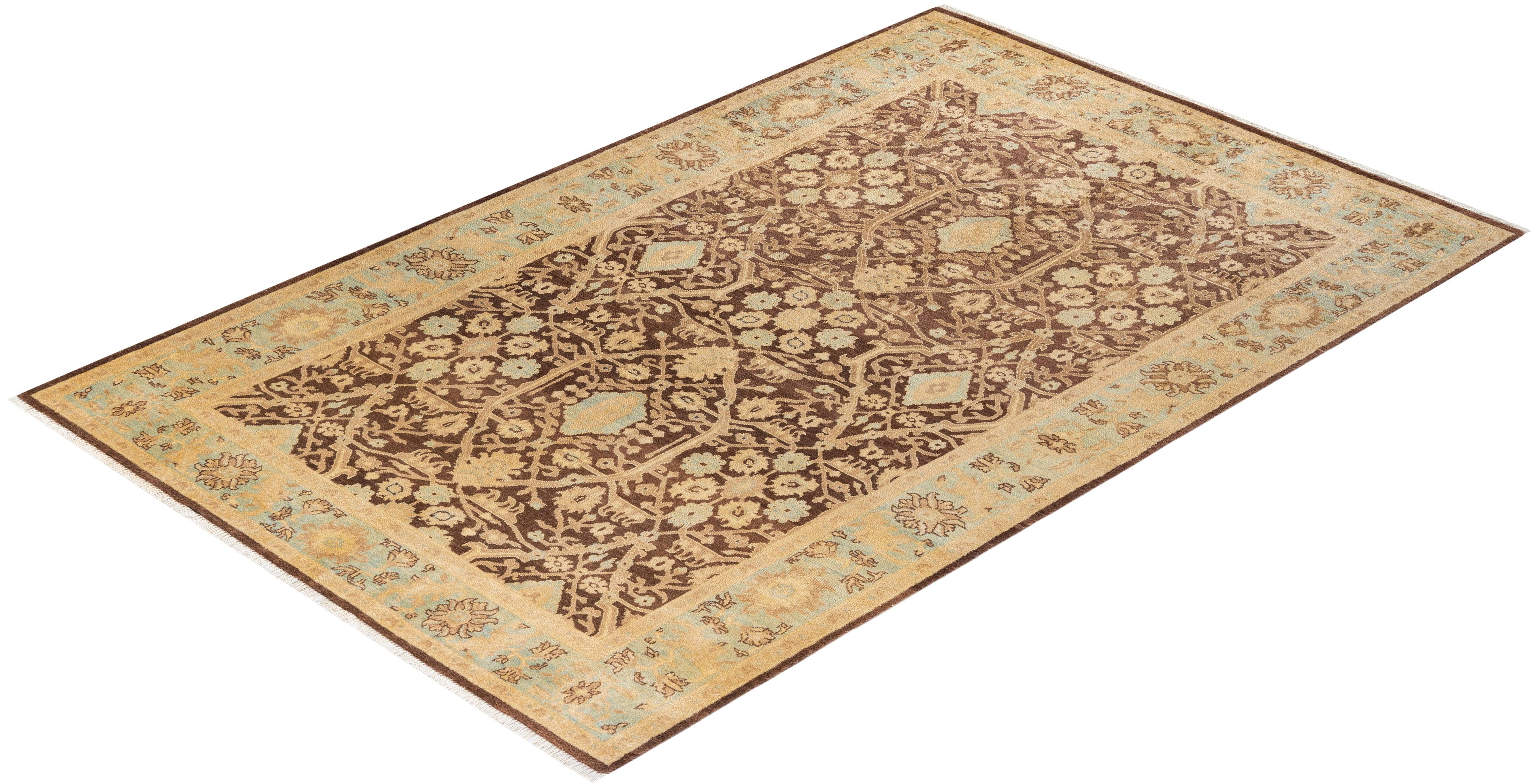 Contemporary Hand Knotted Eclectic Floral Red Area Rug 6' 3" x 9' 6"