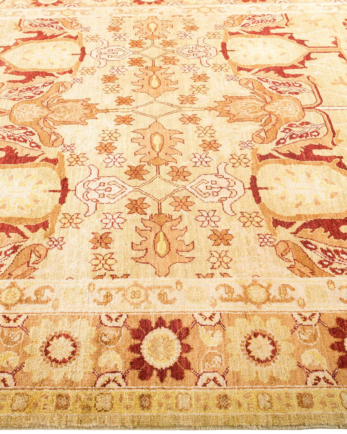 Contemporary Hand Knotted Eclectic Oriental Yellow Area Rug 6' 3" x 9' 3"