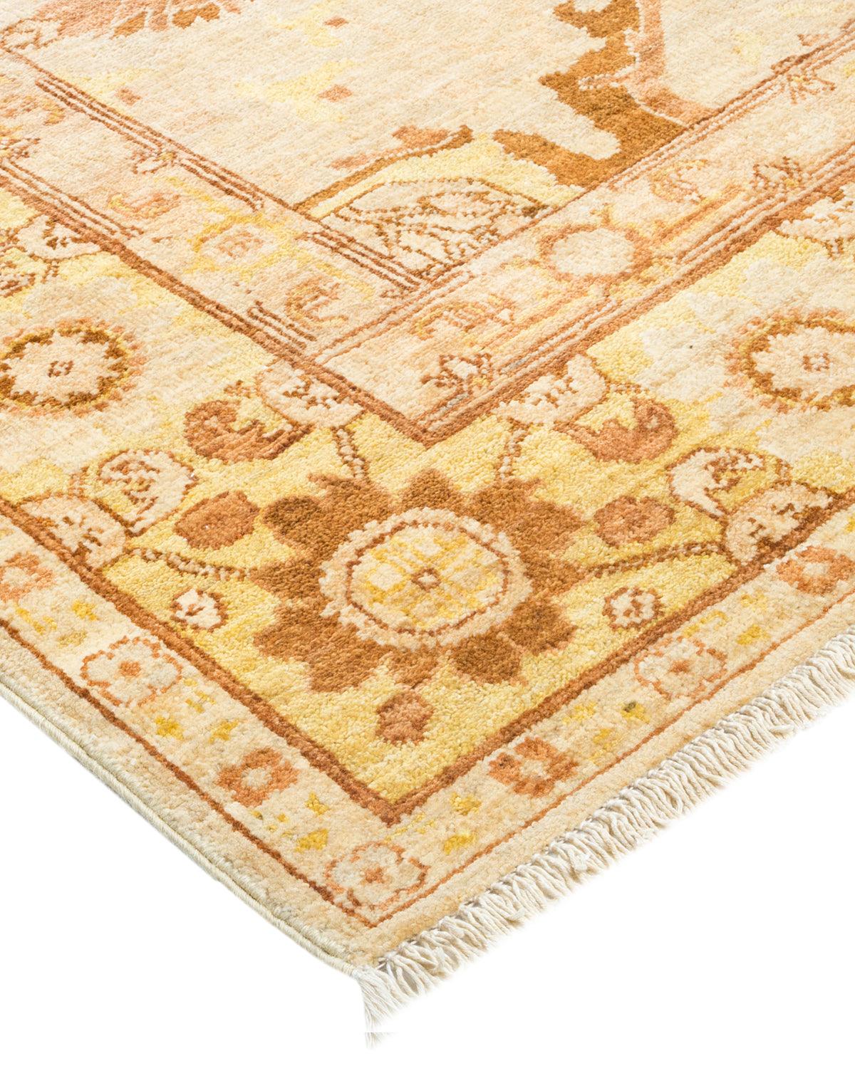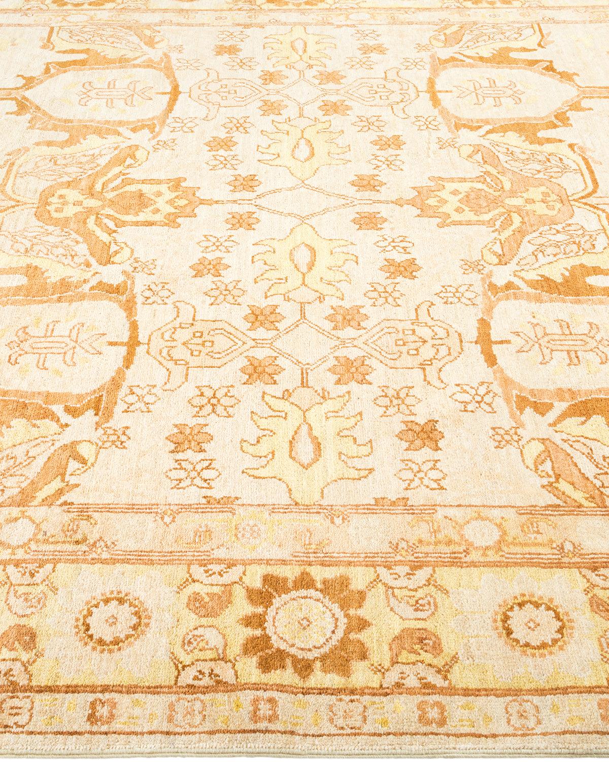 Contemporary Hand Knotted Eclectic Floral Ivory Area Rug 6' 2" x 9' 2"