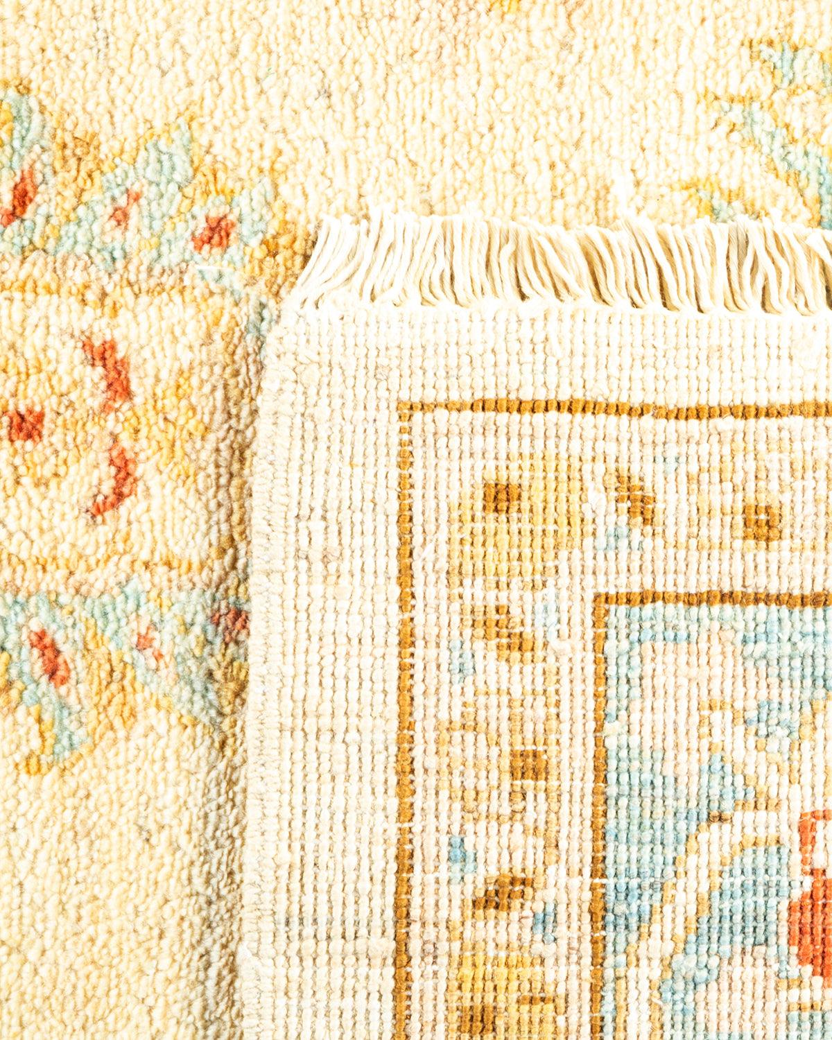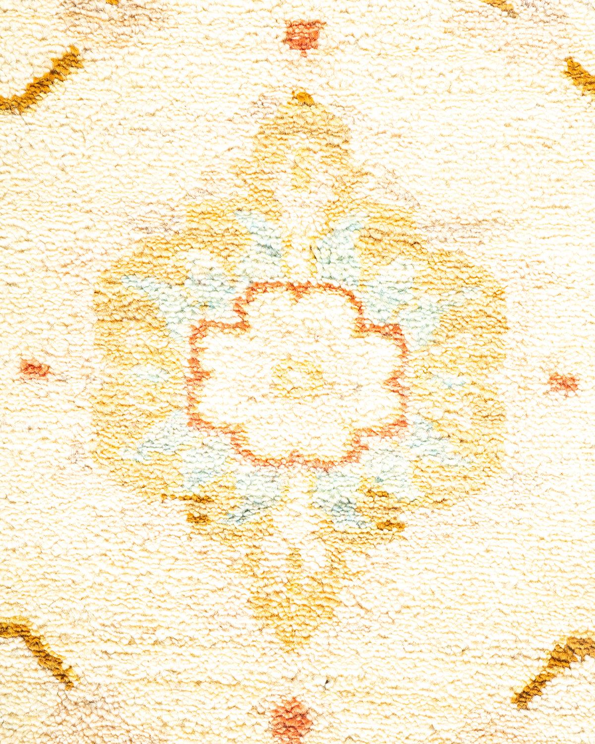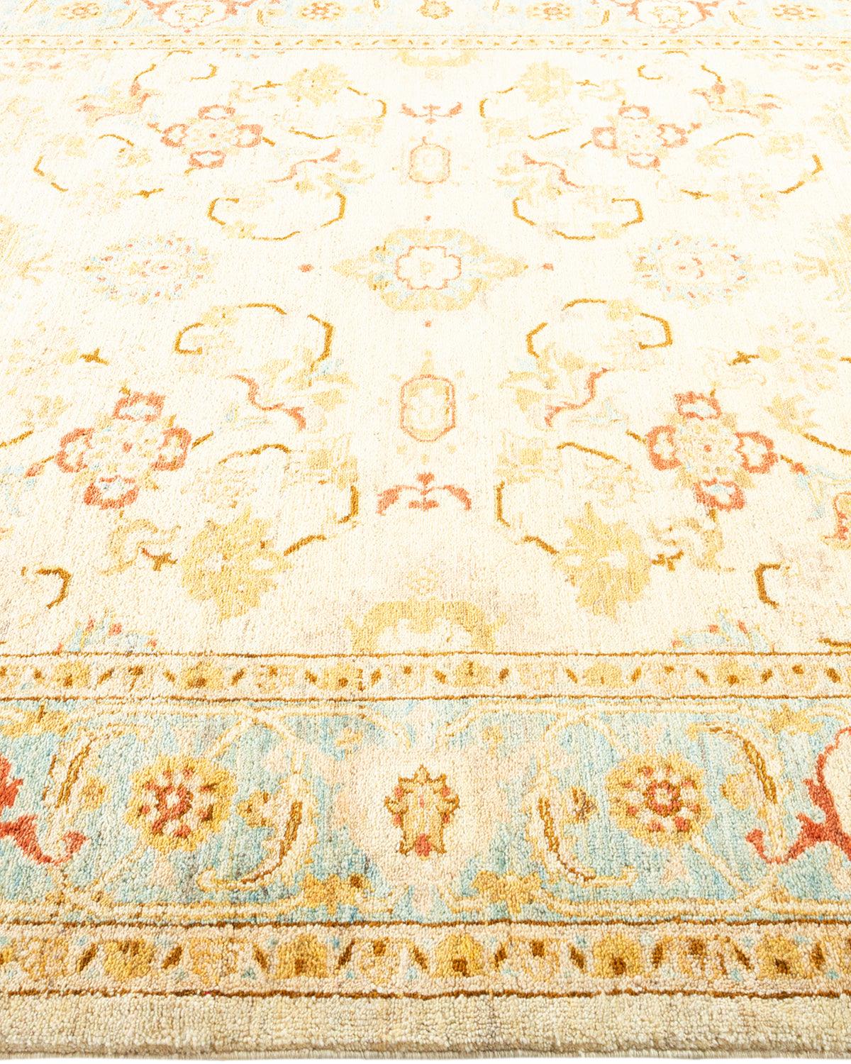 Contemporary Hand Knotted Eclectic Floral Ivory Area Rug 6' 5" x 8' 10"