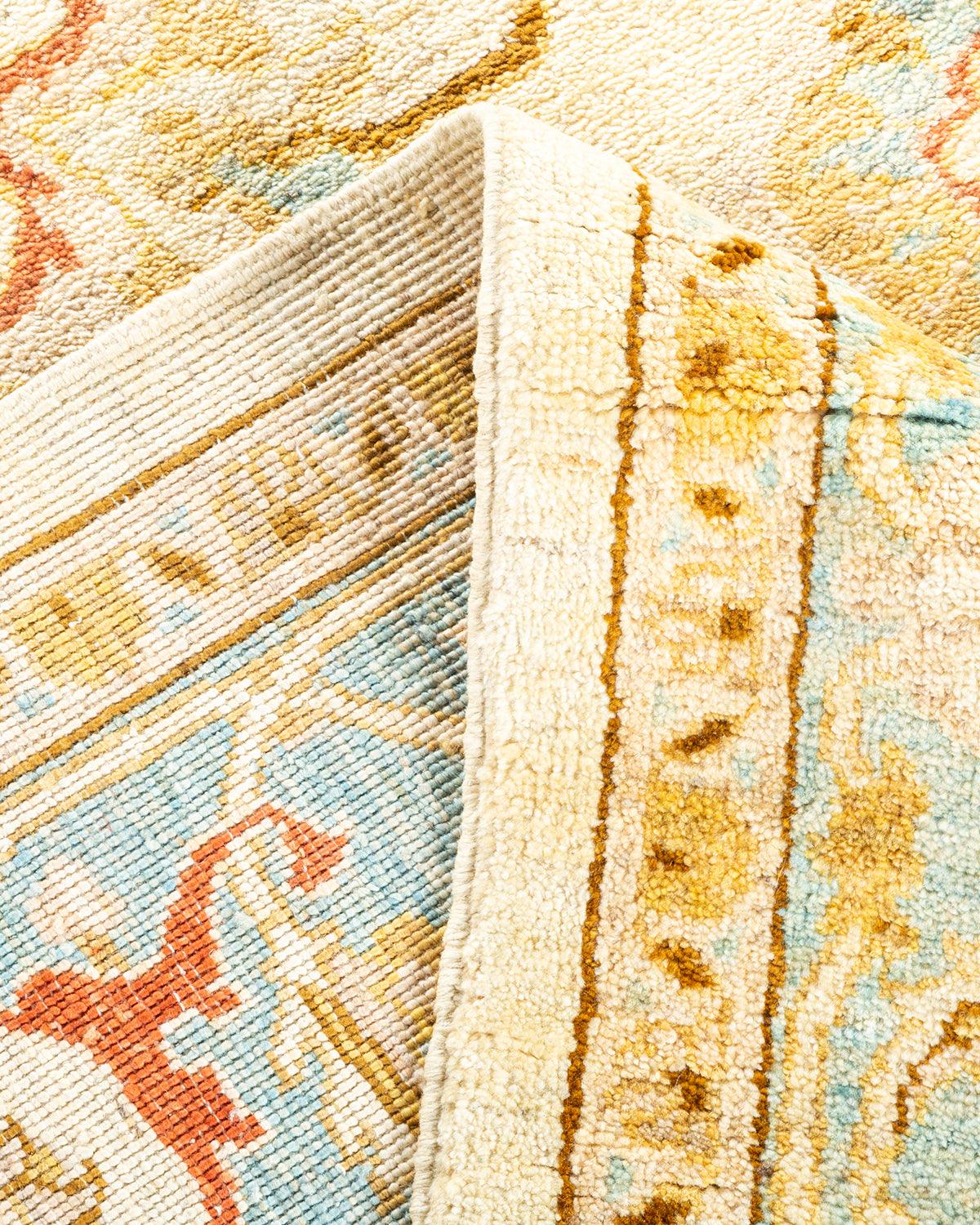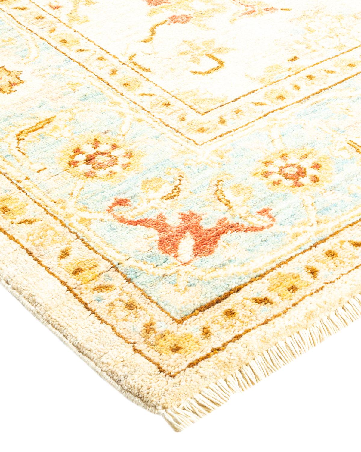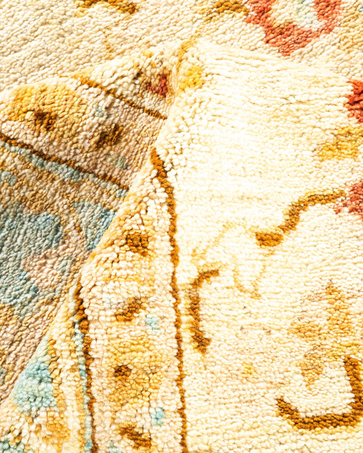 Contemporary Hand Knotted Eclectic Floral Ivory Area Rug 6' 5" x 8' 10"