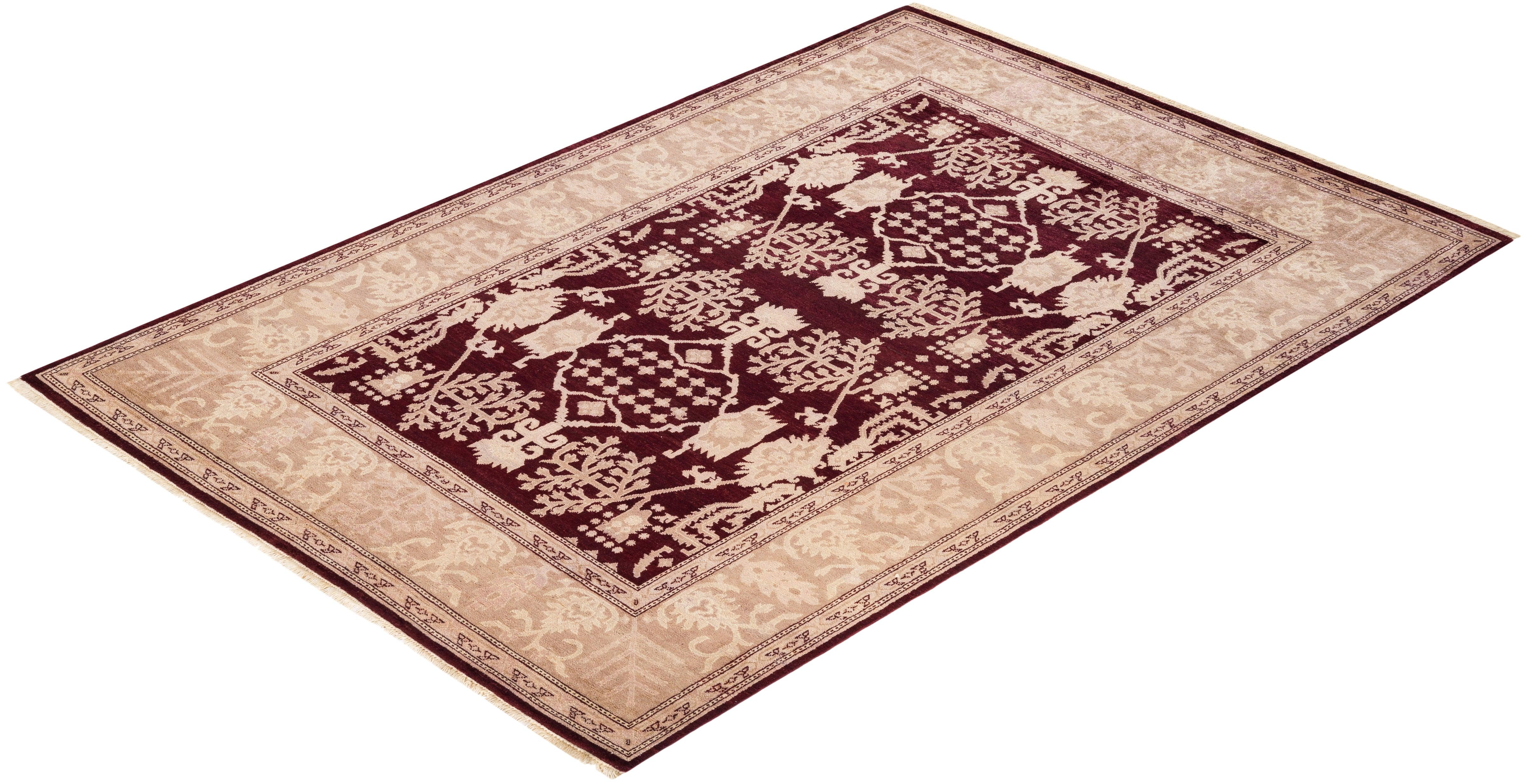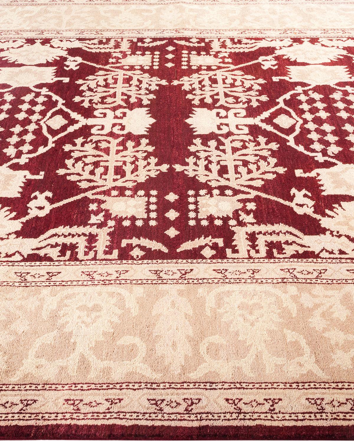 Contemporary Hand Knotted Eclectic Floral Red Area Rug 6' 3" x 9' 2"