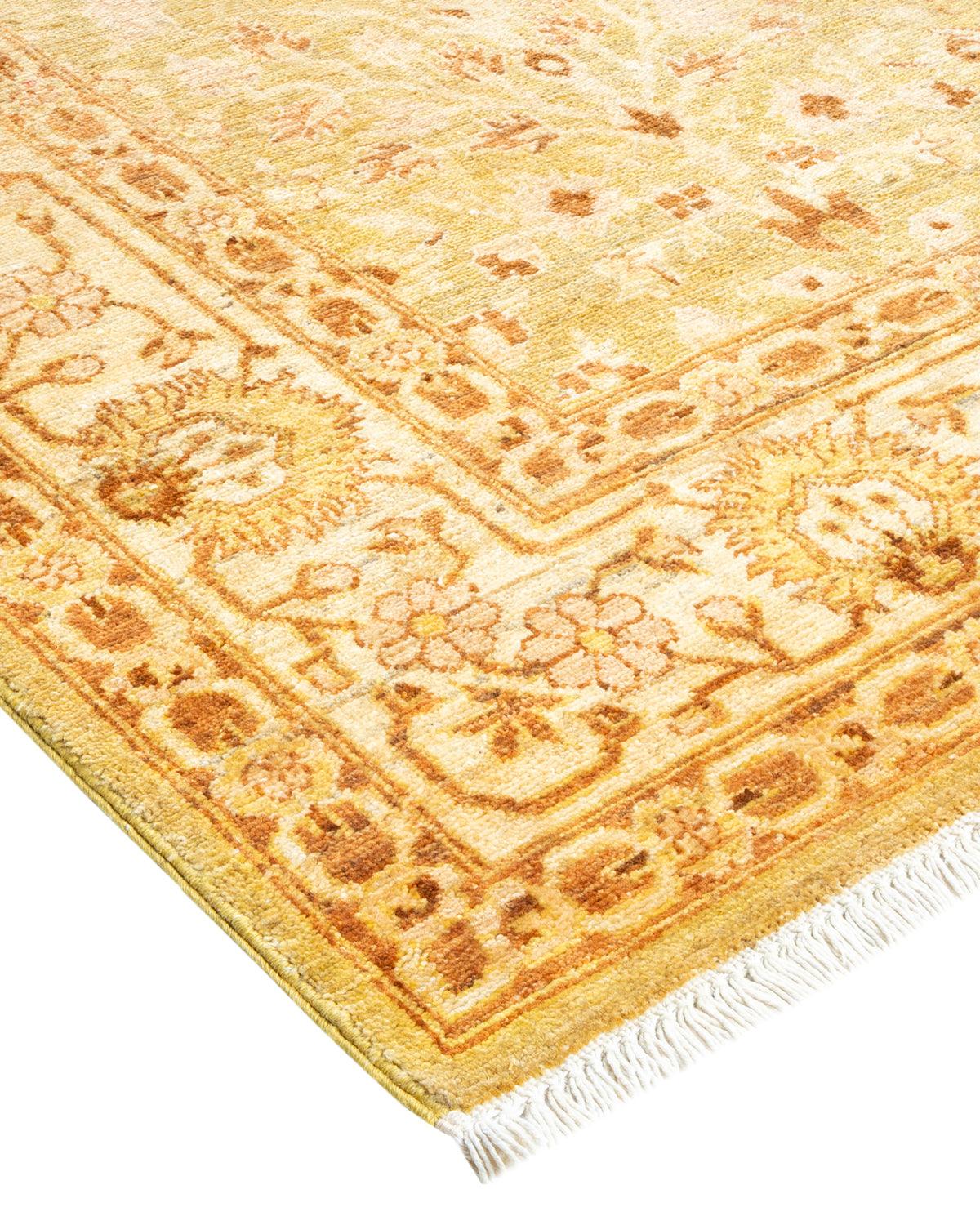 Contemporary Hand Knotted Eclectic Floral Green Area Rug 6' 3" x 8' 10"