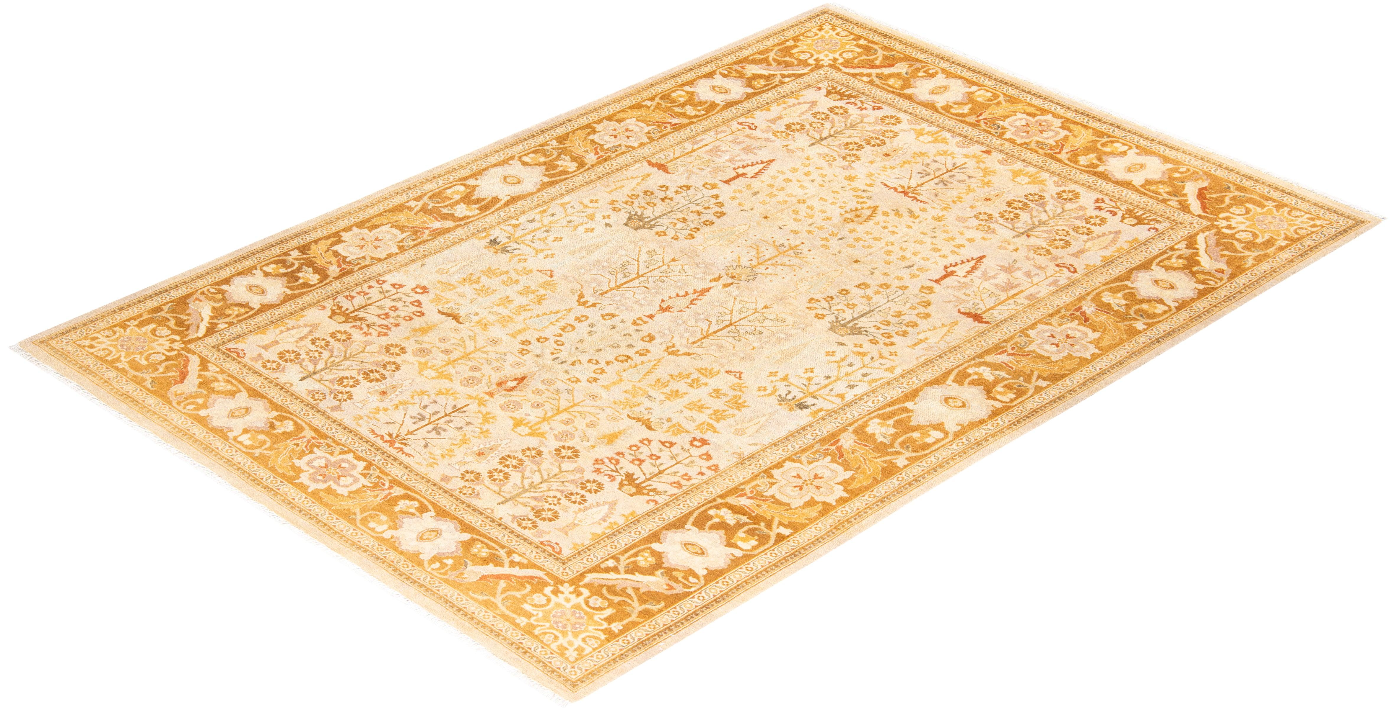 Contemporary Hand Knotted Eclectic Oriental Ivory Area Rug 6' 1" x 8' 10"