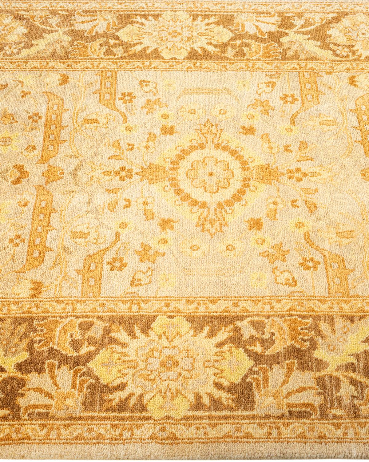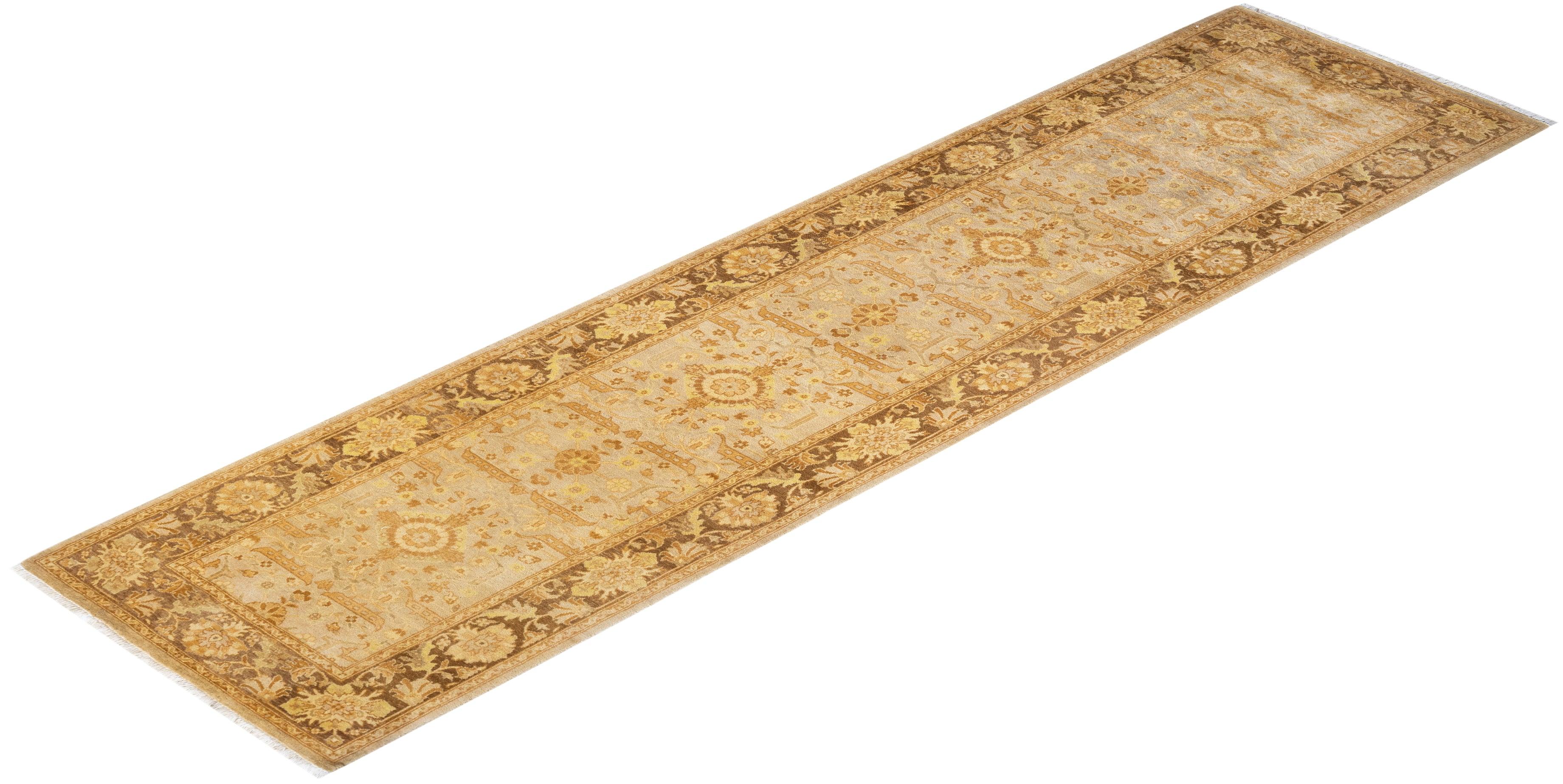 Contemporary Hand Knotted Eclectic Oriental Ivory Runner 3' 0" x 11' 10"