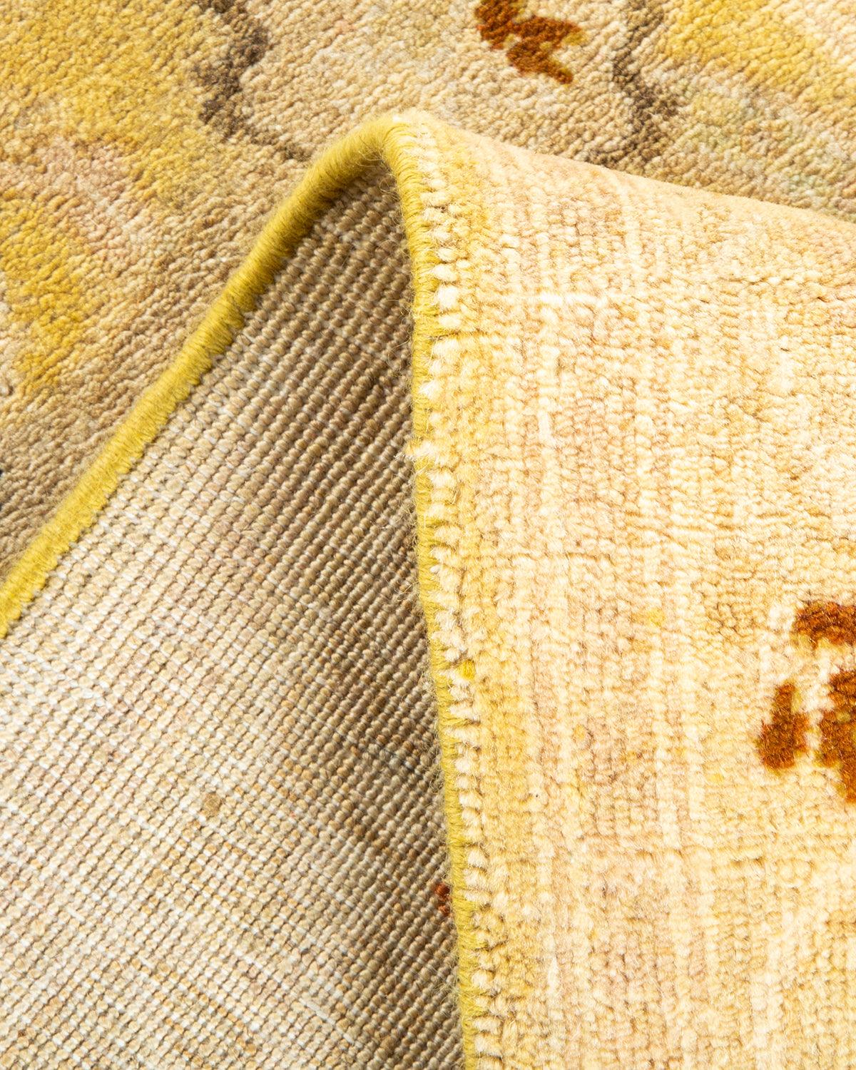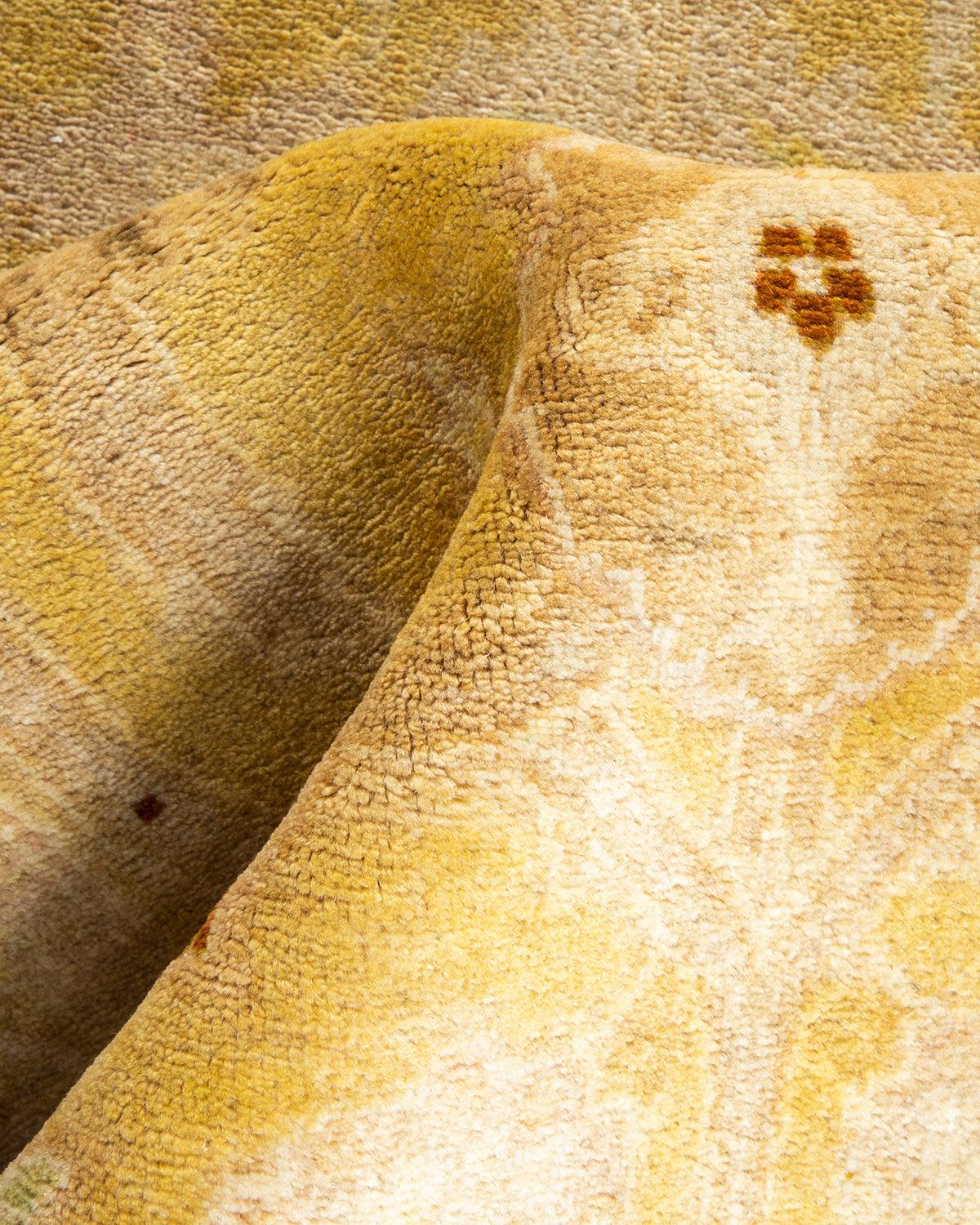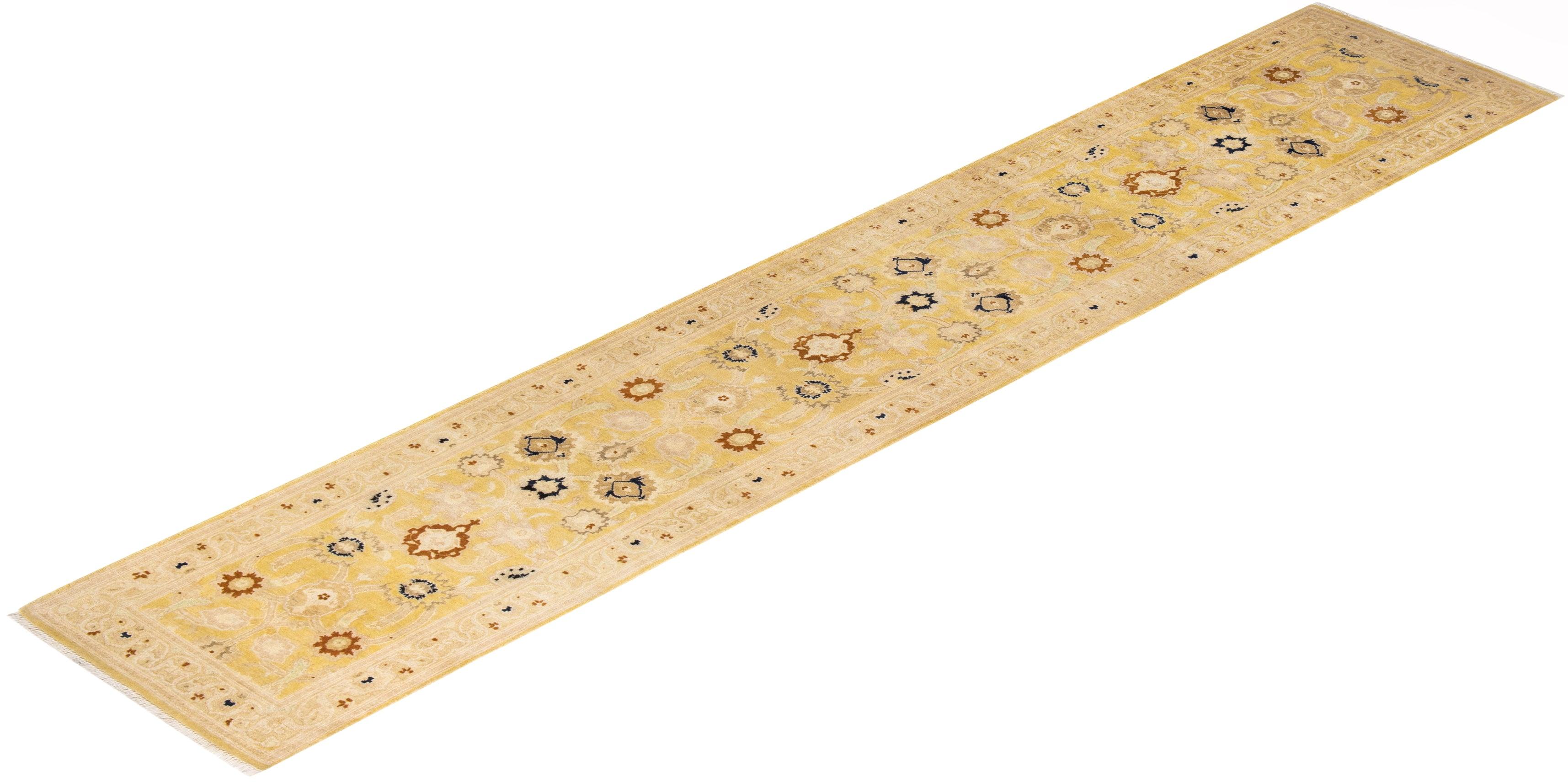 Contemporary Hand Knotted Eclectic Floral Green Runner 2' 5" x 13' 3"
