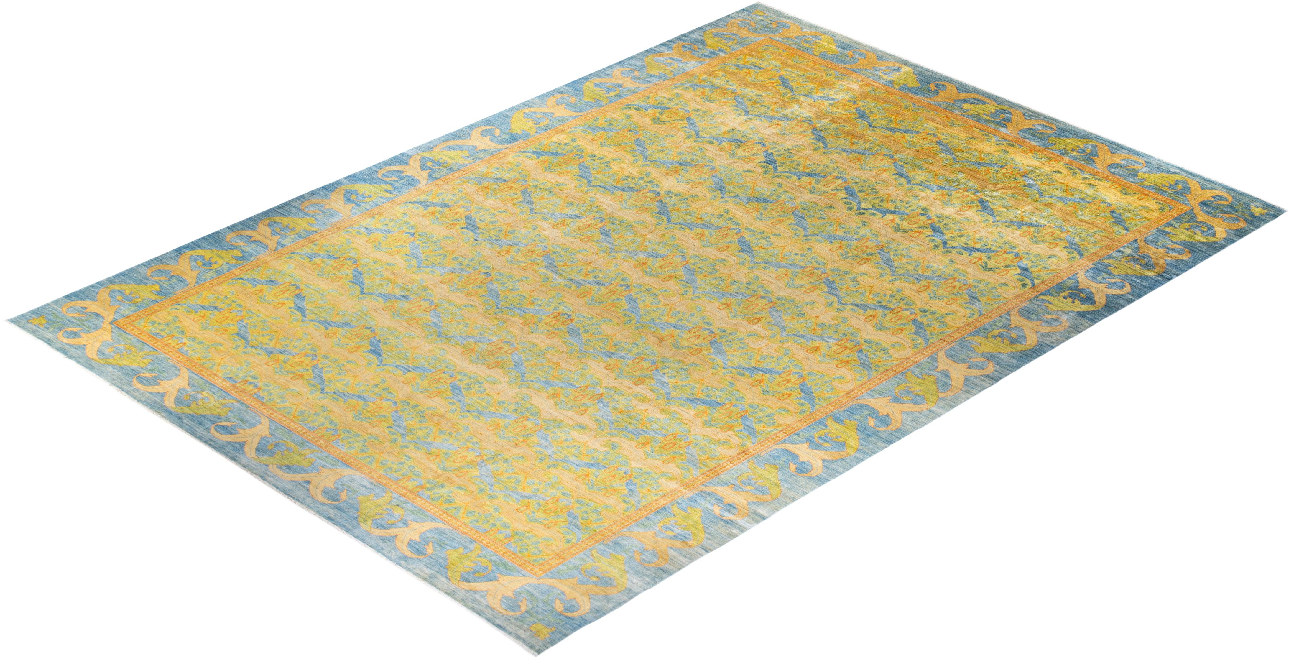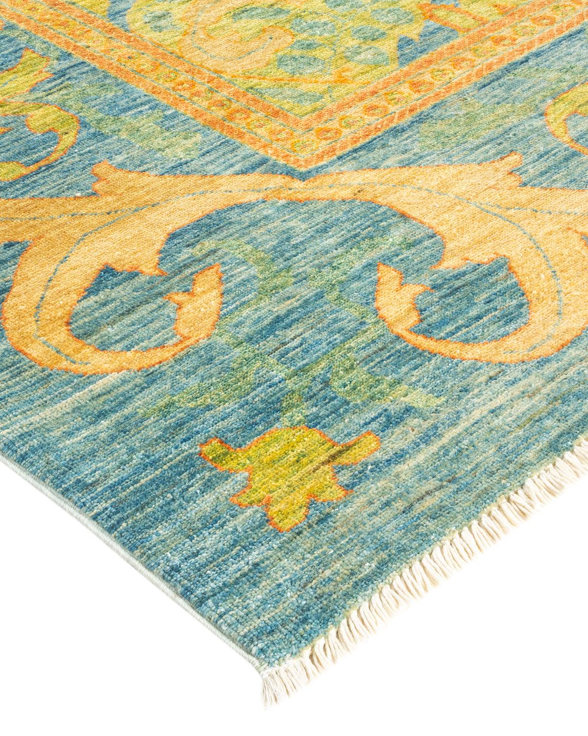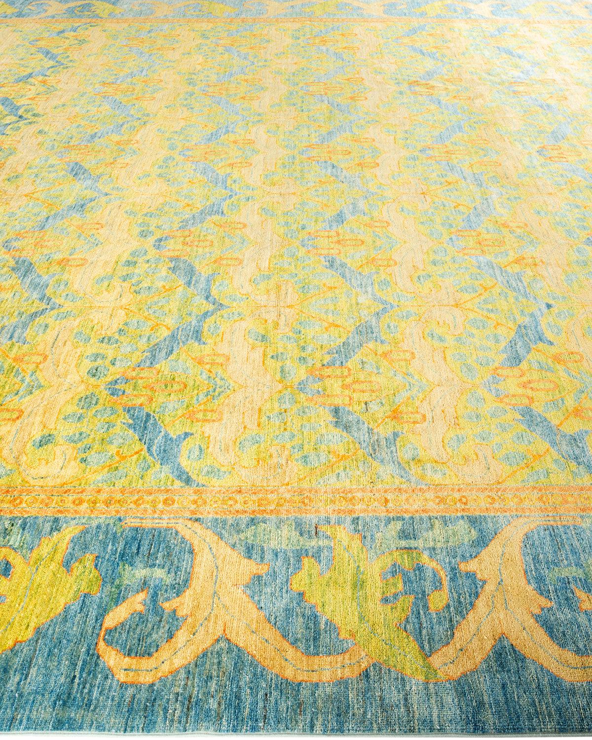 Contemporary Hand Knotted Arts & Crafts Floral Light Blue Area Rug 11' 10" x 17' 2"