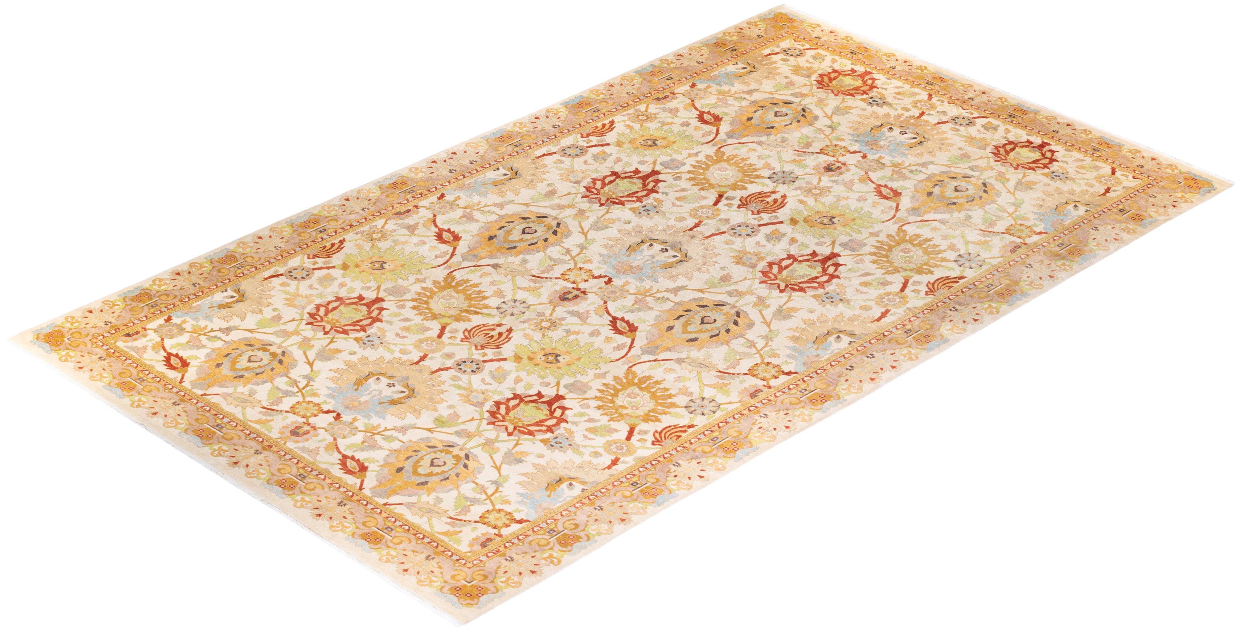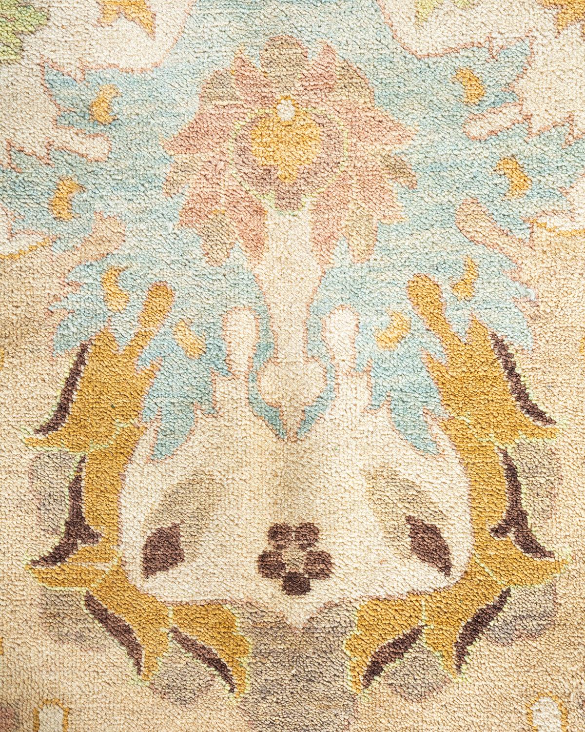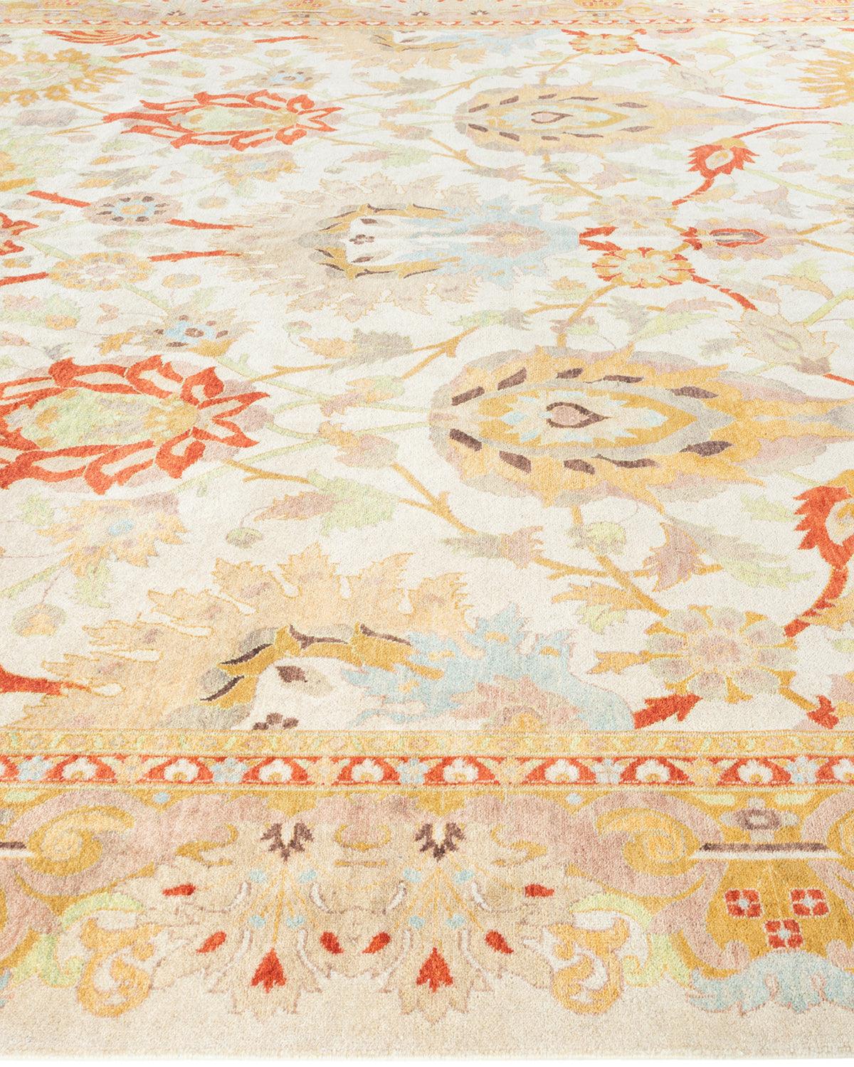 Contemporary Hand Knotted Eclectic Floral Ivory Area Rug 10' 2" x 17' 9"