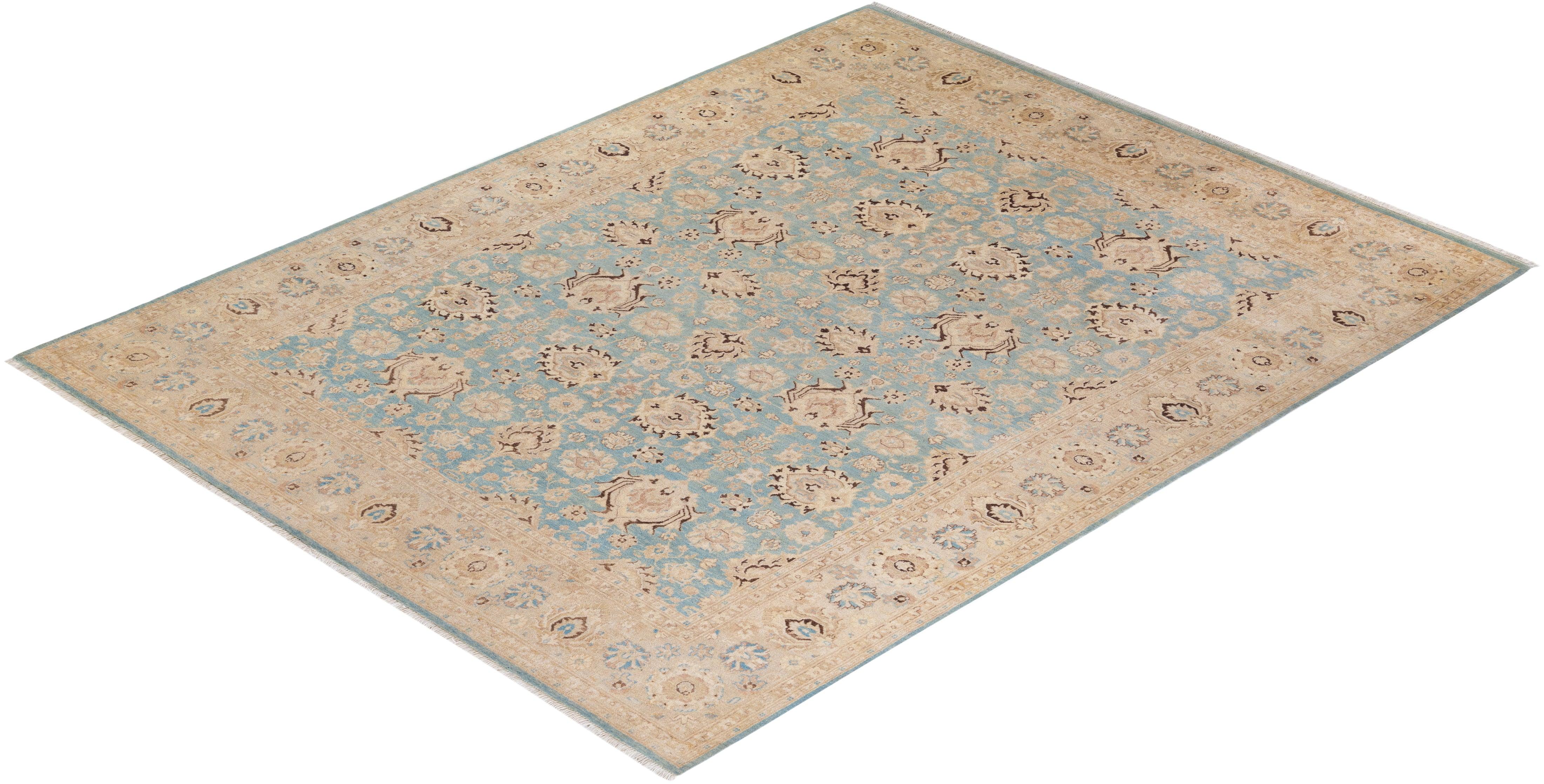 Contemporary Hand Knotted Eclectic Oriental Light Blue Area Rug 8' 0" x 10' 3"