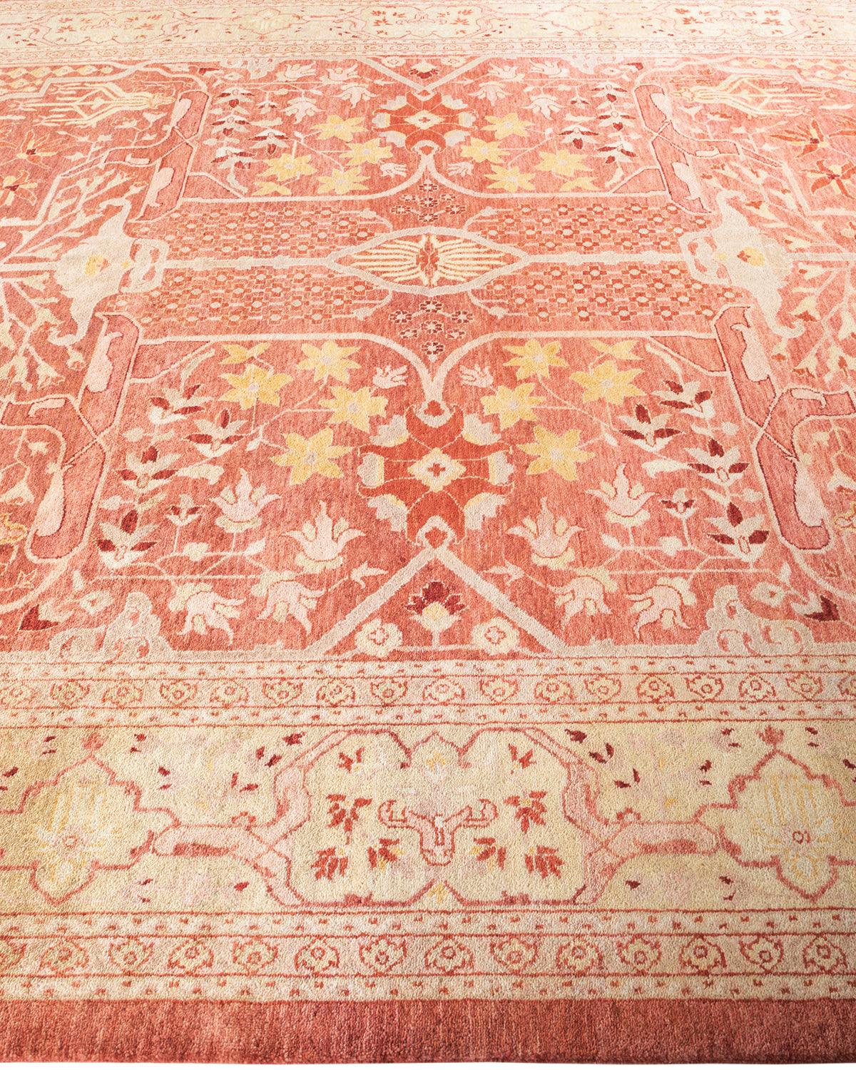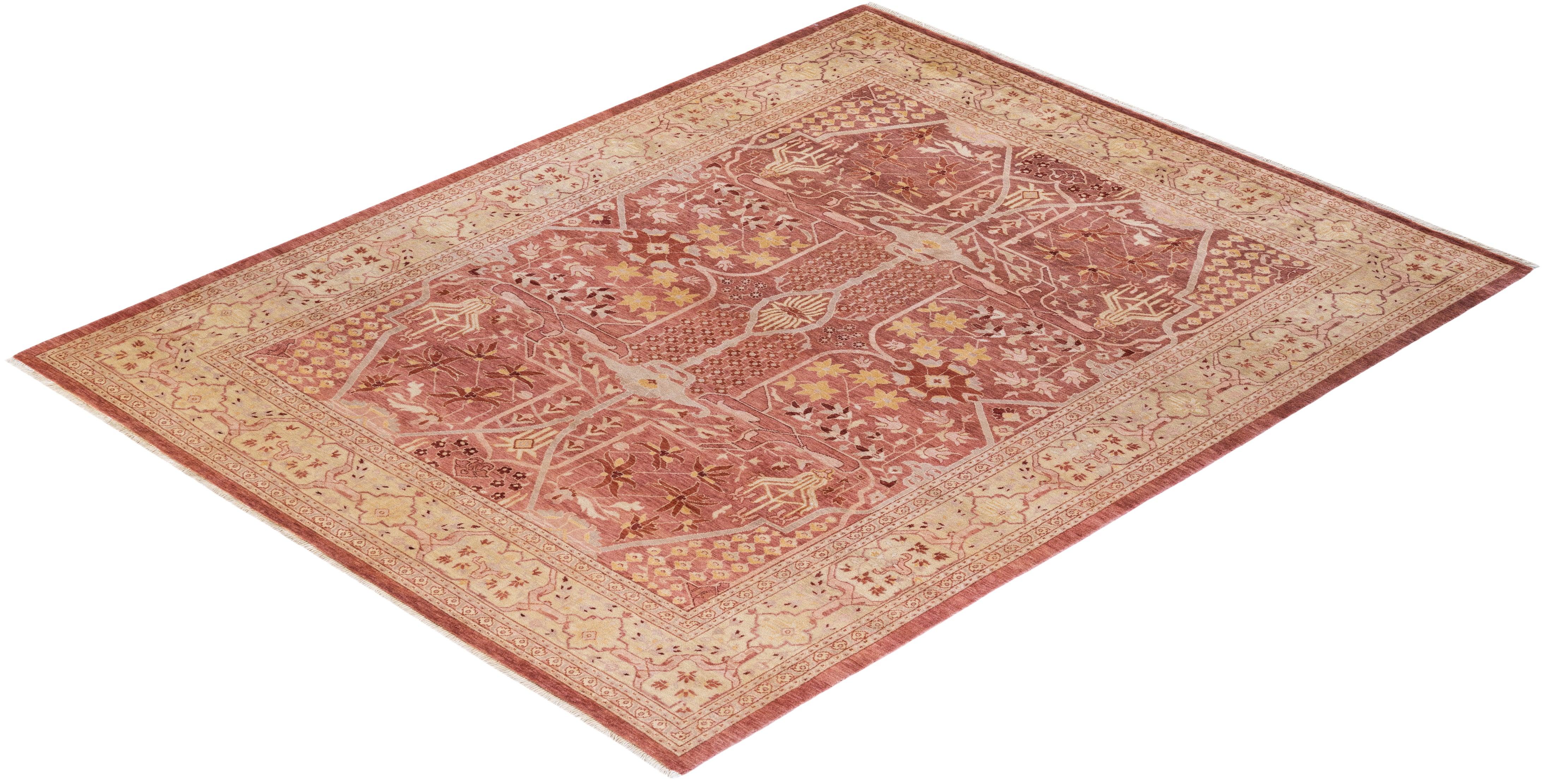 Contemporary Hand Knotted Eclectic Floral Pink Area Rug 8' 3" x 10' 6"