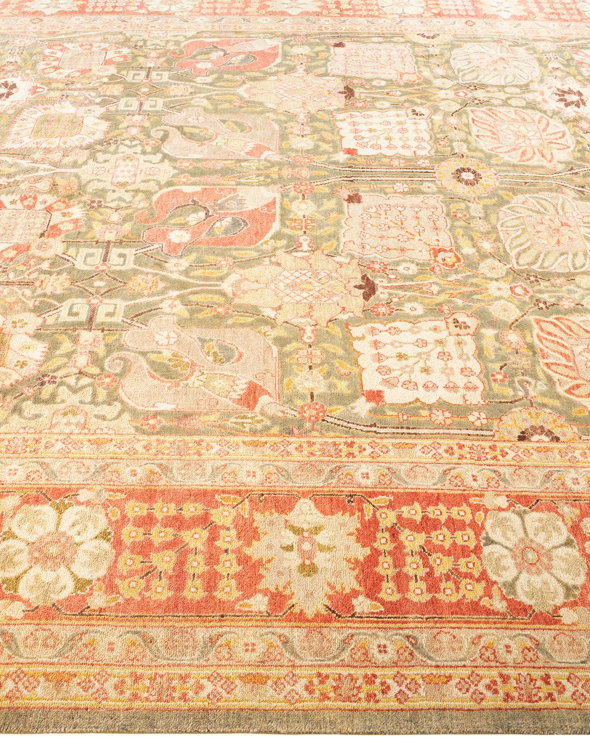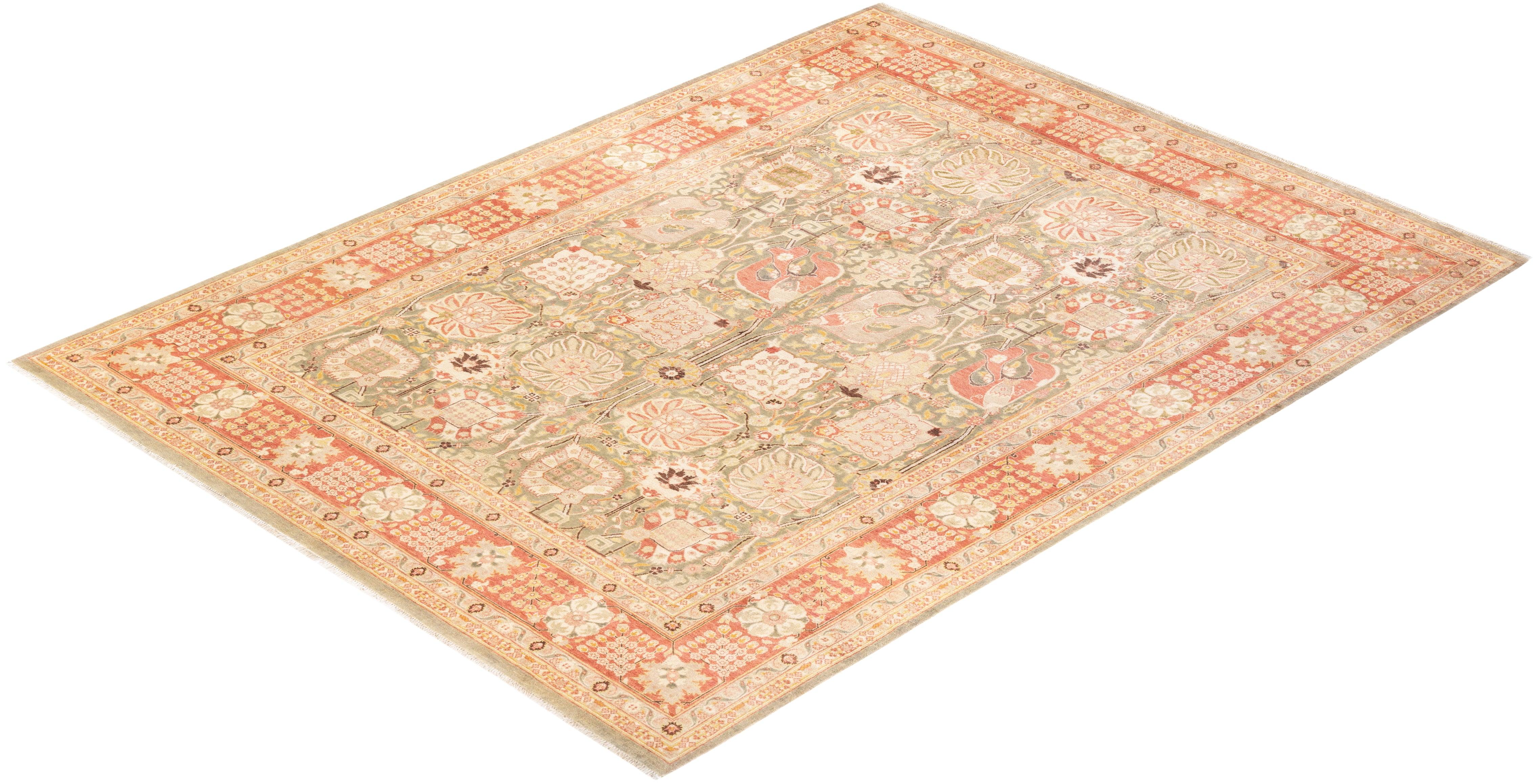 Contemporary Hand Knotted Eclectic Oriental Green Area Rug 7' 10" x 10' 7"