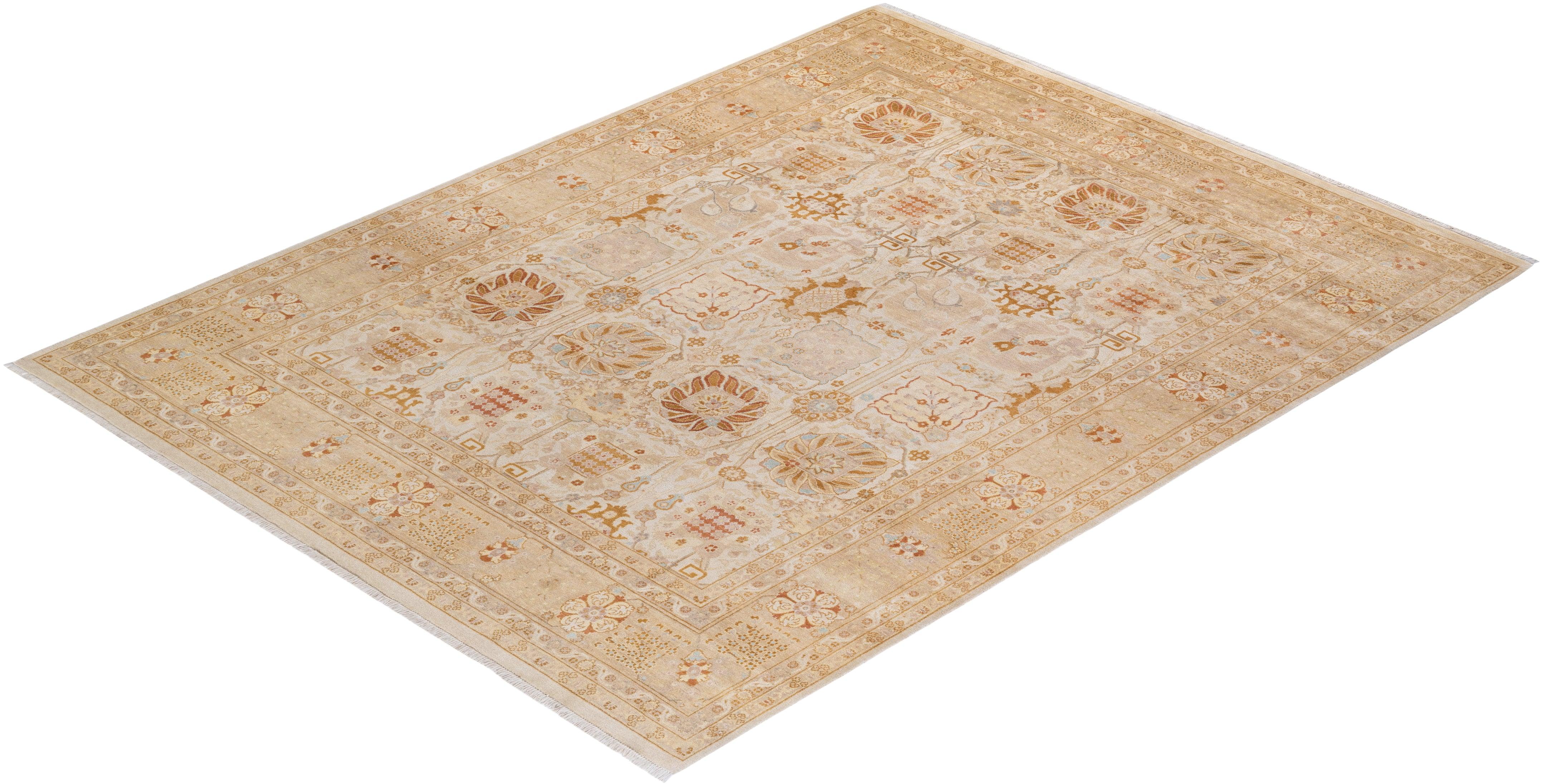 Contemporary Hand Knotted Eclectic Floral Ivory Area Rug 8' 0" x 10' 4"