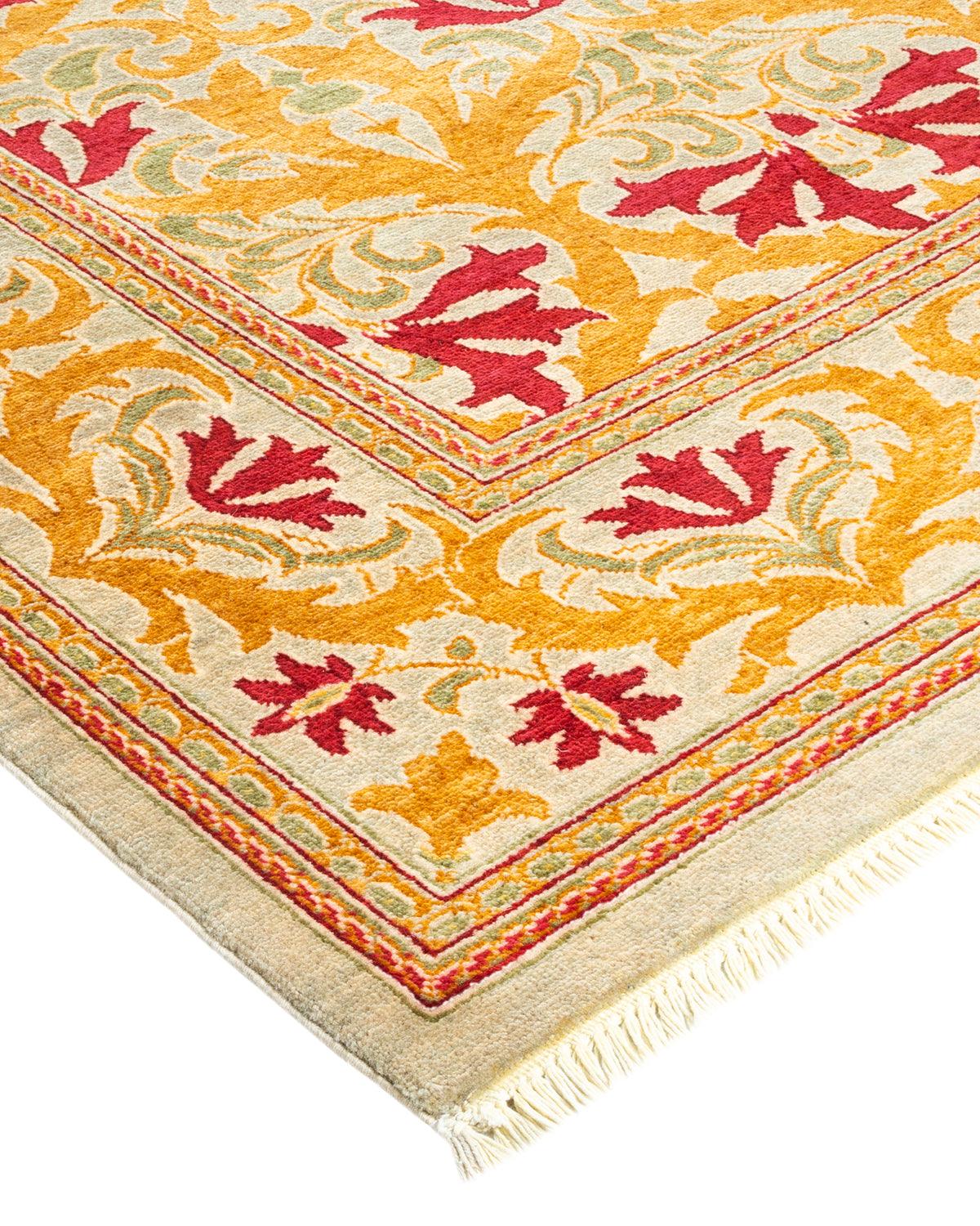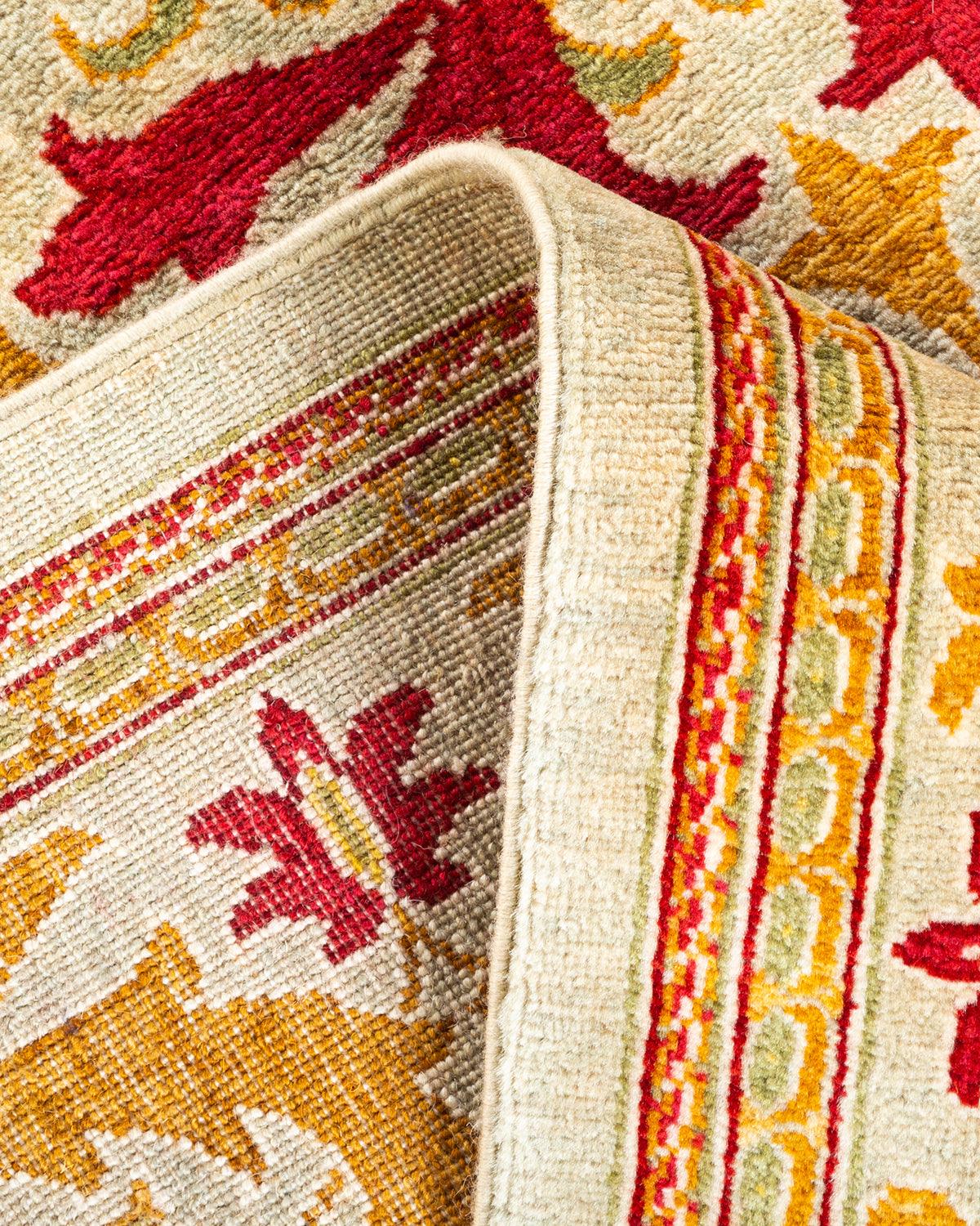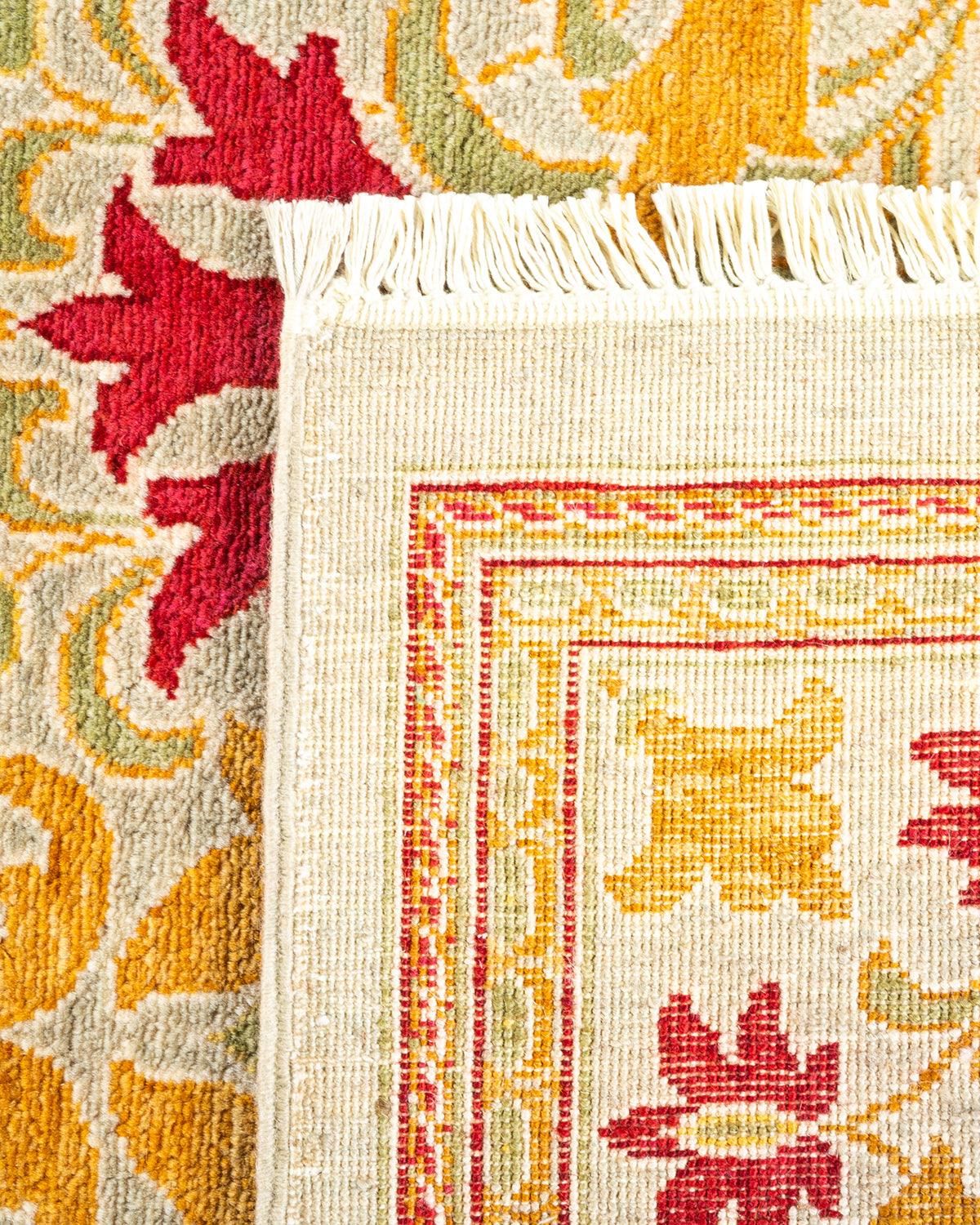 Contemporary Hand Knotted Eclectic Floral Ivory Area Rug 4' 2" x 6' 2"