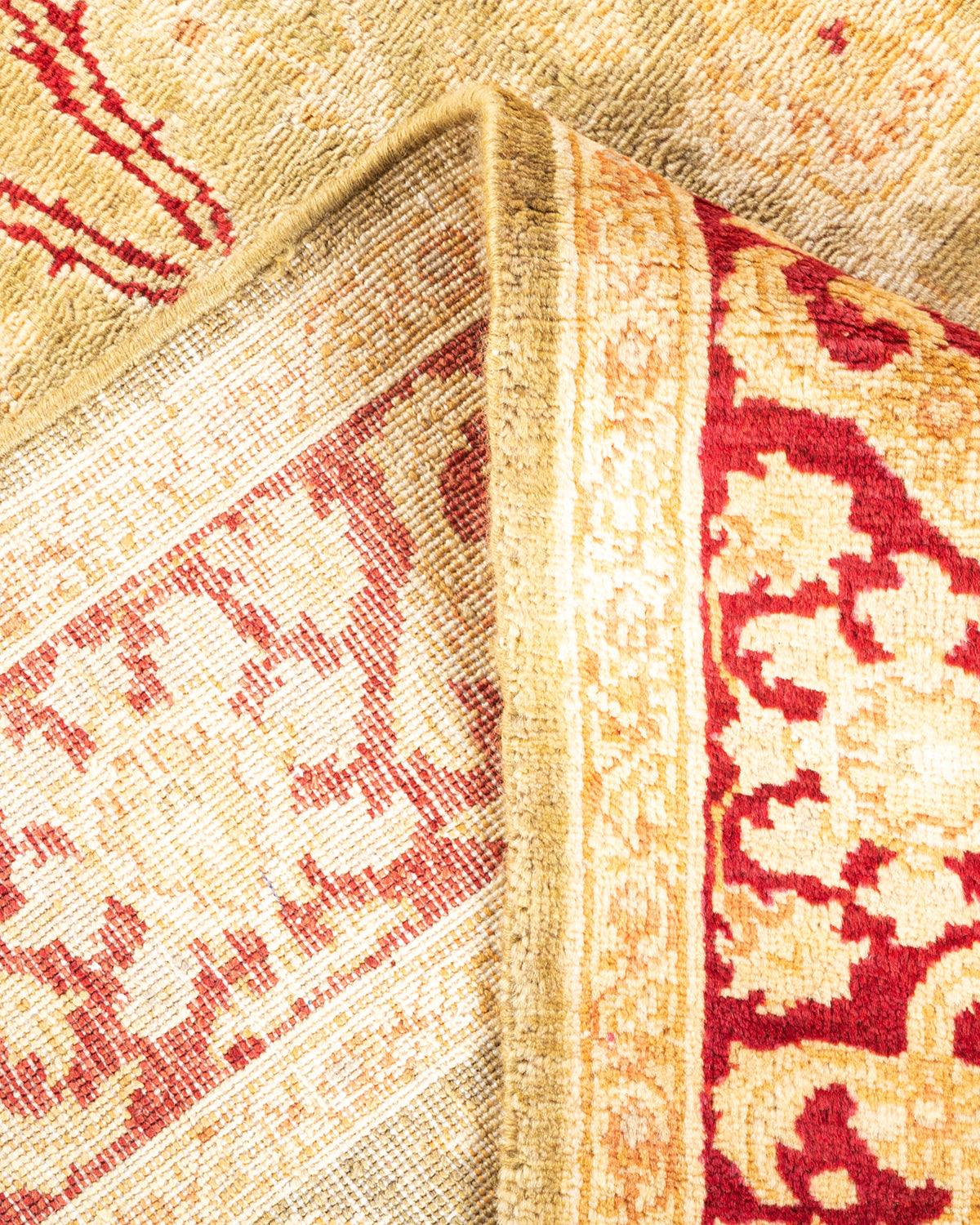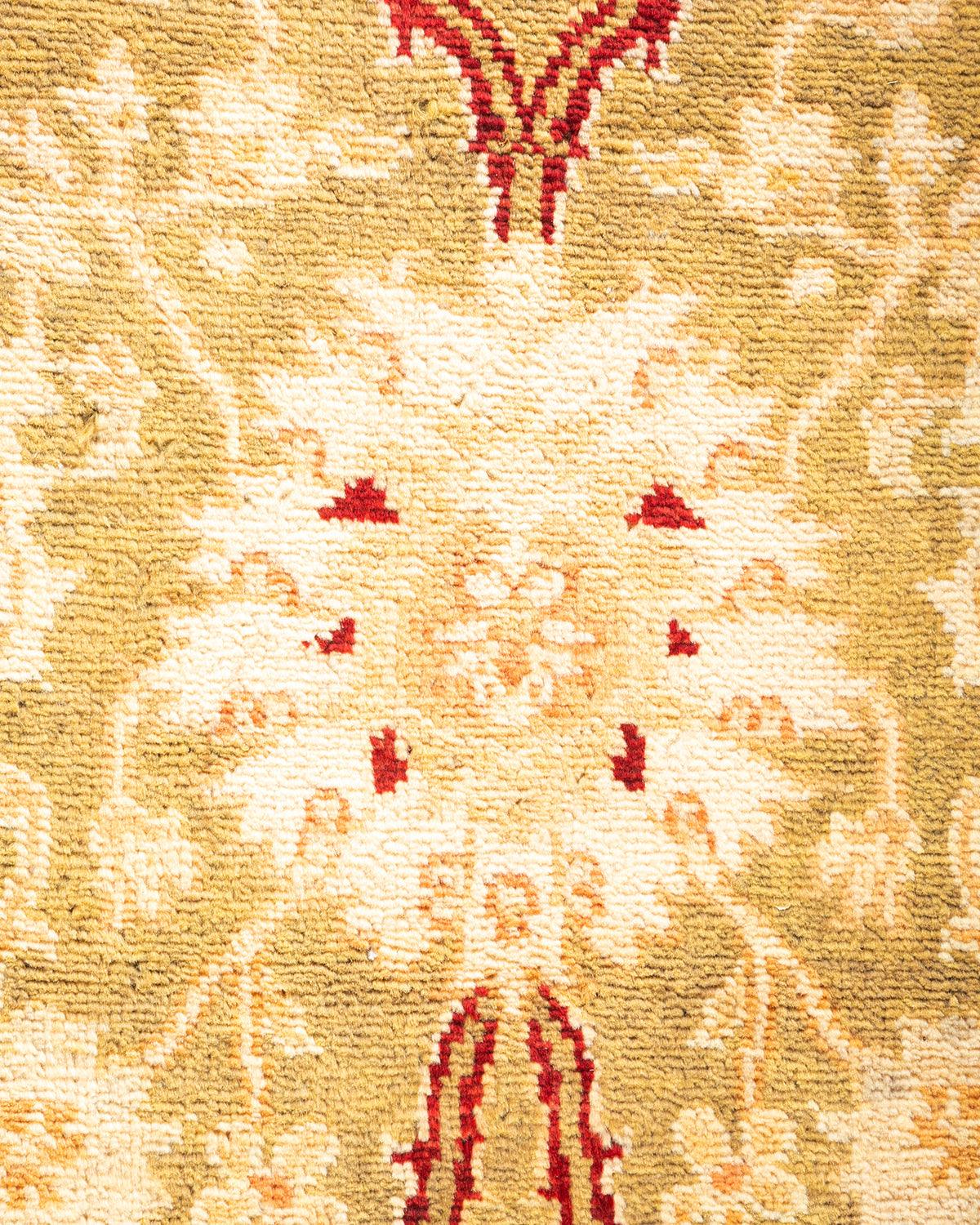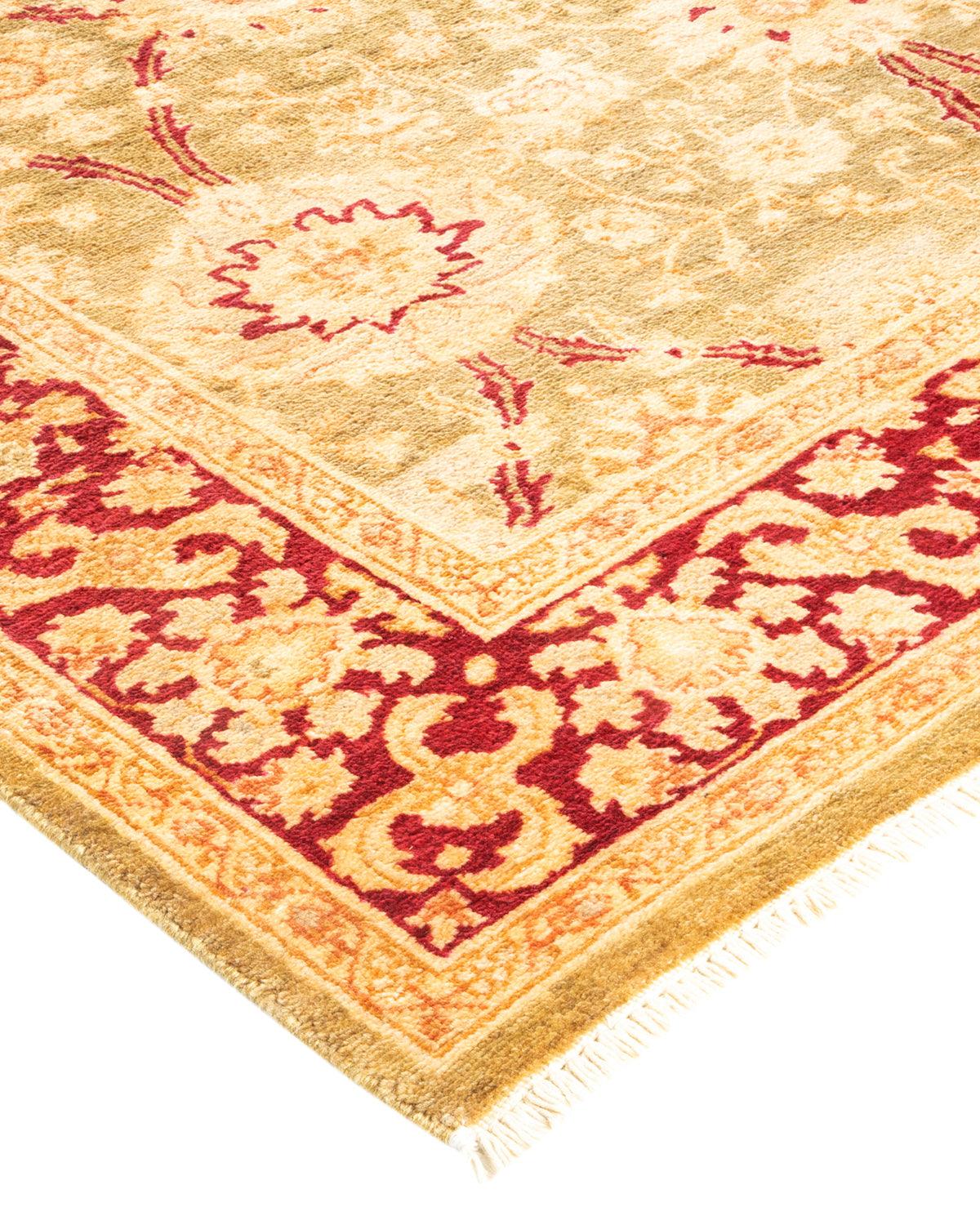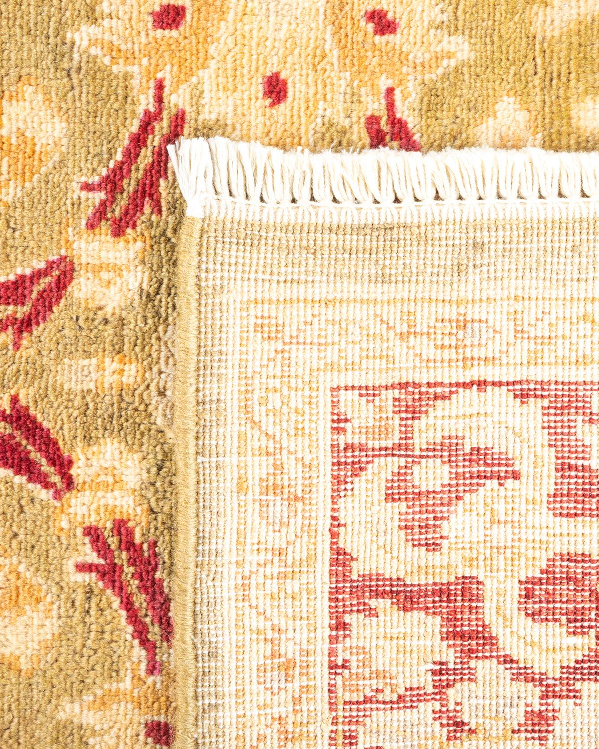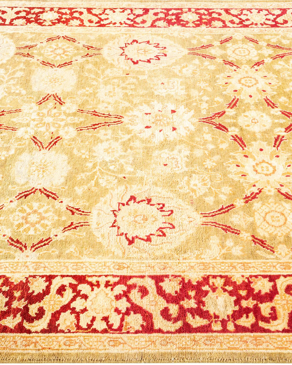 Contemporary Hand Knotted Eclectic Floral Green Area Rug 4' 1" x 6' 3"