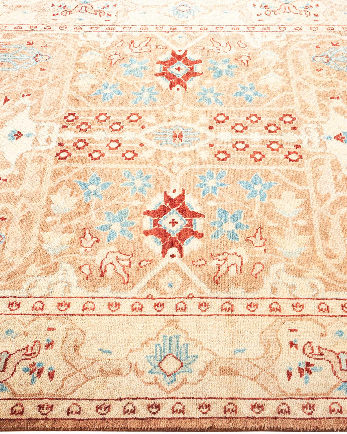 Contemporary Hand Knotted Eclectic Tribal Yellow Area Rug 4' 1" x 6' 2"