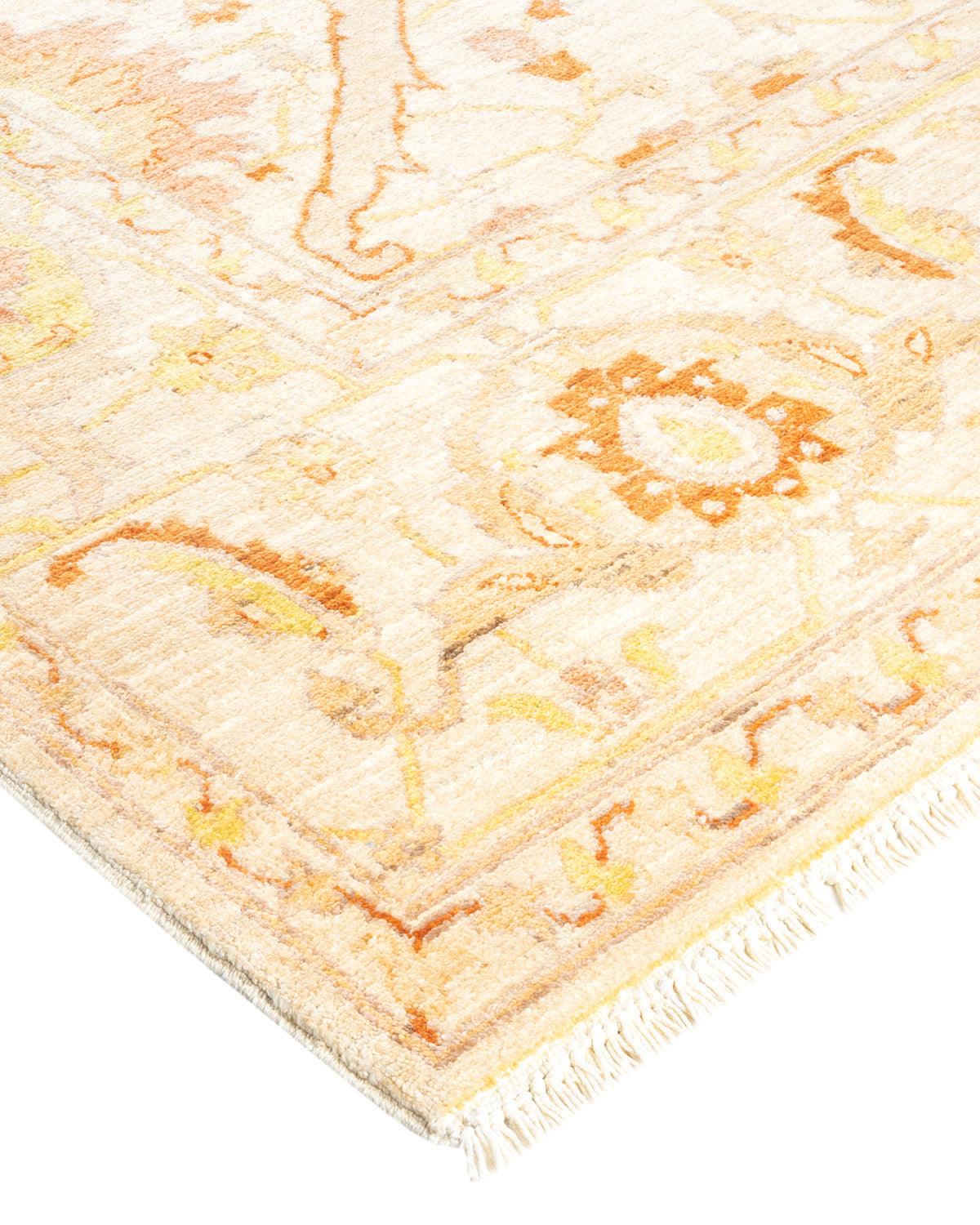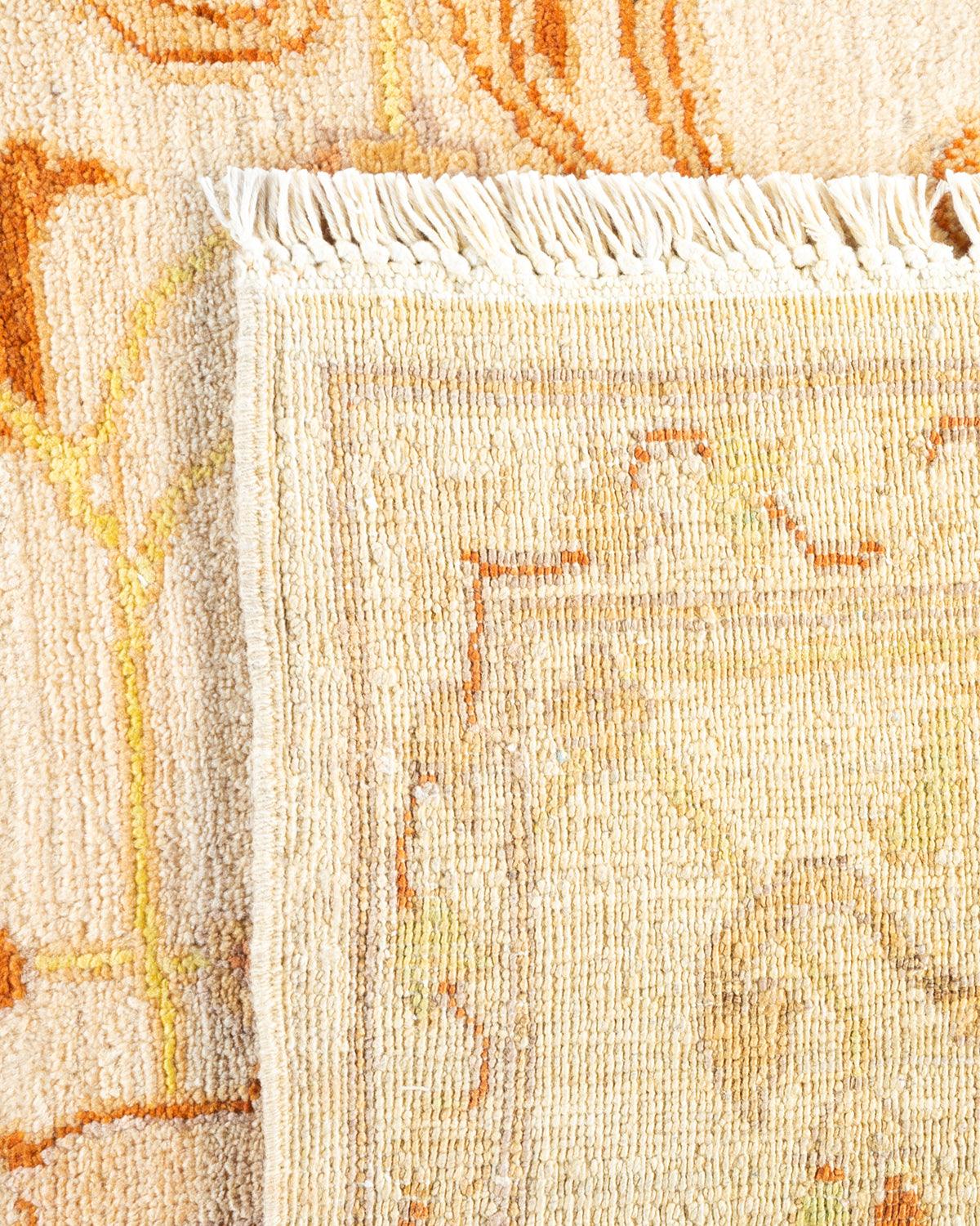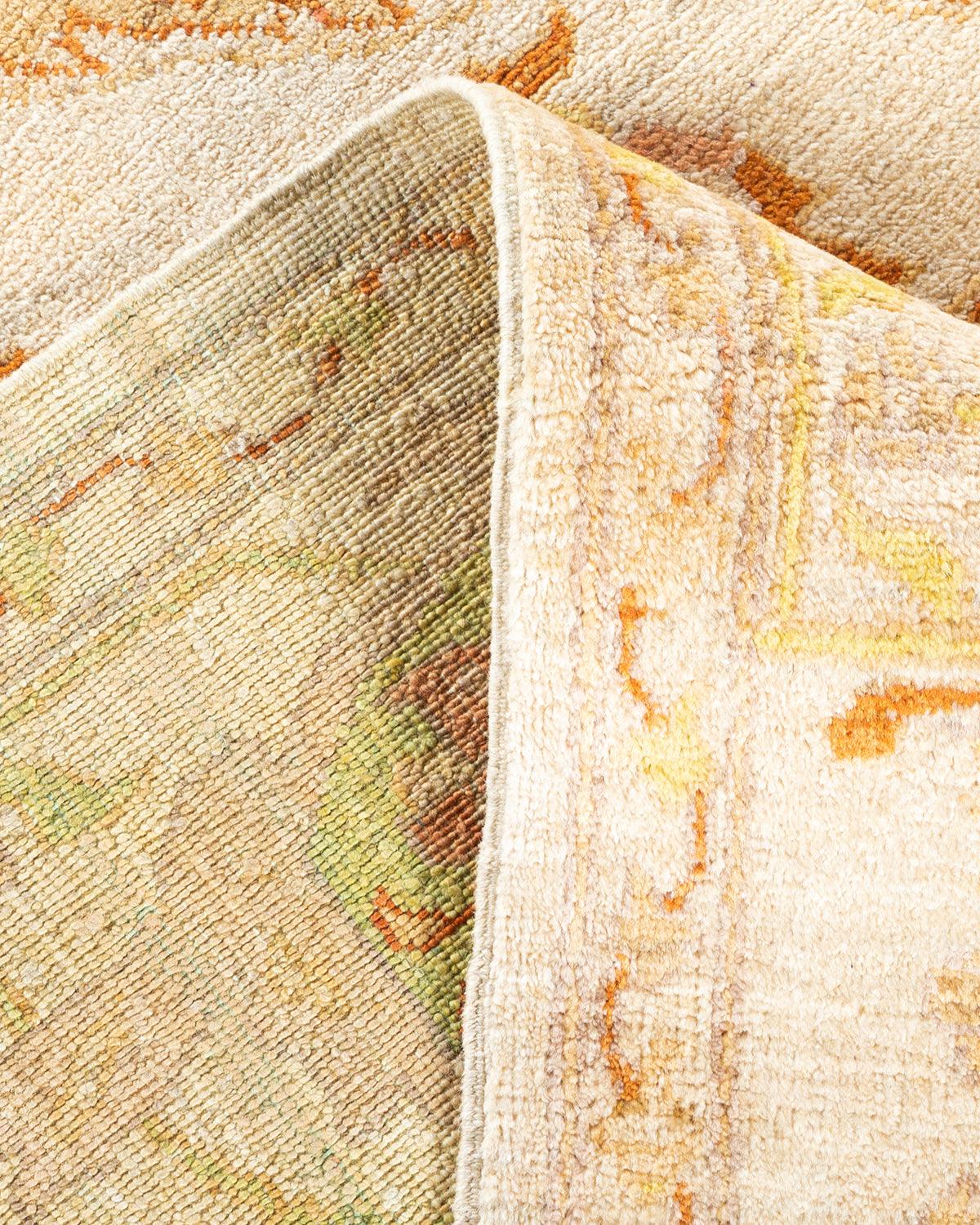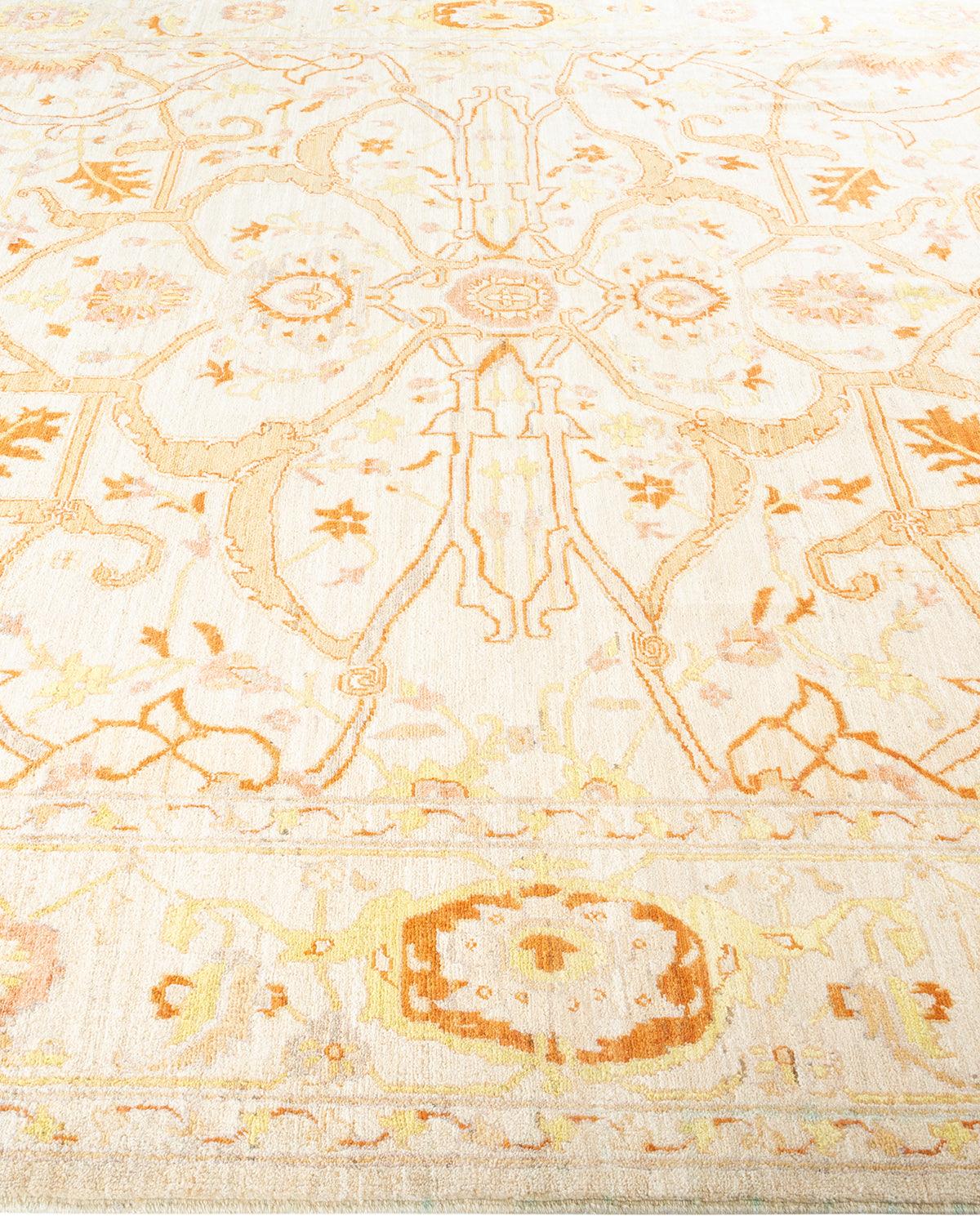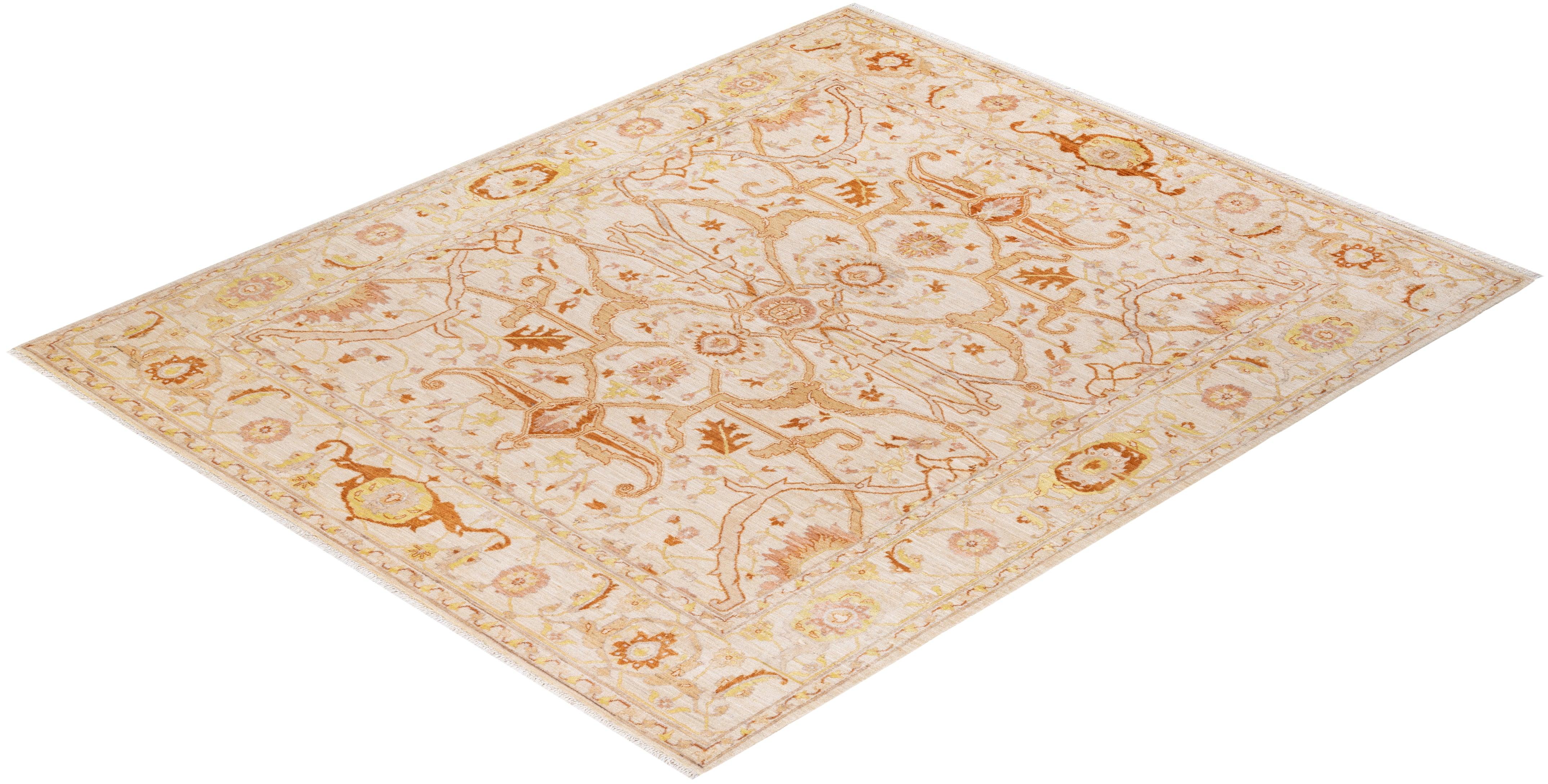 Contemporary Hand Knotted Eclectic Floral Ivory Area Rug 8' 3" x 9' 10"
