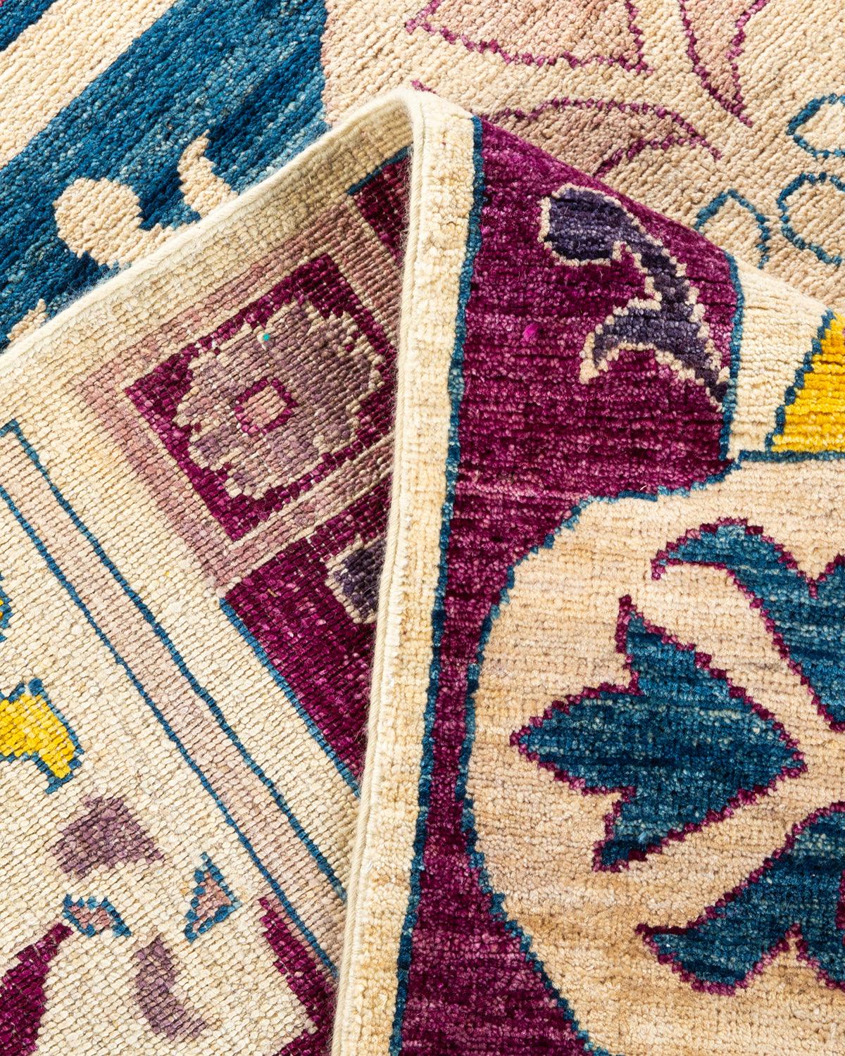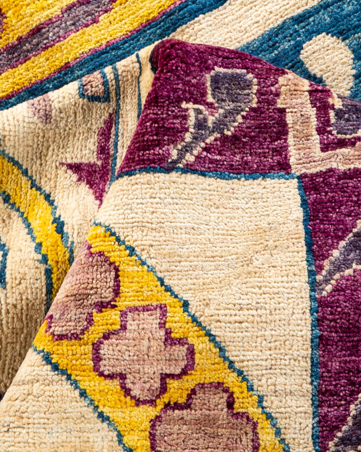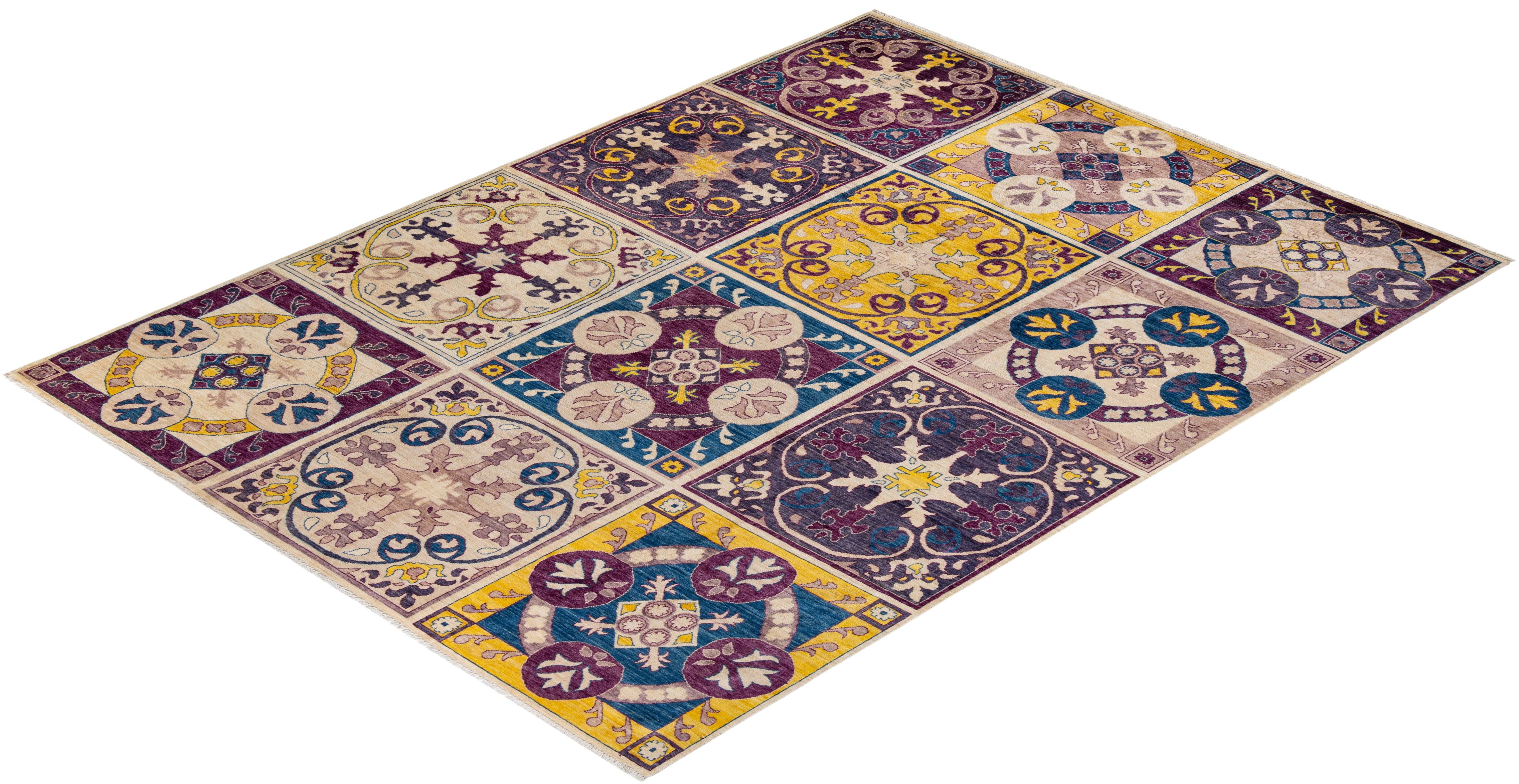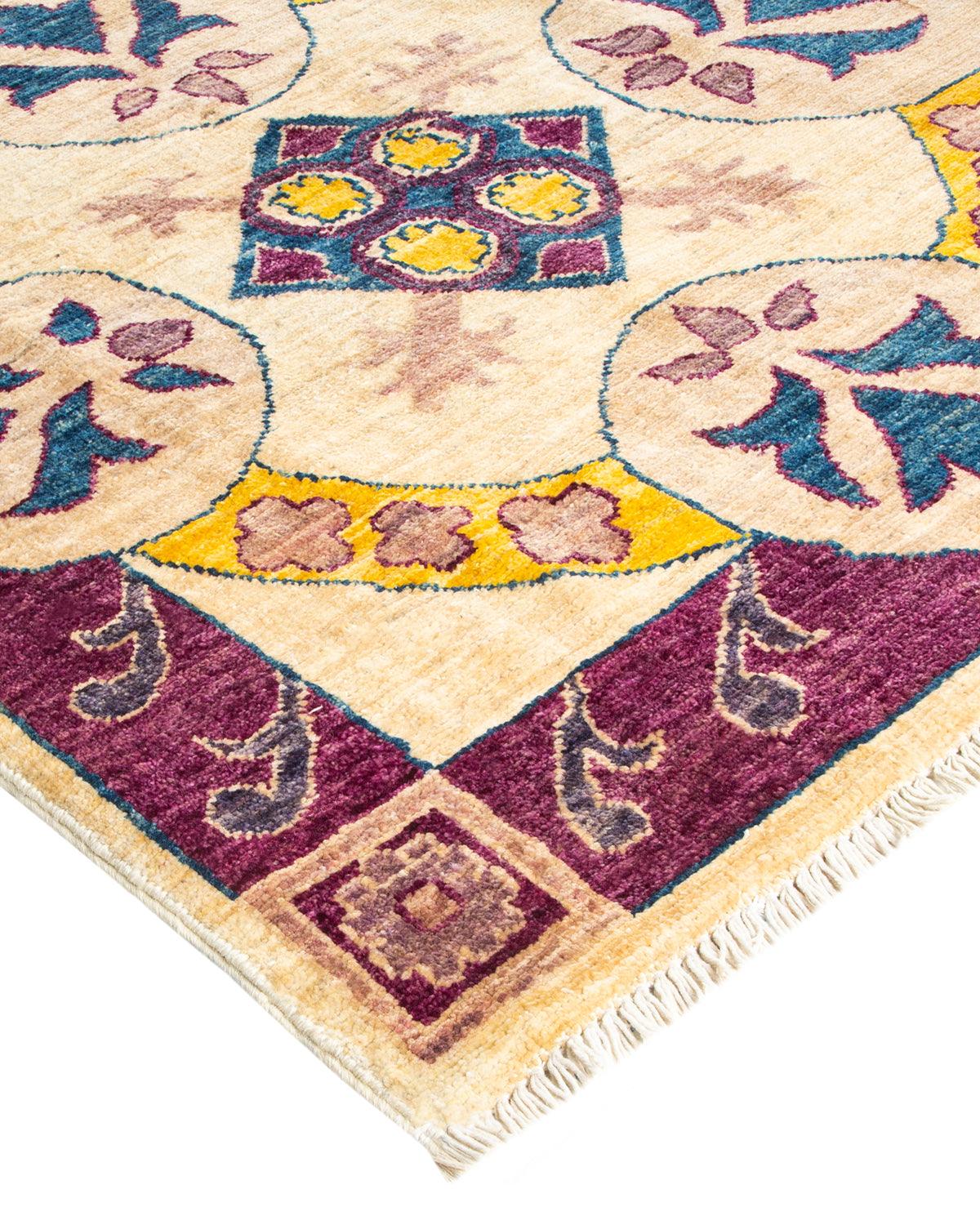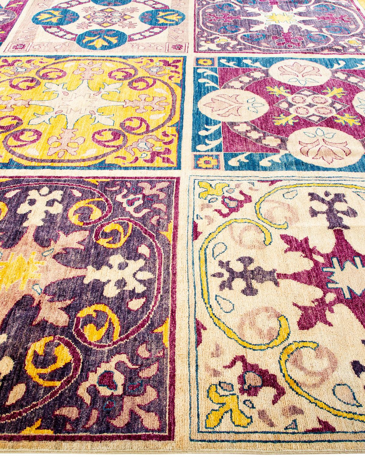 Contemporary Hand Knotted Eclectic Patchwork Ivory Area Rug 8' 10" x 12' 1"