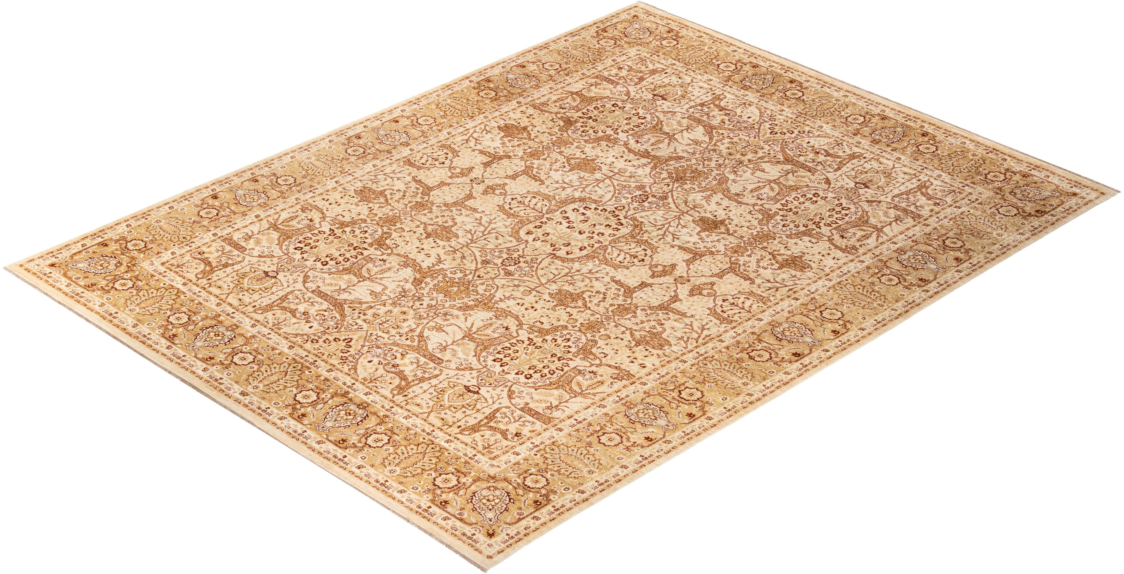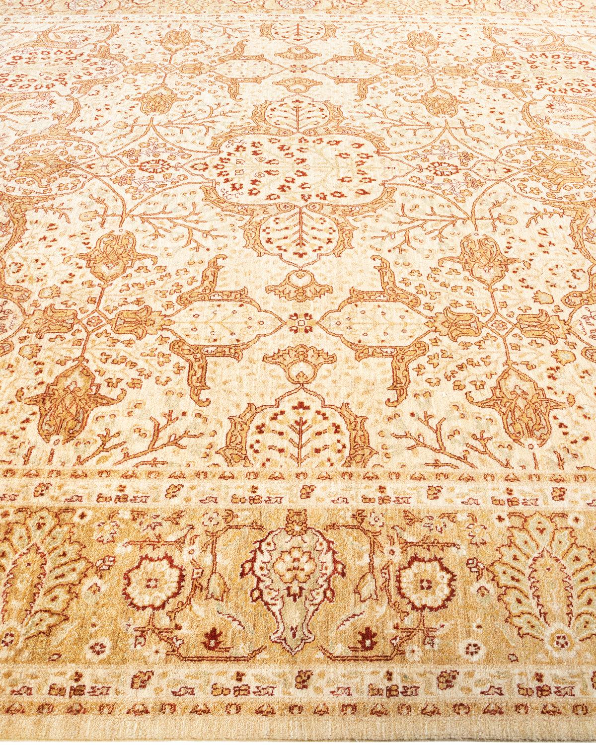 Contemporary Hand Knotted Eclectic Oriental Ivory Area Rug 9' 2" x 12' 0"
