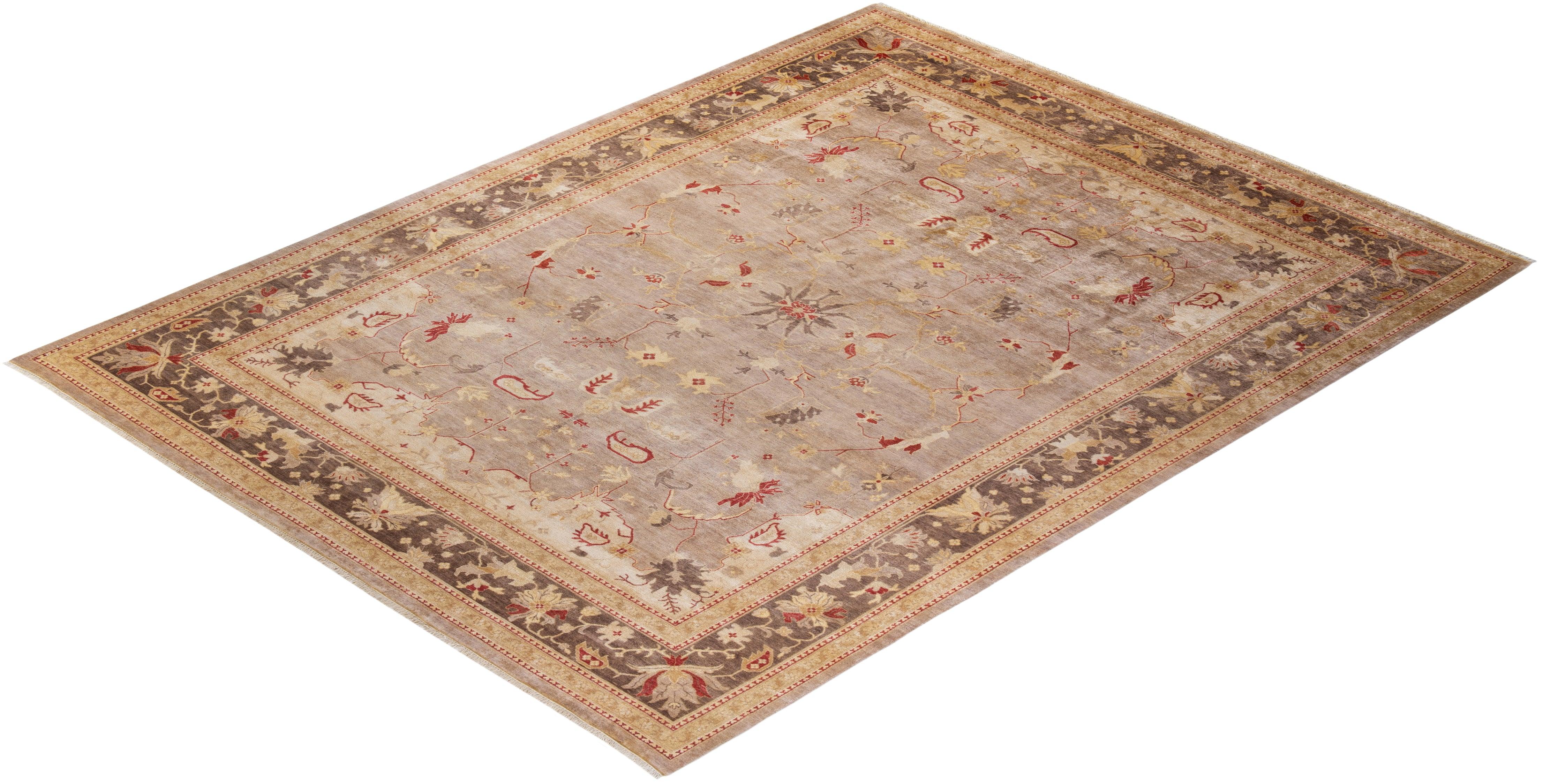 Contemporary Hand Knotted Eclectic Floral Ivory Area Rug 9' 2" x 11' 10"