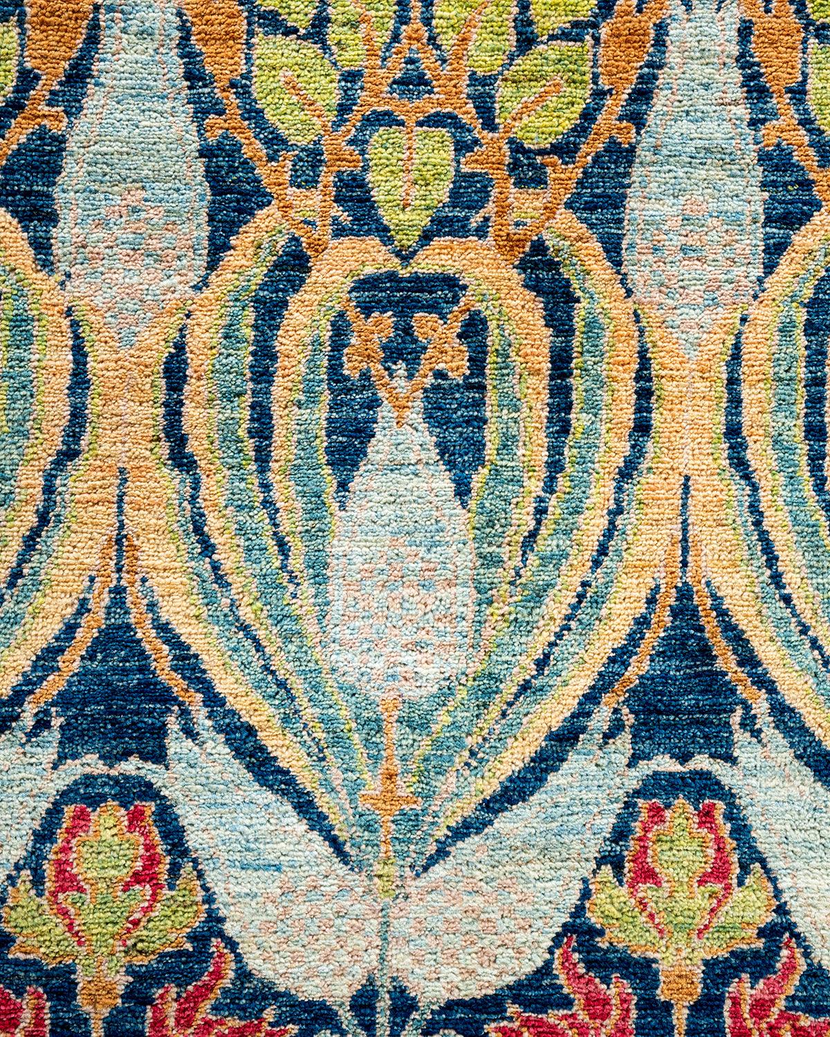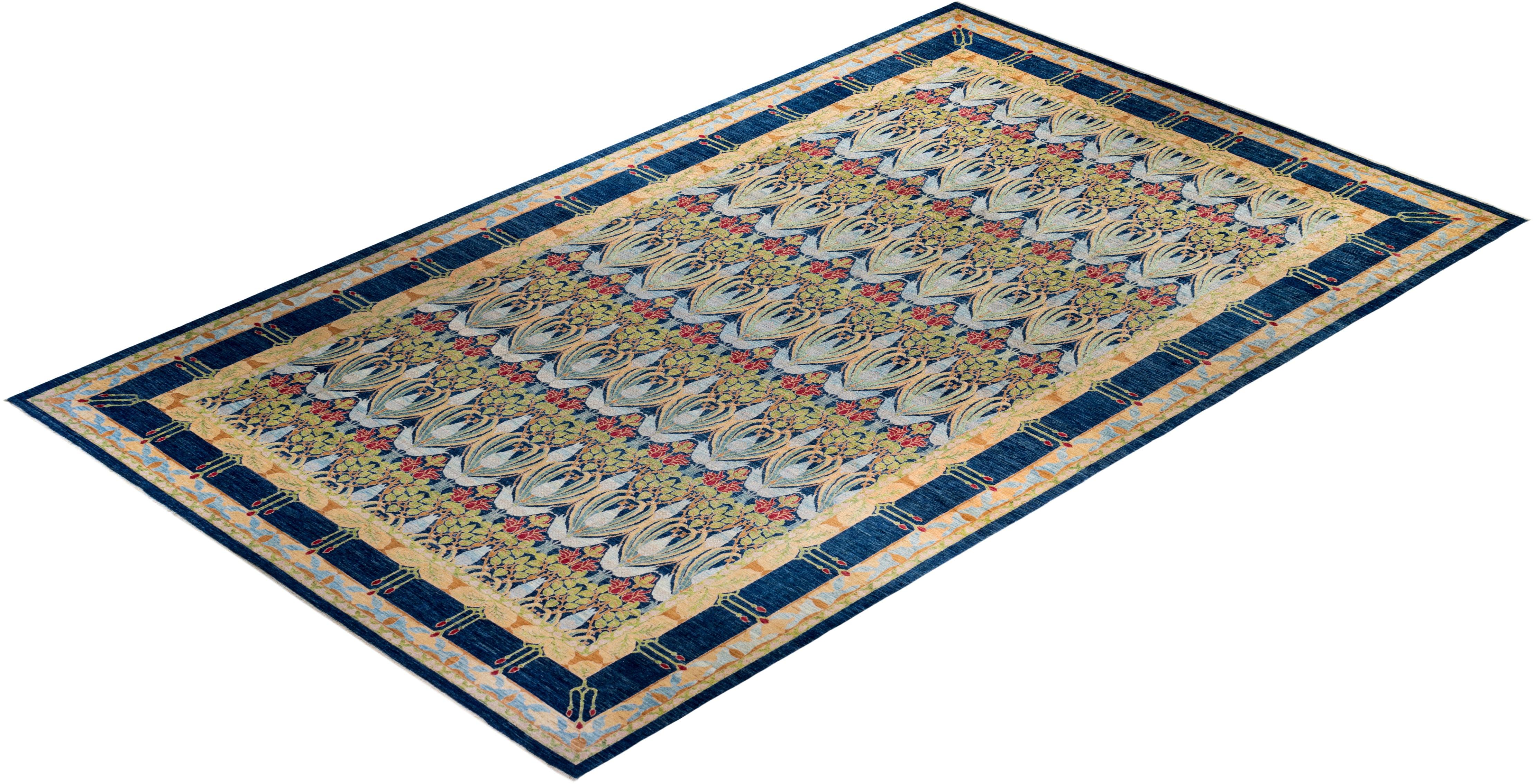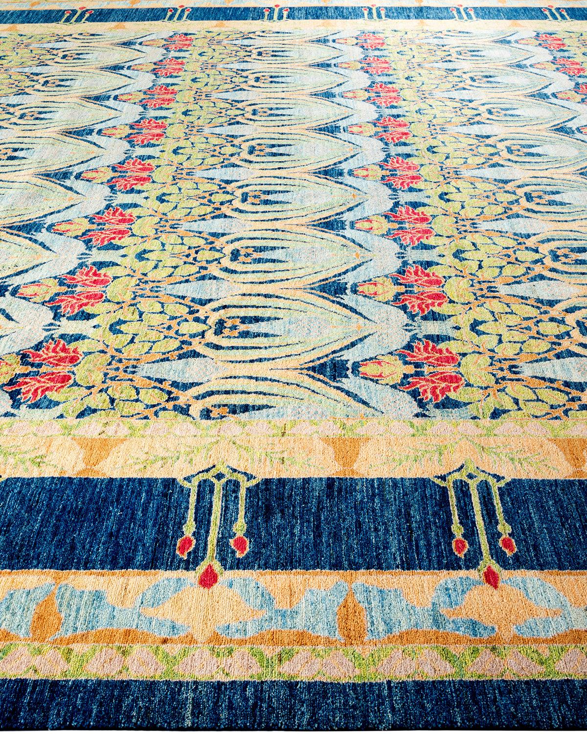 Contemporary Hand Knotted Arts & Crafts Floral Blue Area Rug 19' 6" x 11' 6"